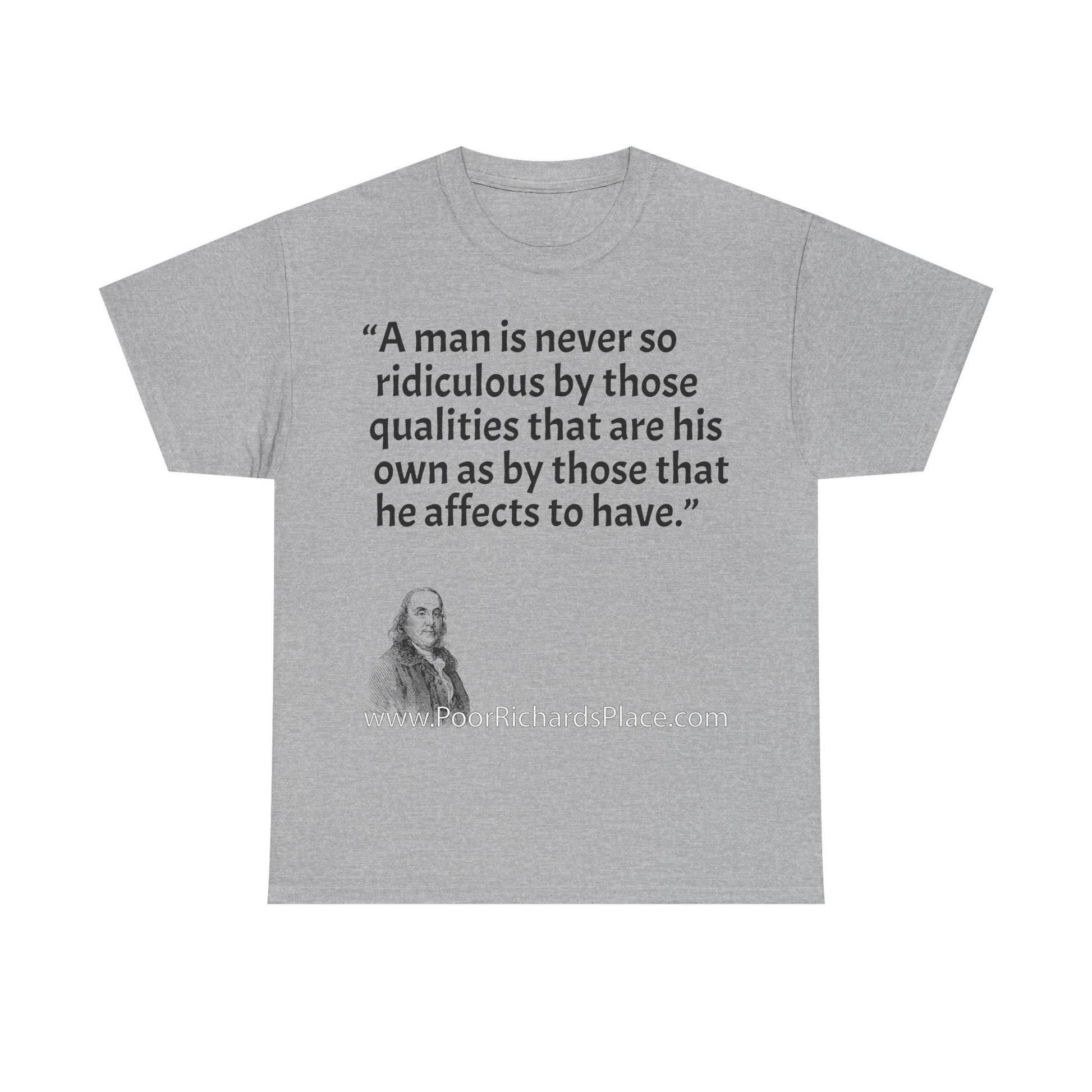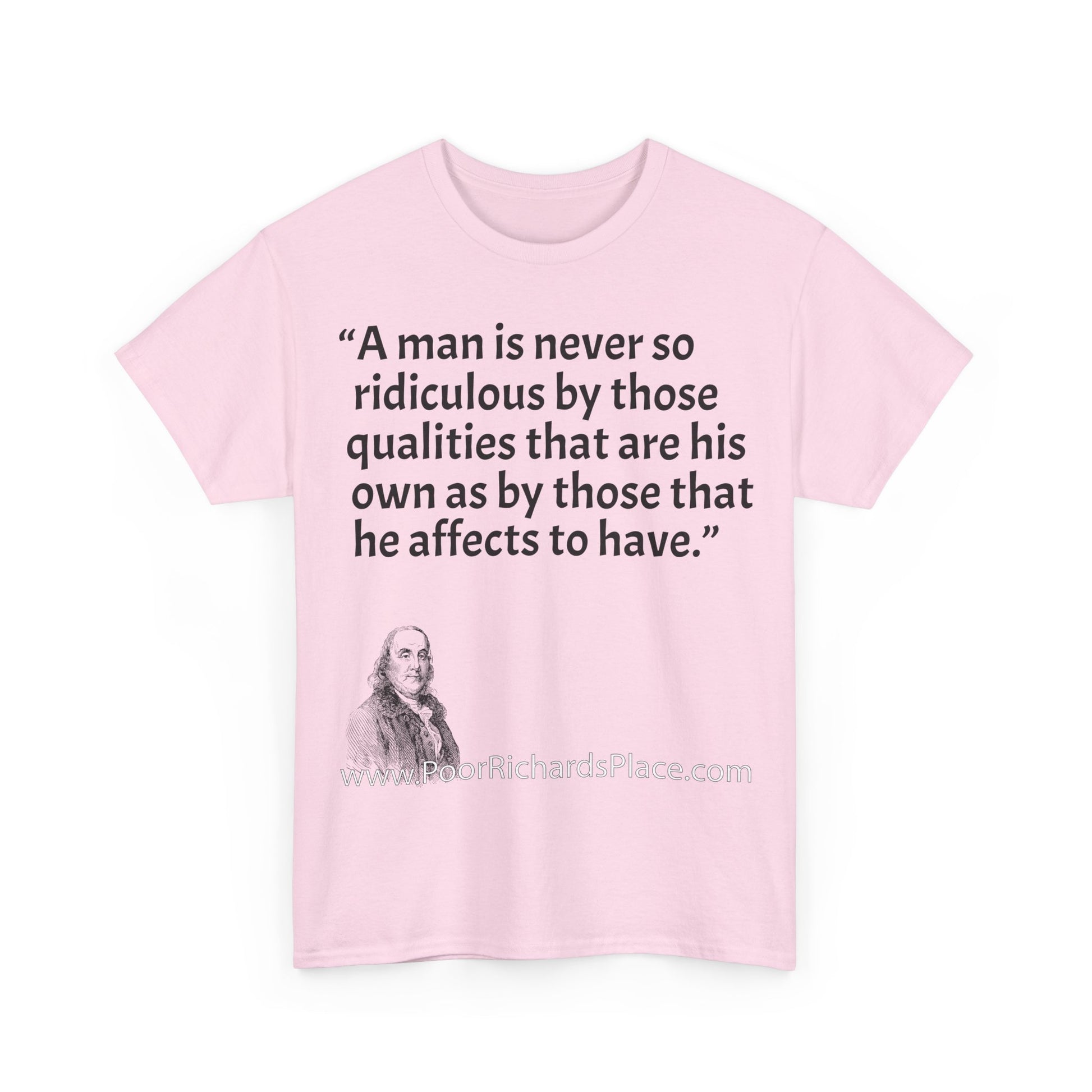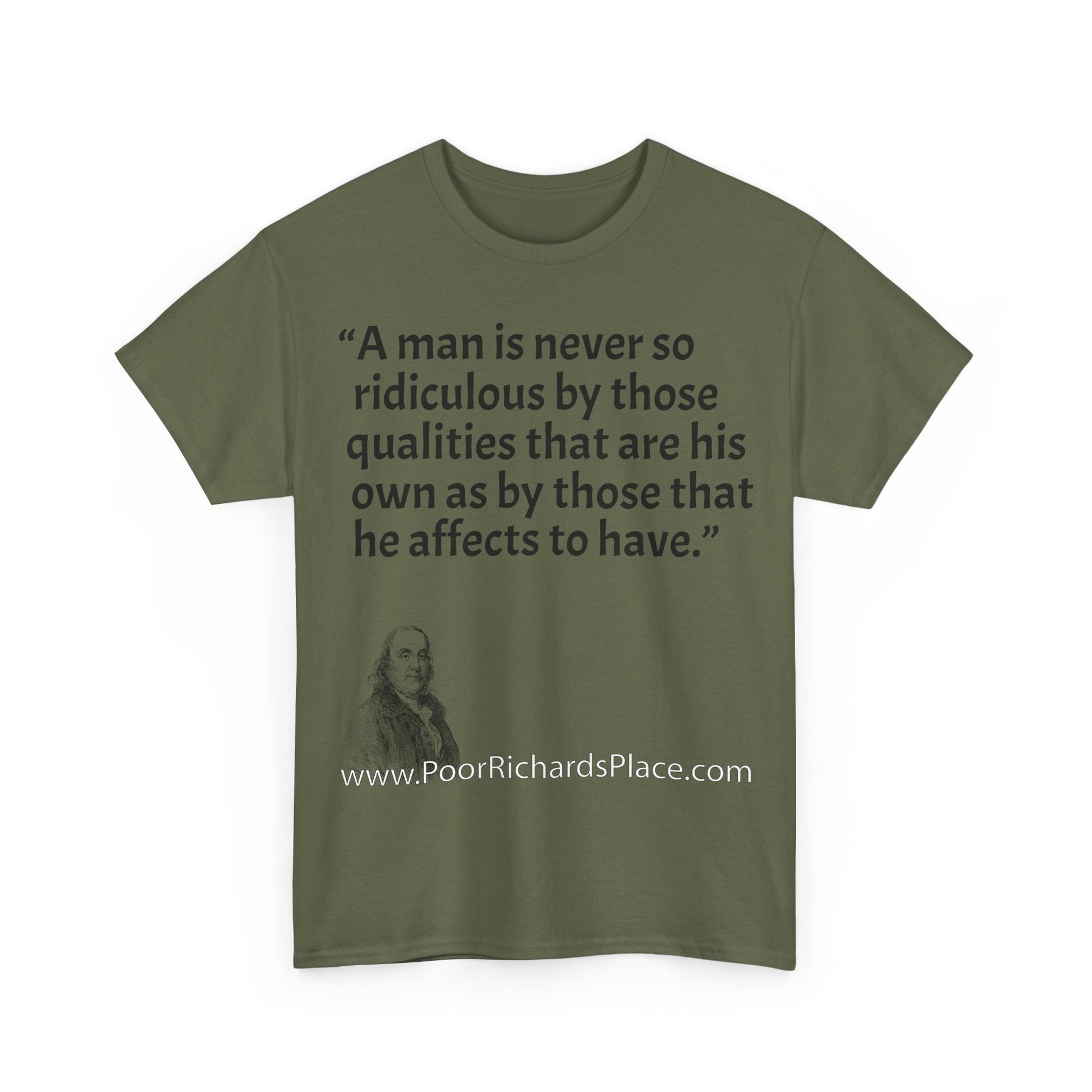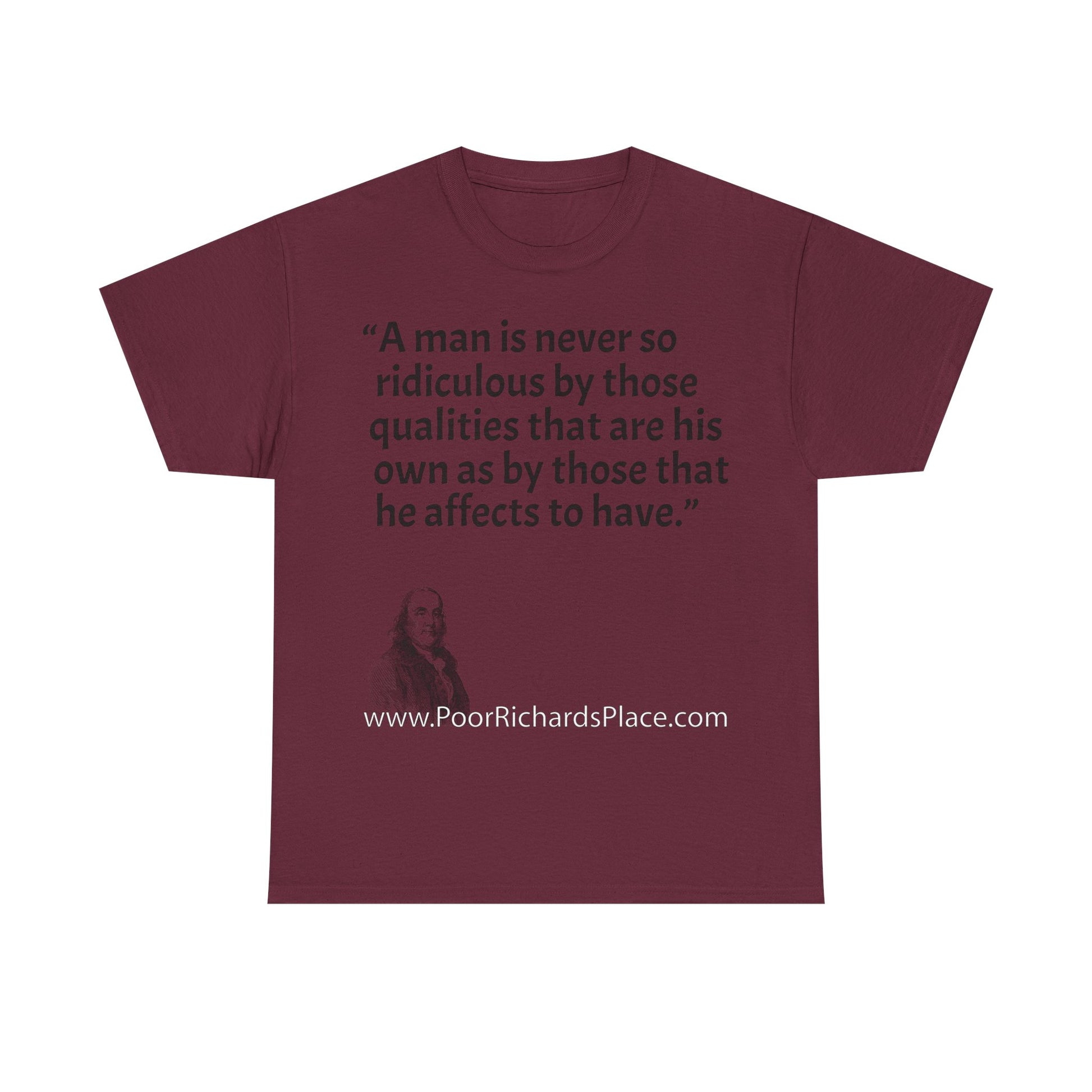 Unisex T-Shirt - Poor Richard Says A man is never so ridiculous by those qualities that are his own as by those that he affects to have