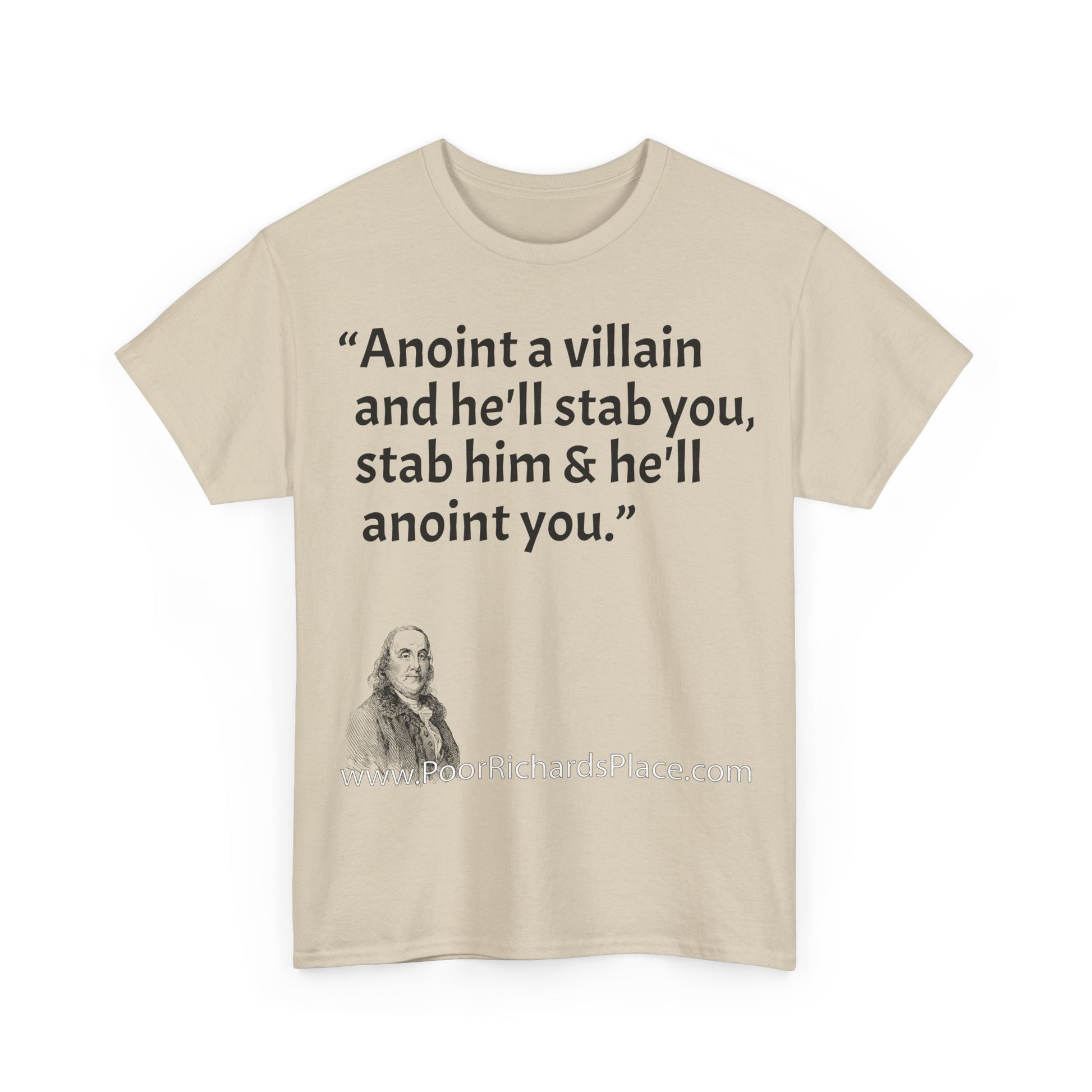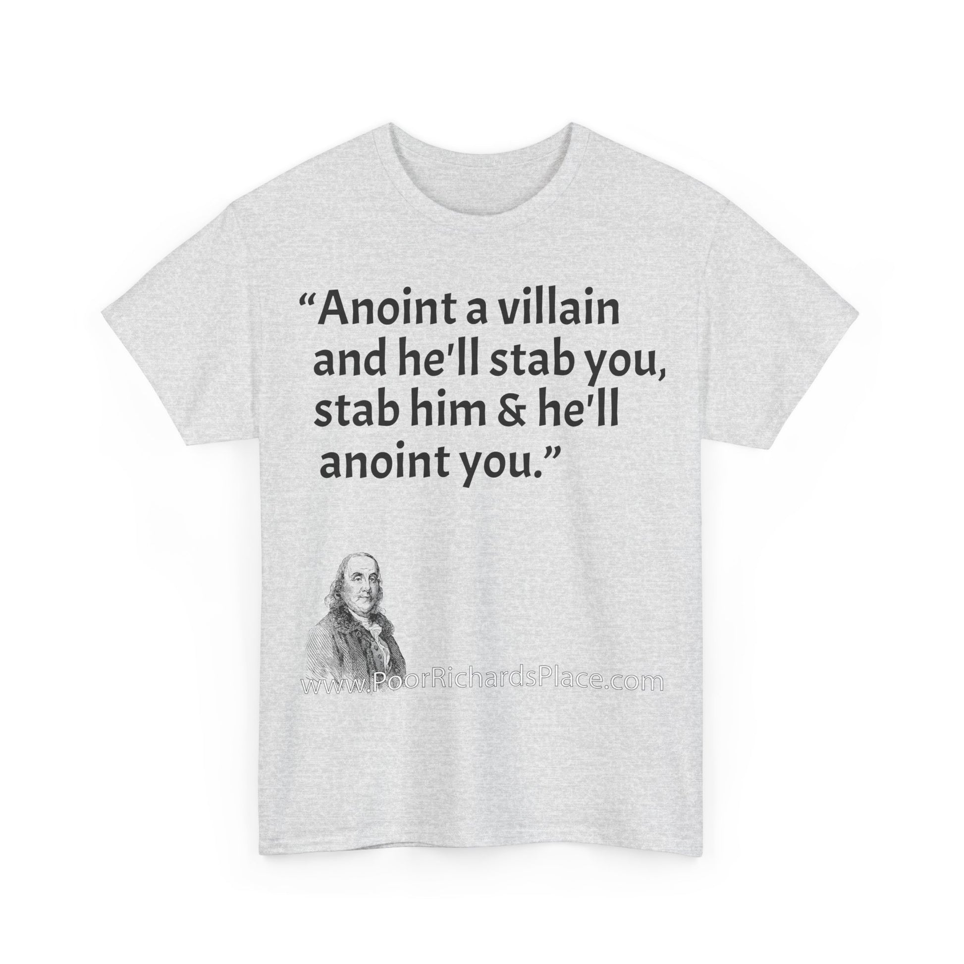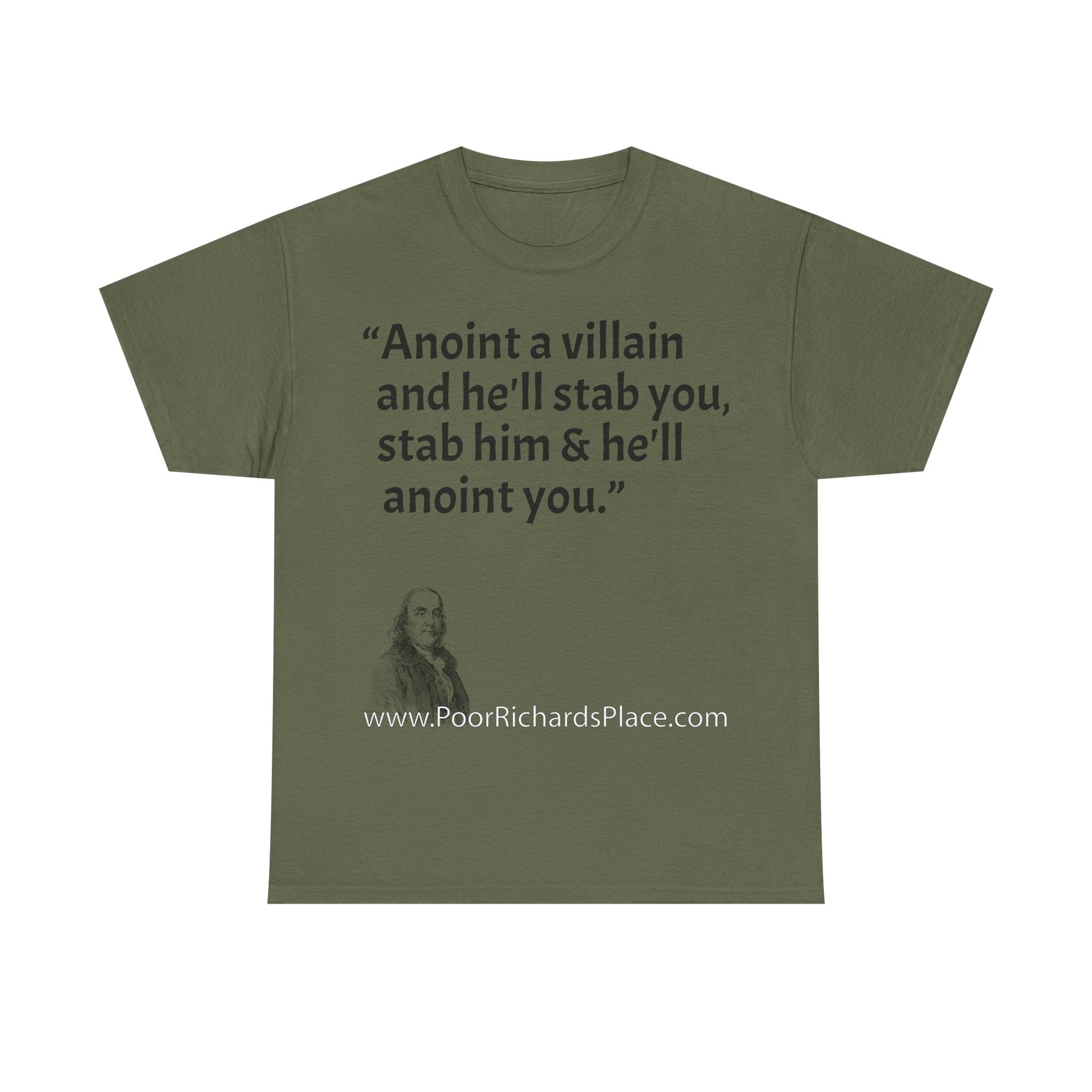 Unisex T-Shirt - Poor Richard Says Anoint a villain and he'll stab you, stab him & he'll anoint you
