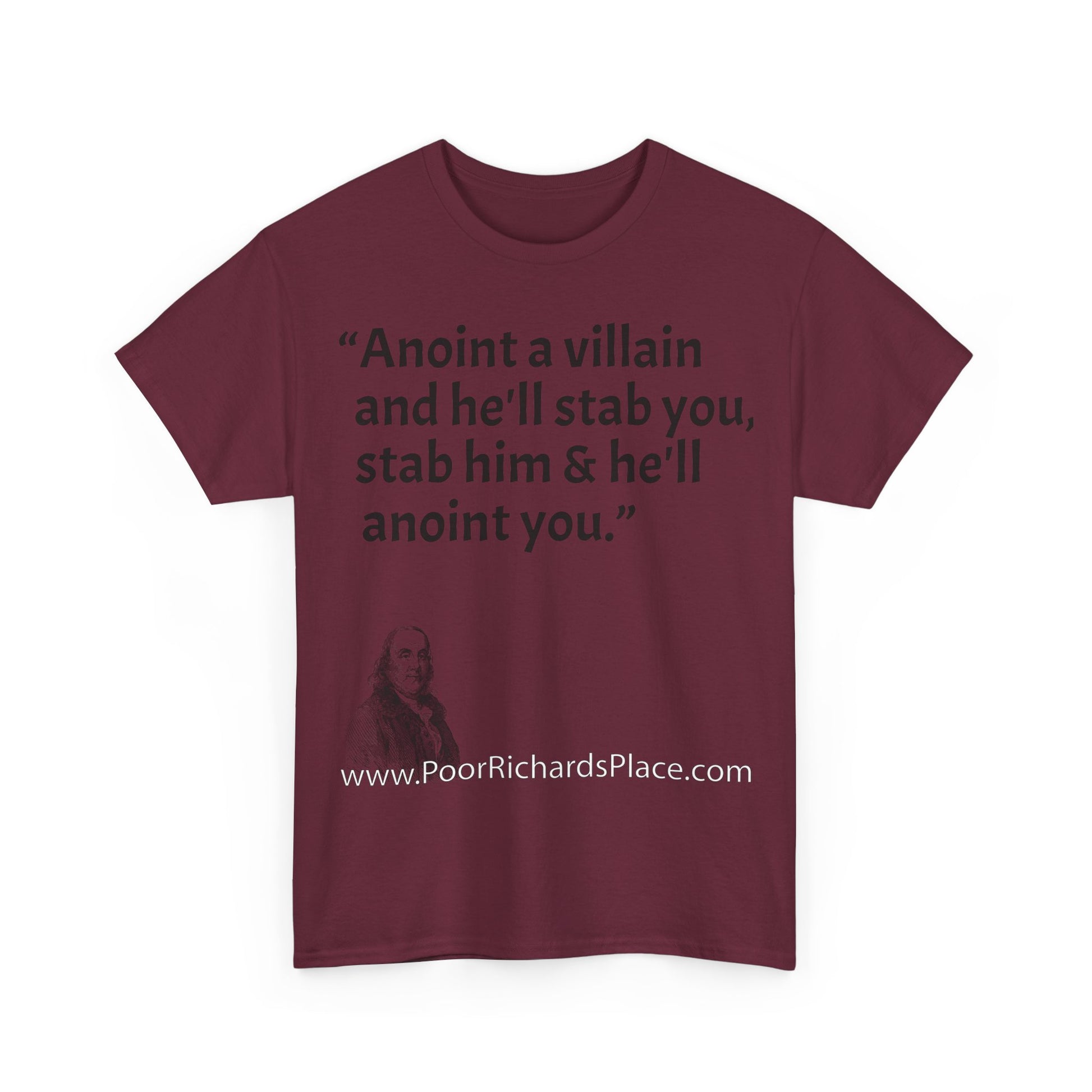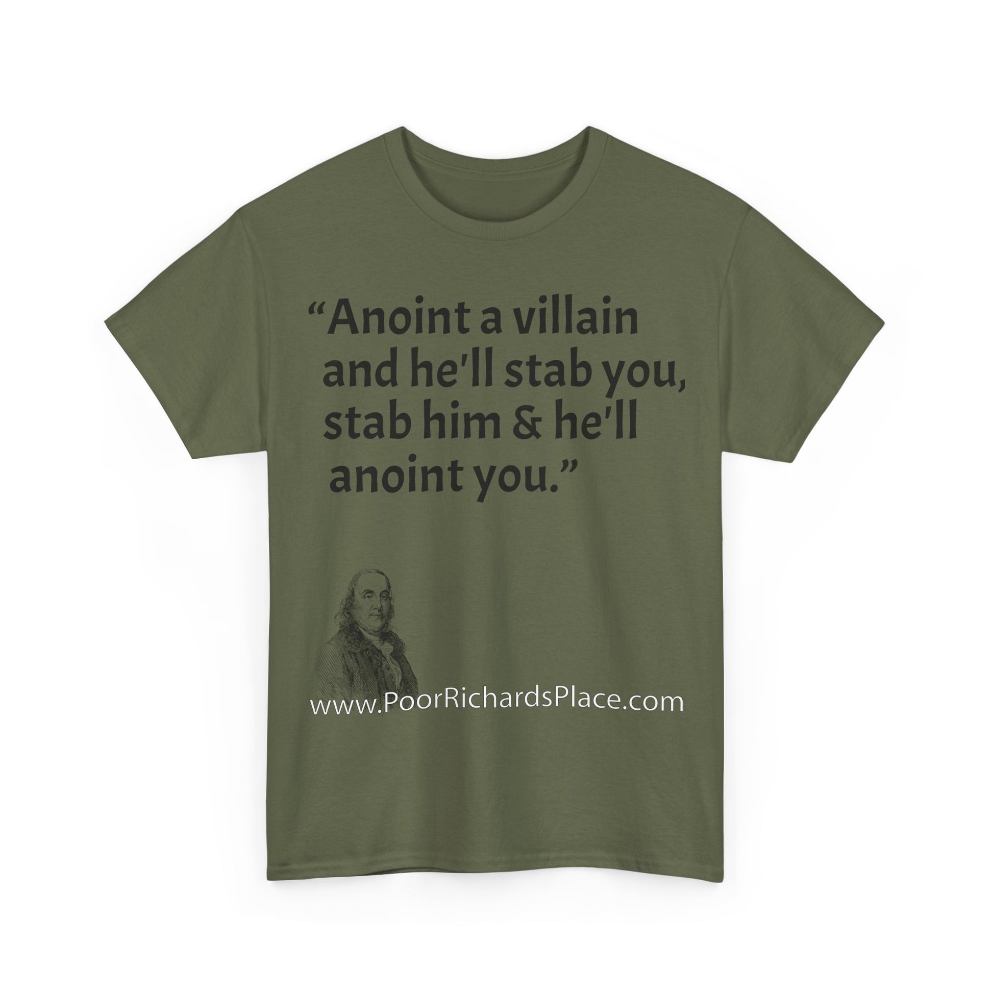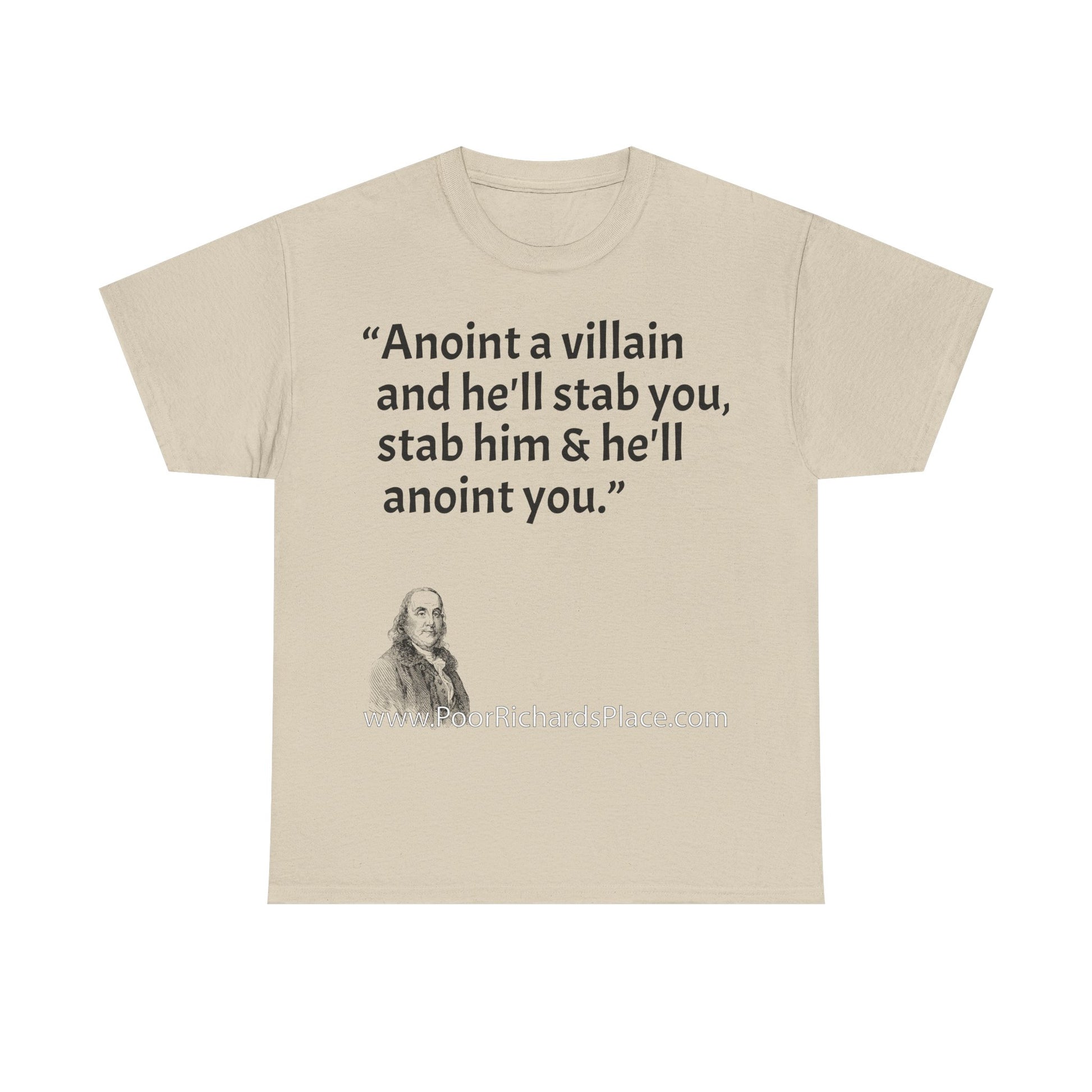 Unisex T-Shirt - Poor Richard Says Anoint a villain and he'll stab you, stab him & he'll anoint you
