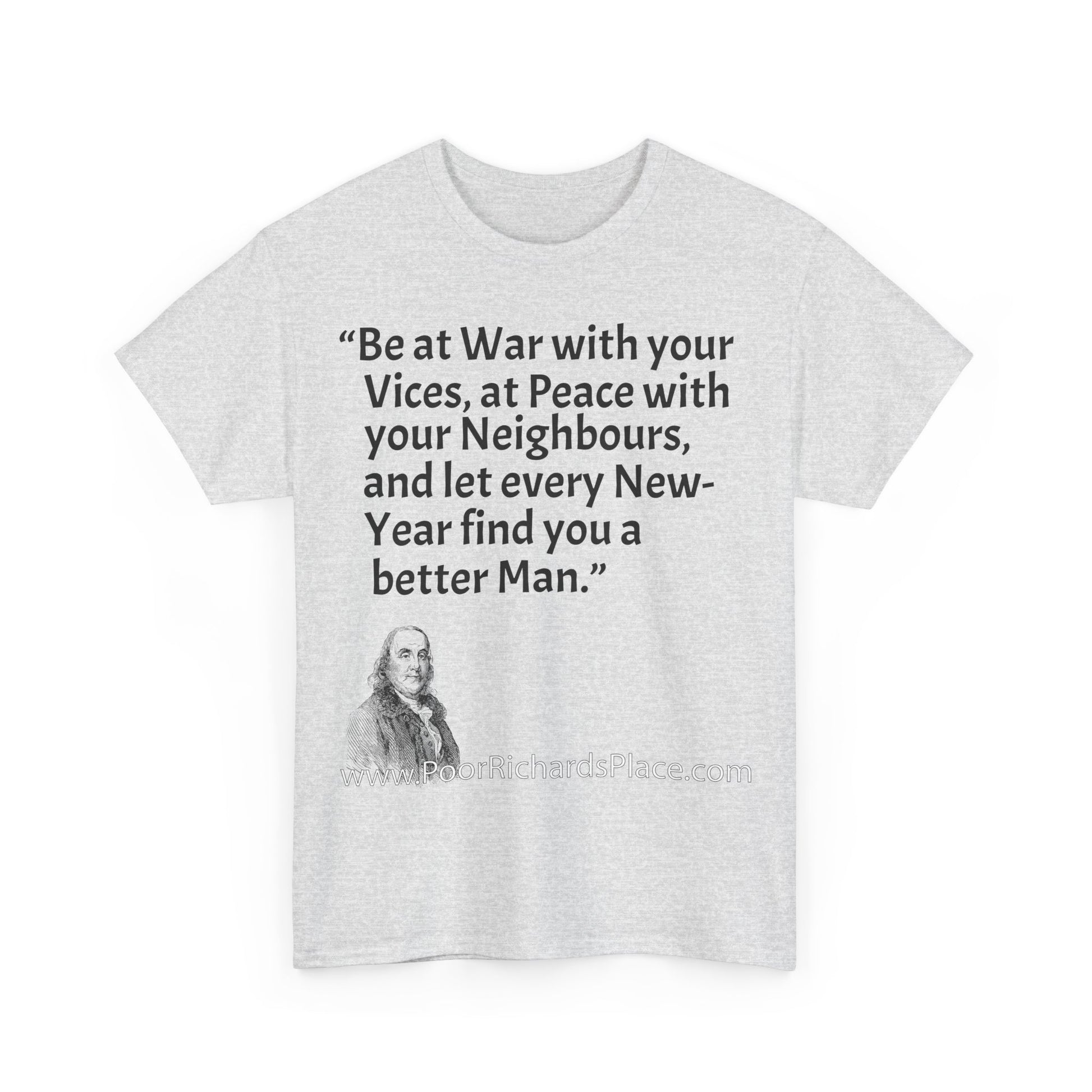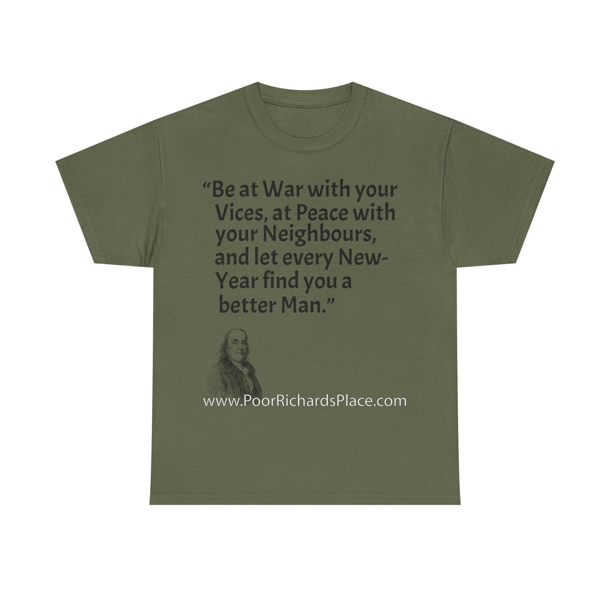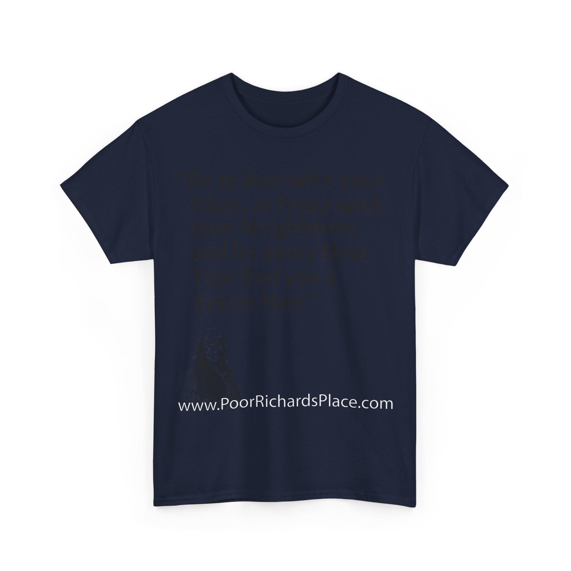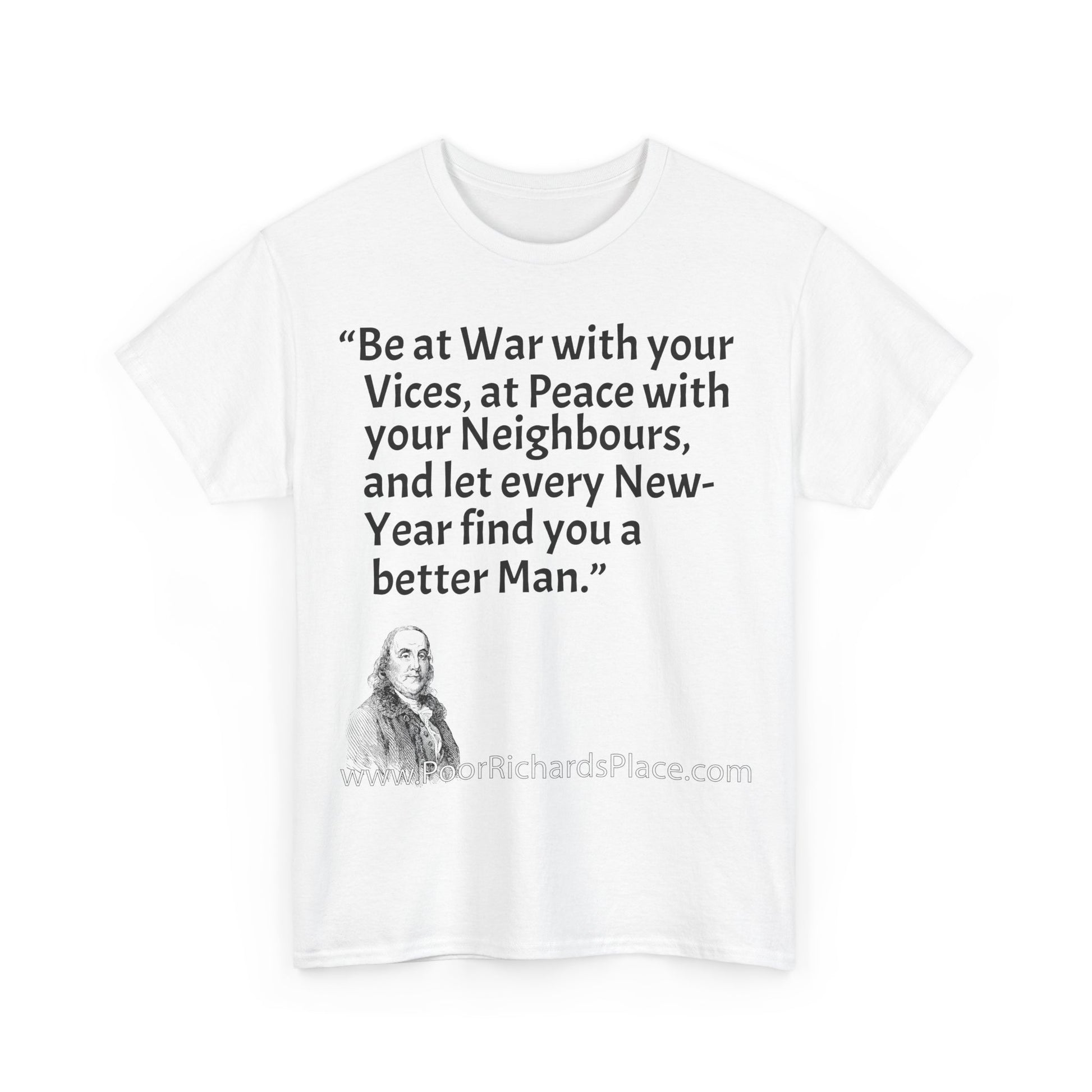 Unisex T-Shirt - Poor Richard Says Be at War with your Vices, at Peace with your Neighbours, and let every New-Year find you a better Man