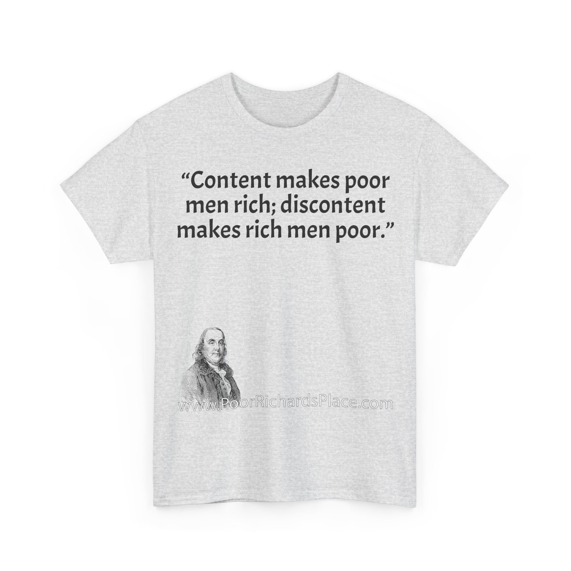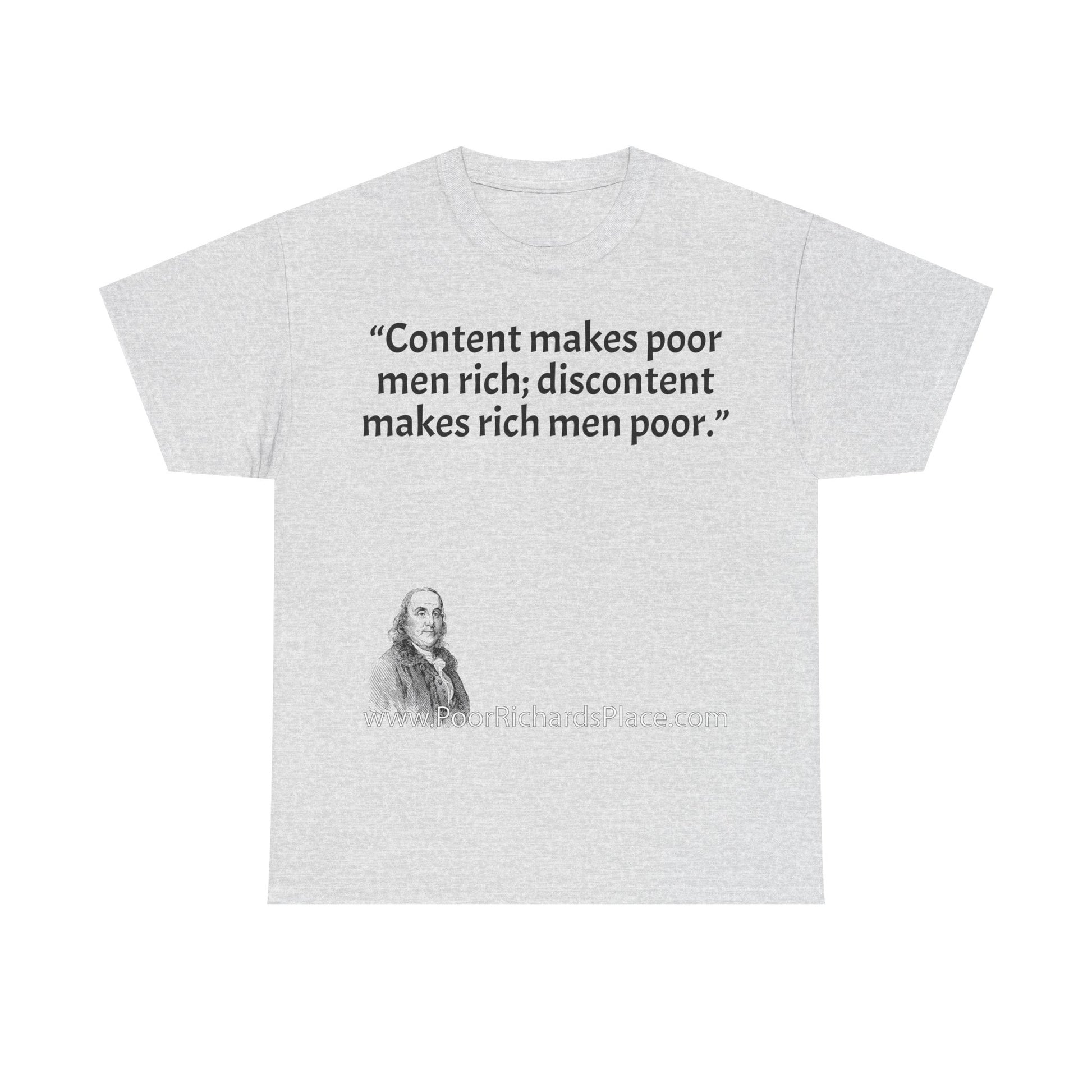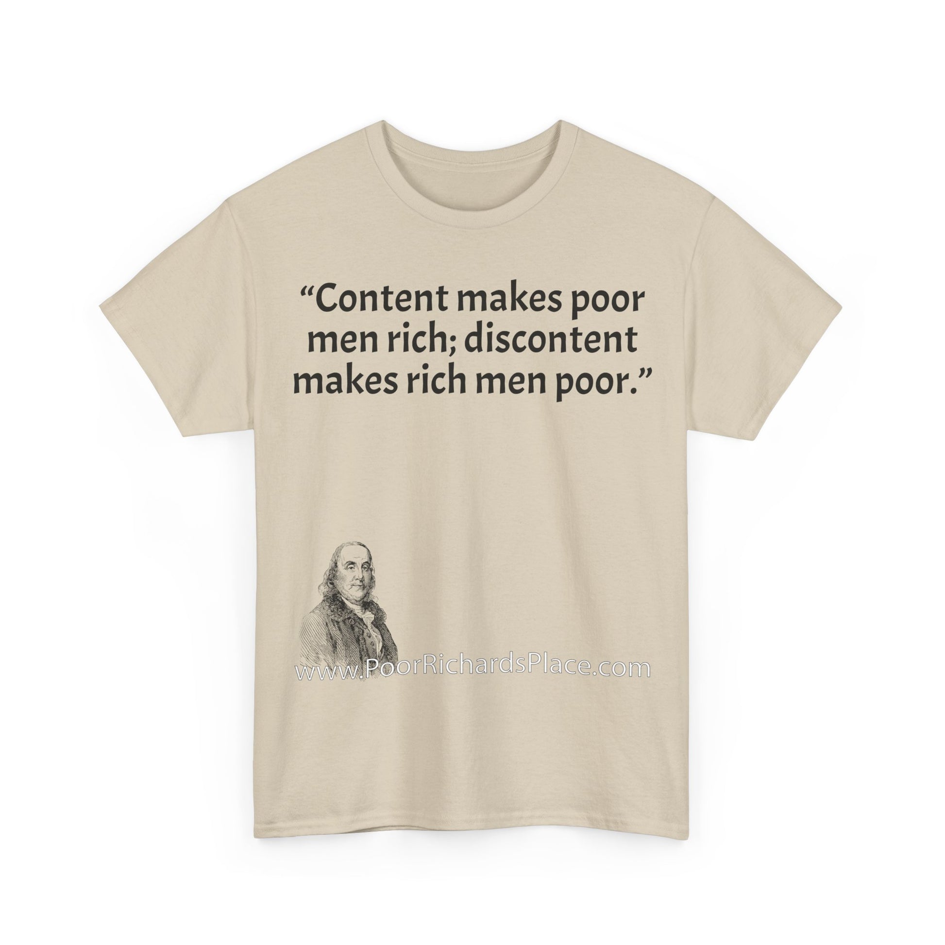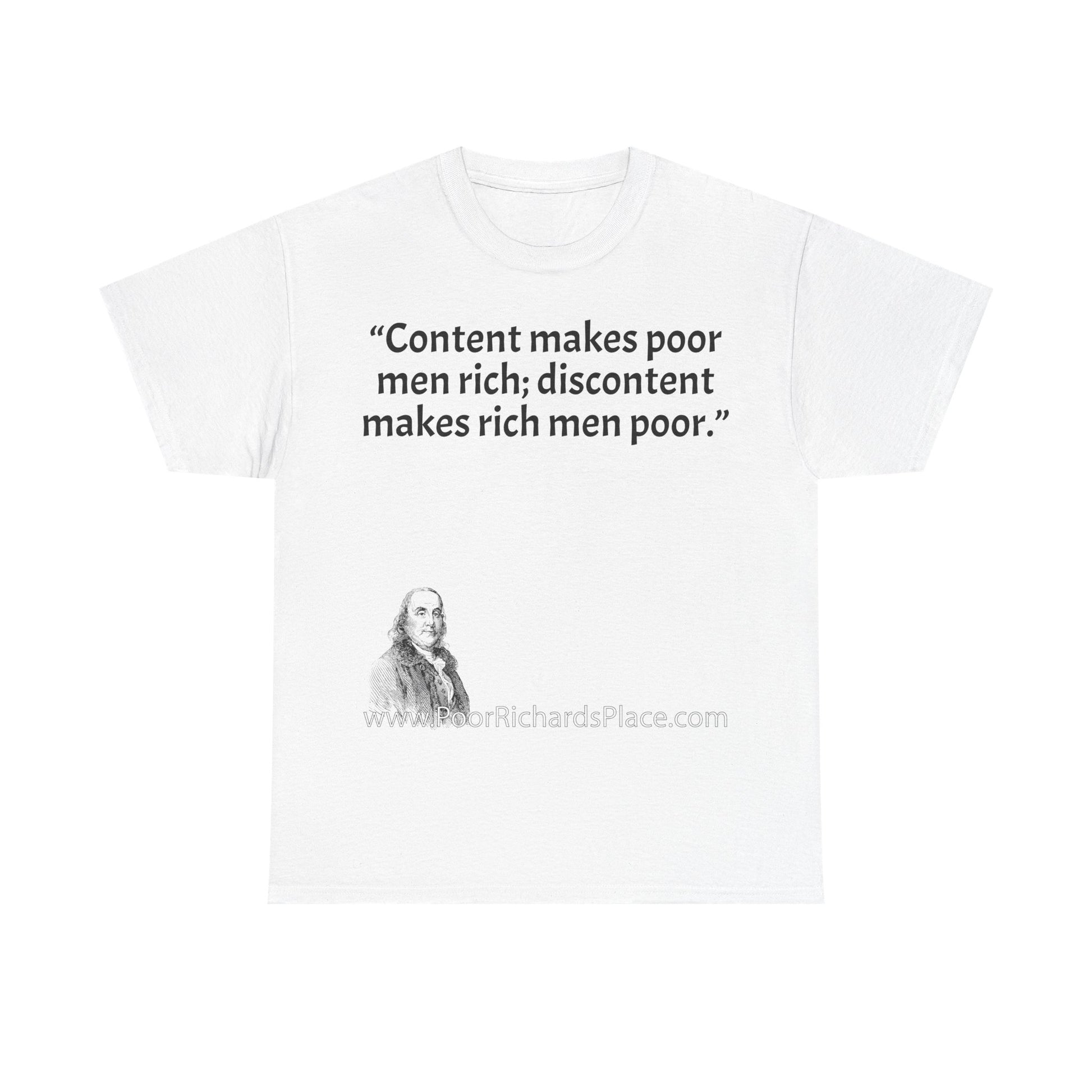 Unisex T-Shirt - Poor Richard Says Content makes poor men rich; discontent makes rich men poor
