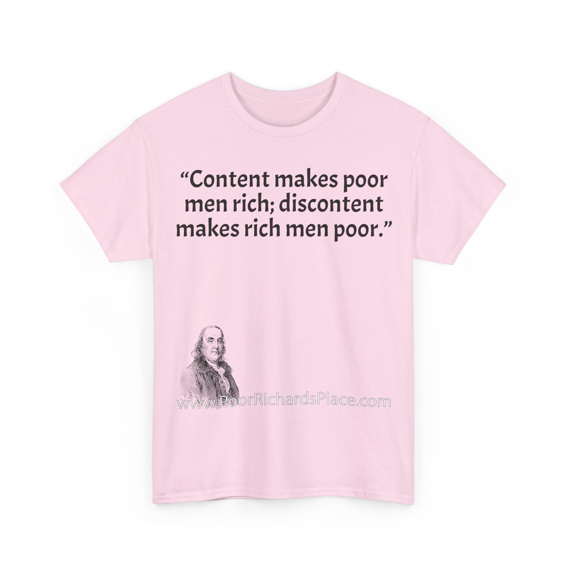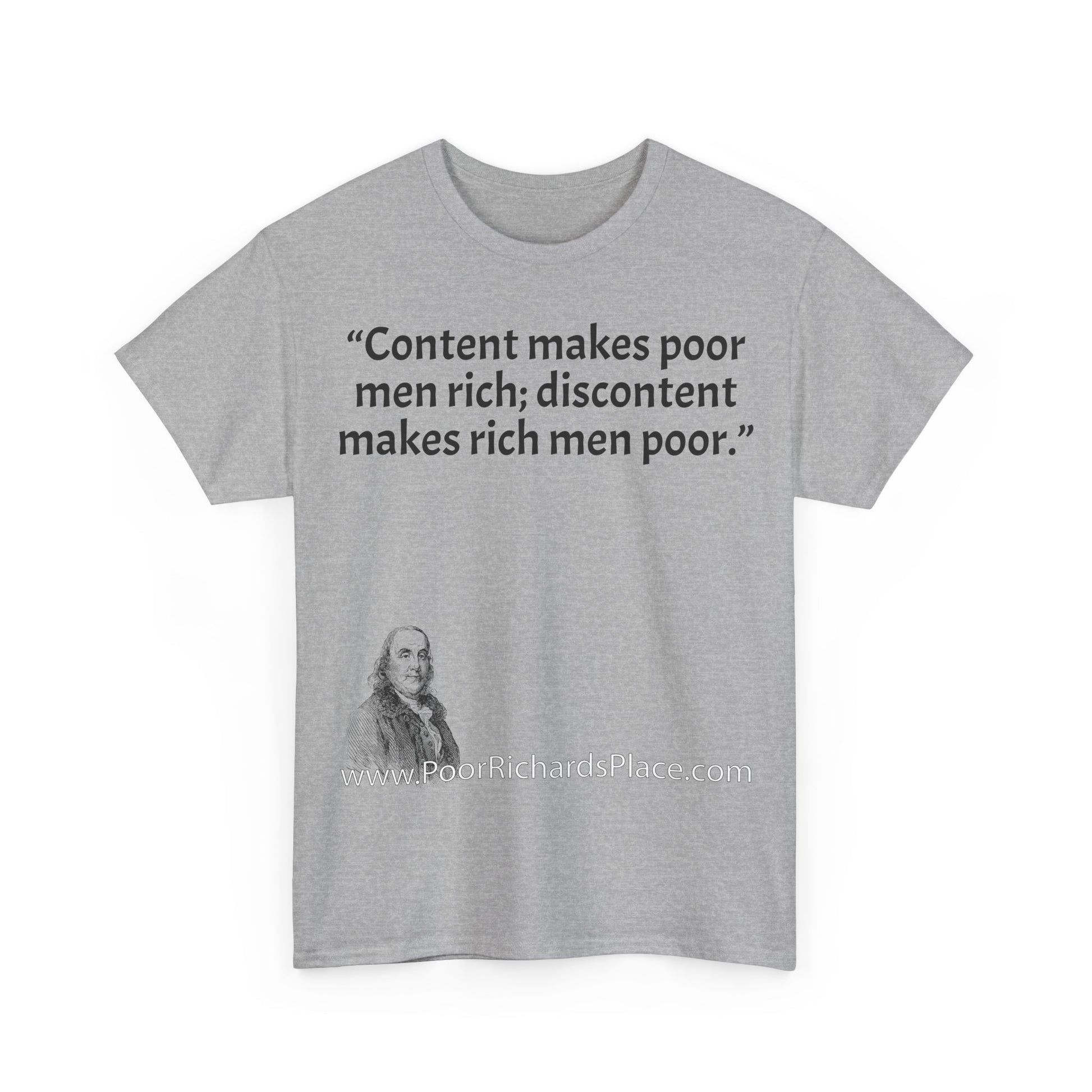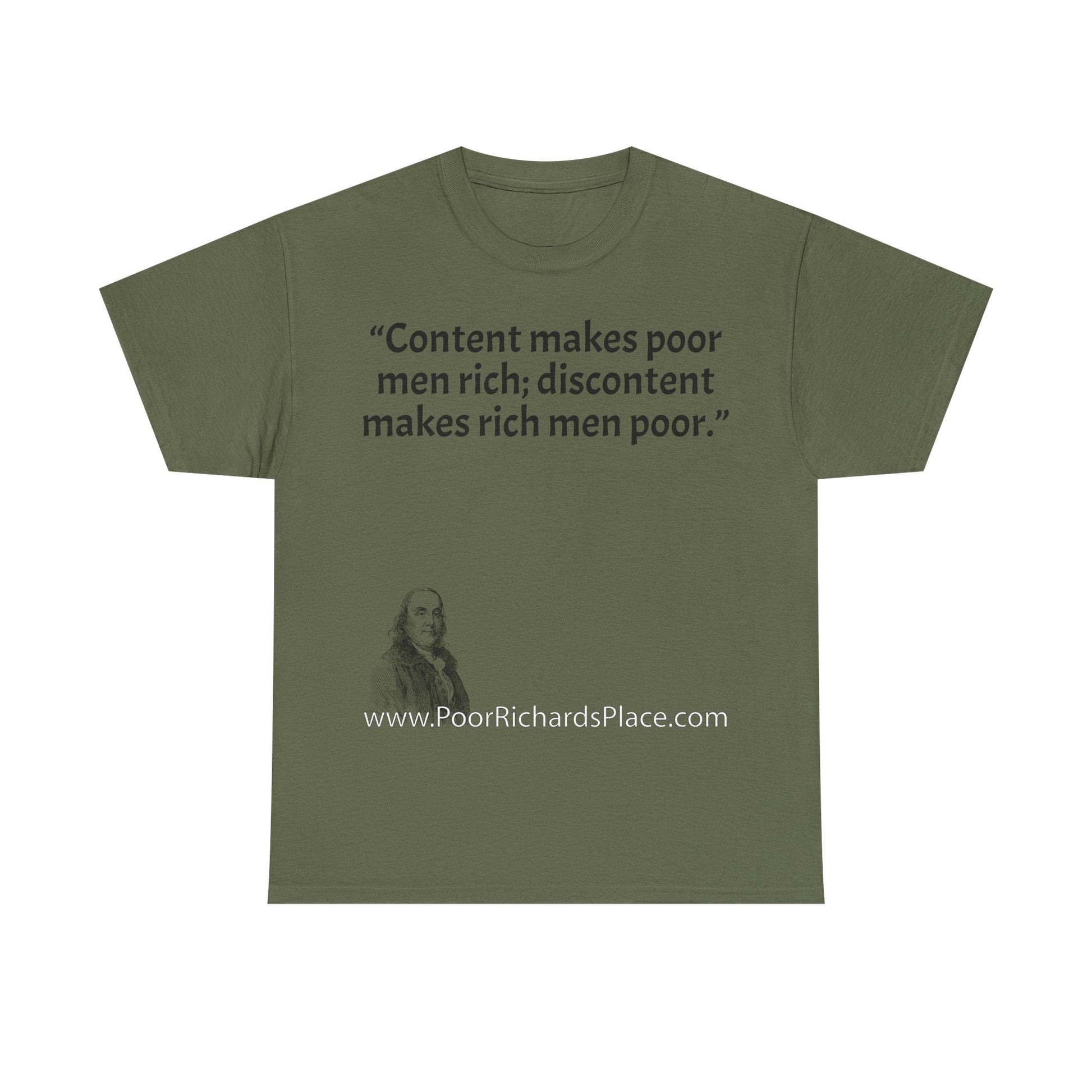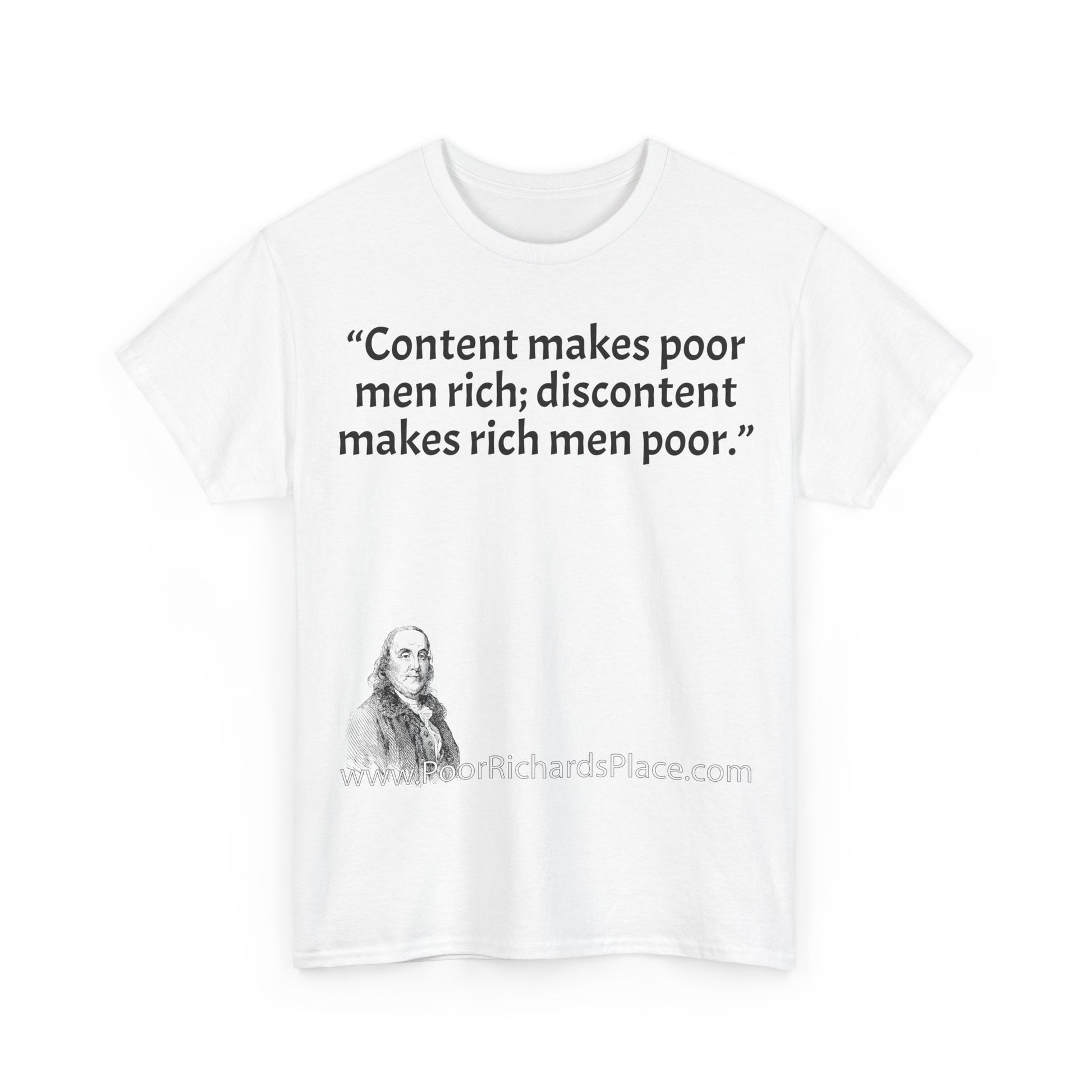 Unisex T-Shirt - Poor Richard Says Content makes poor men rich; discontent makes rich men poor