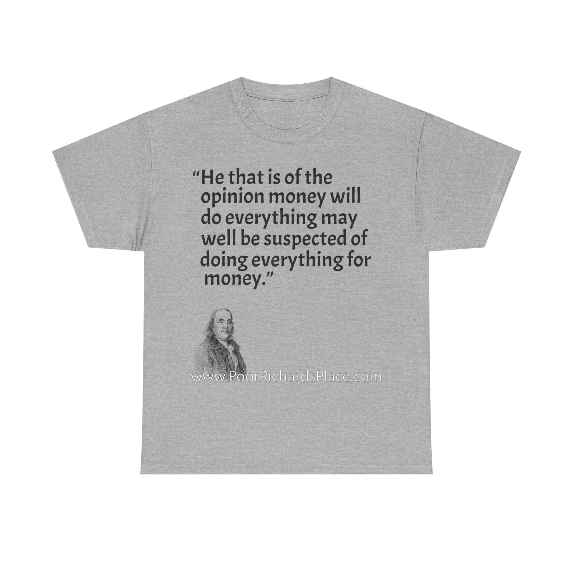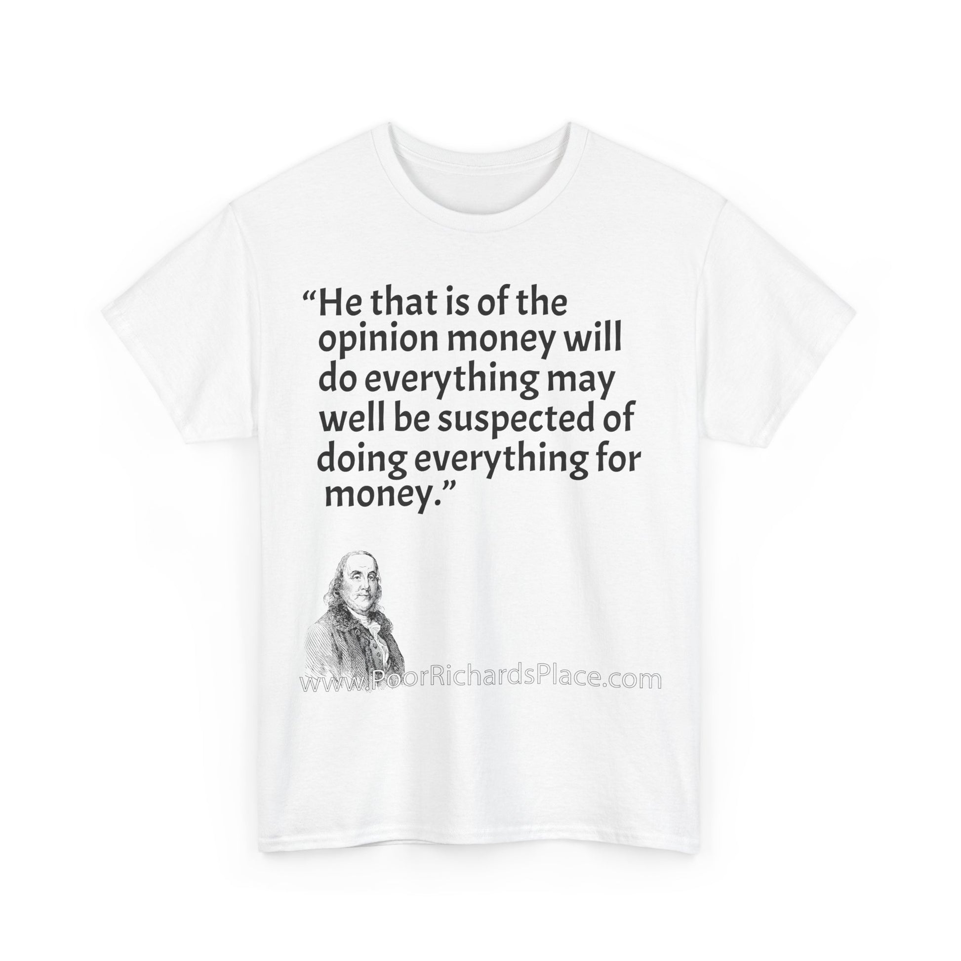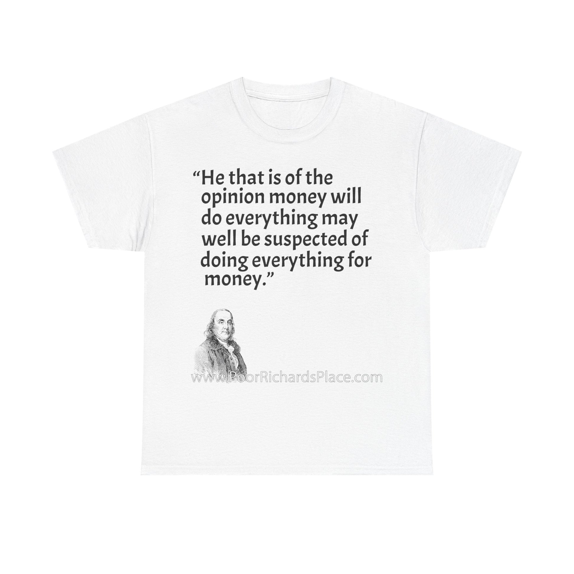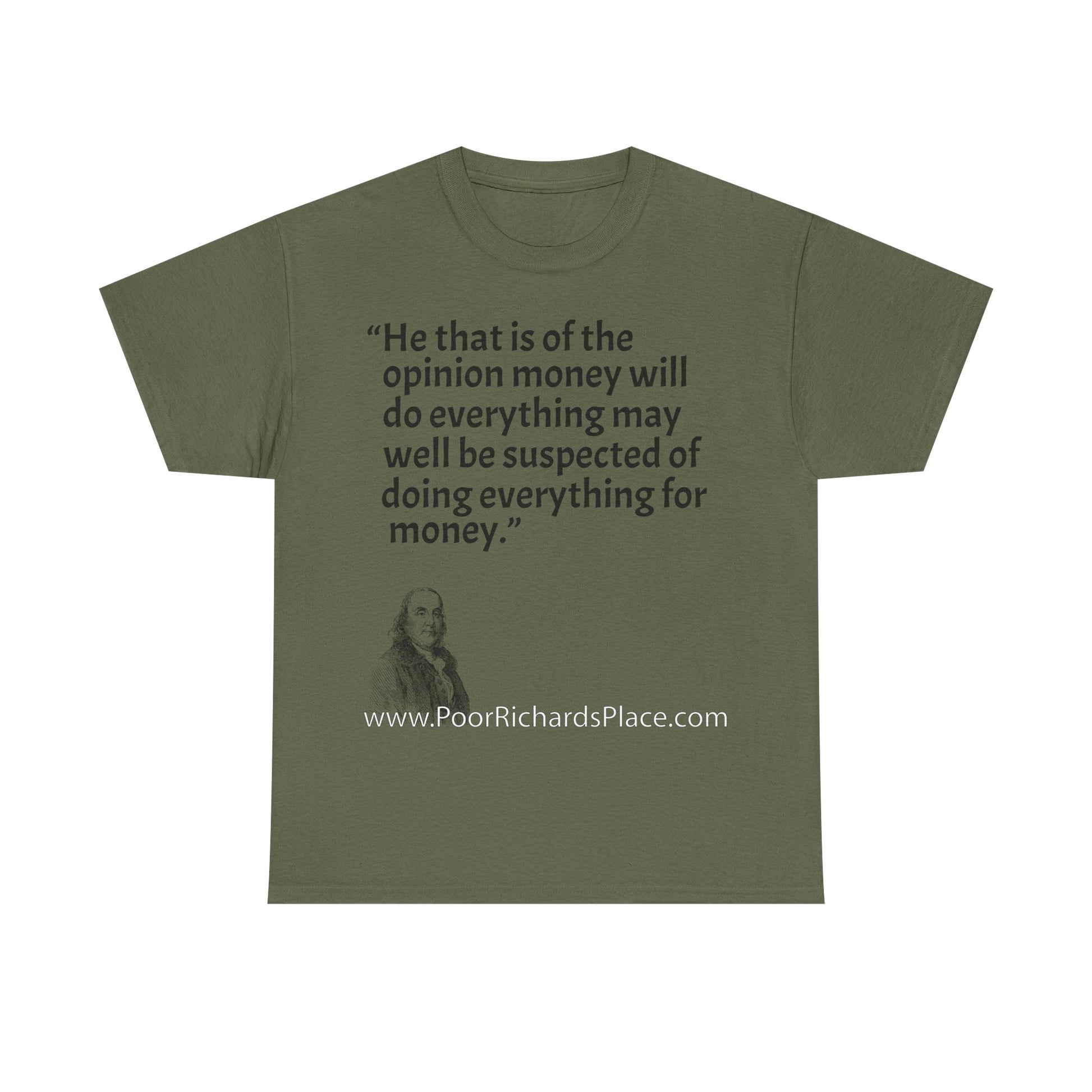 Unisex T-Shirt - Poor Richard Says He that is of the opinion money will do everything may well be suspected of doing everything for money