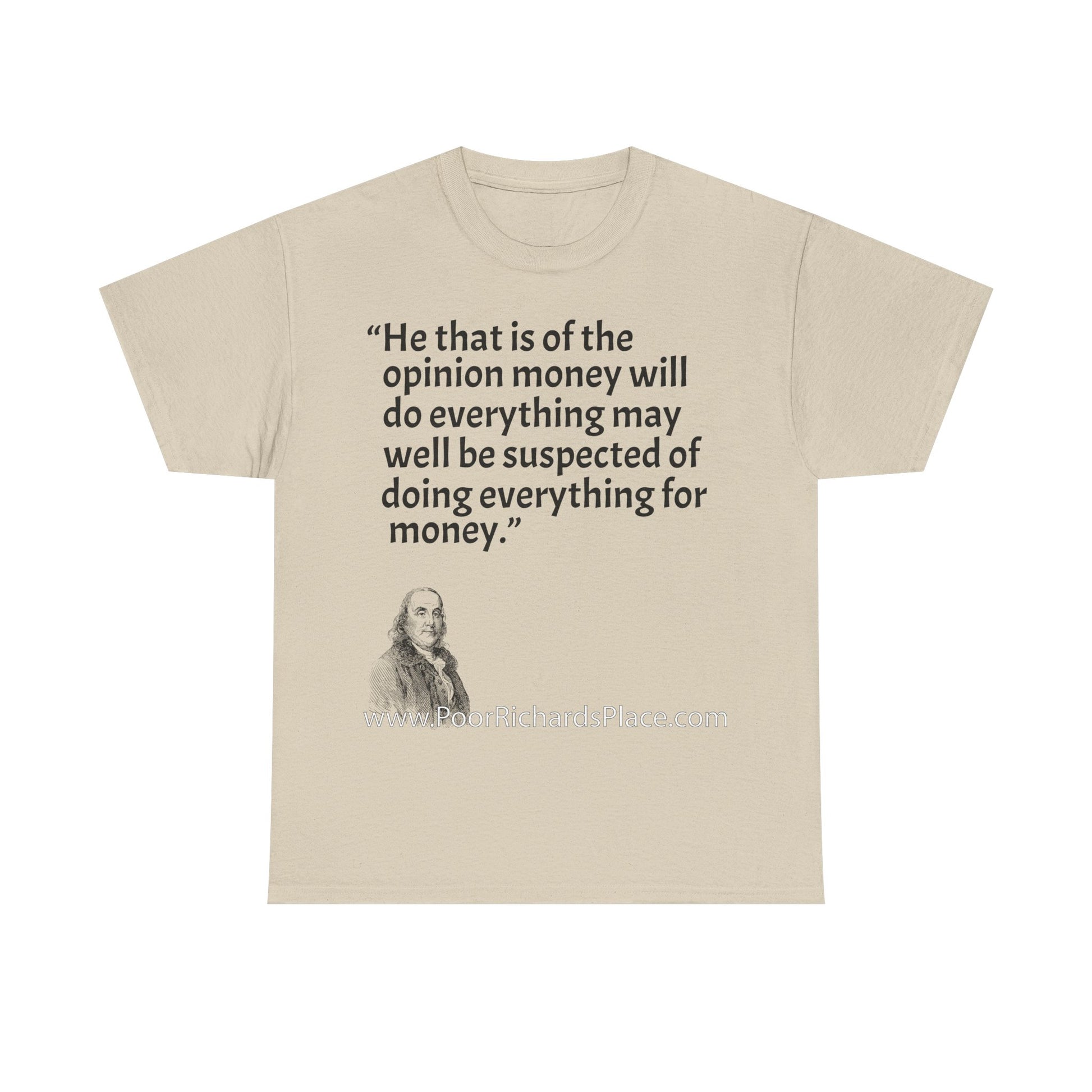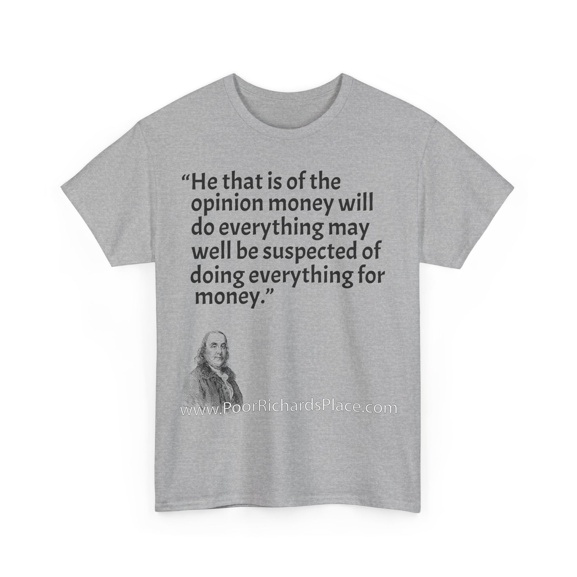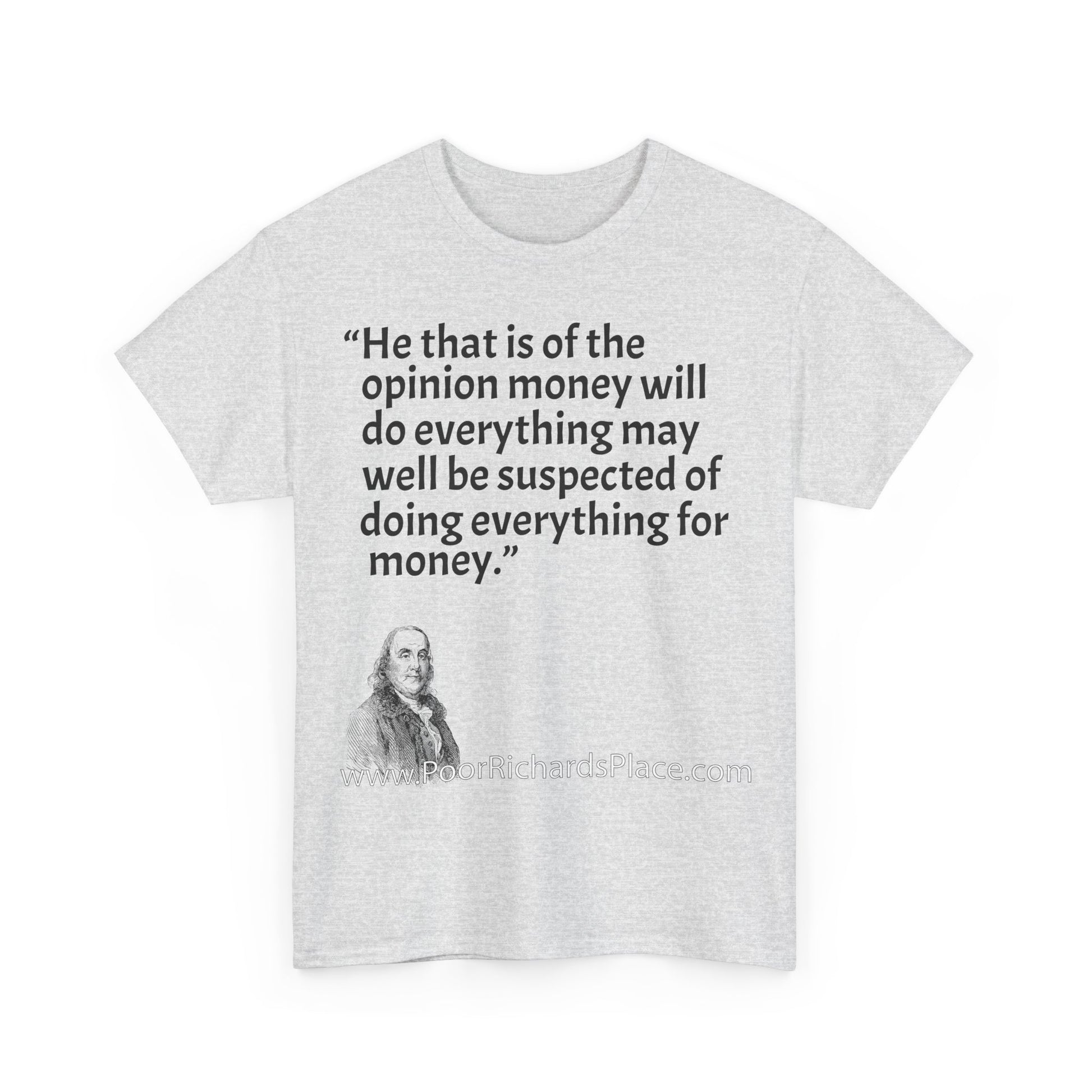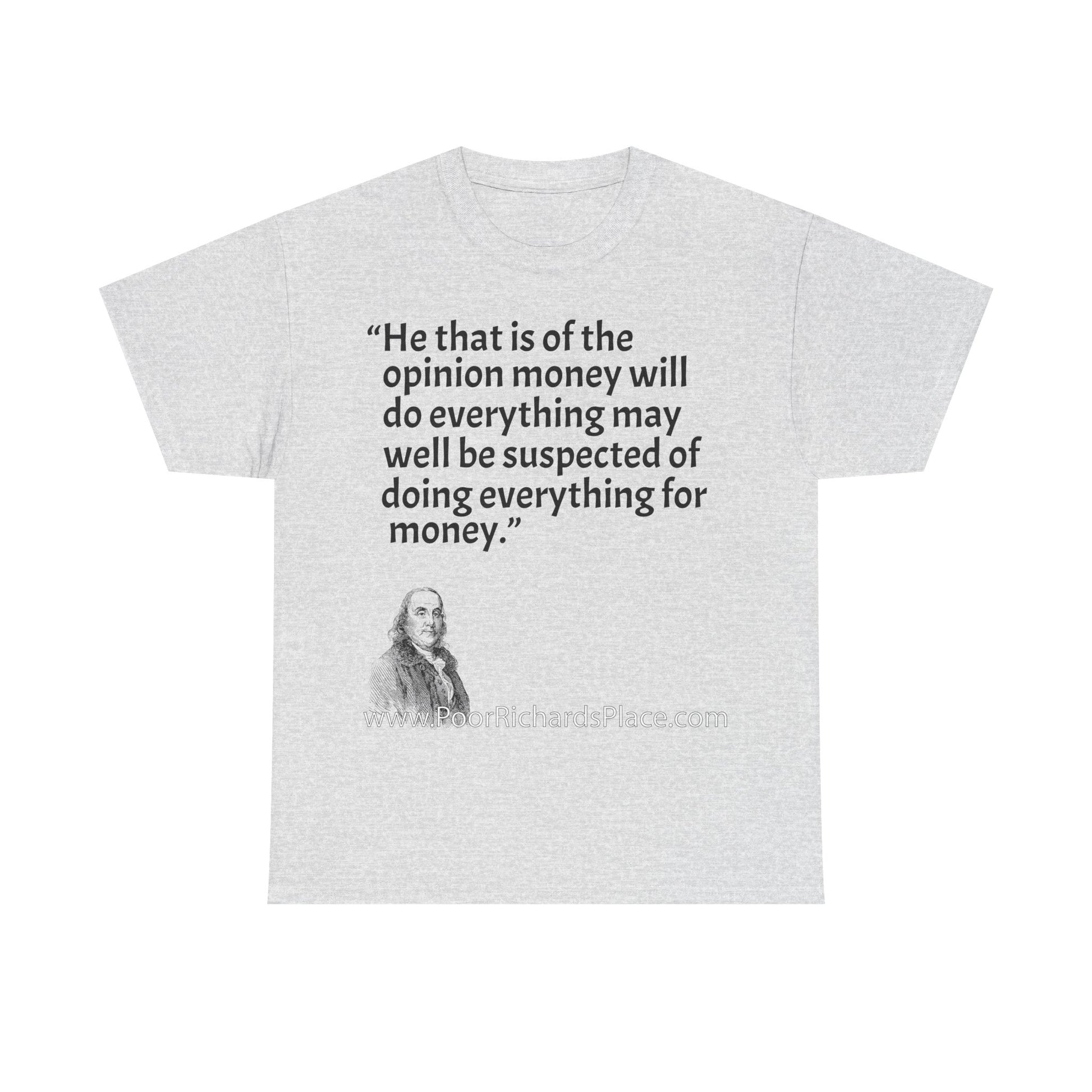 Unisex T-Shirt - Poor Richard Says He that is of the opinion money will do everything may well be suspected of doing everything for money