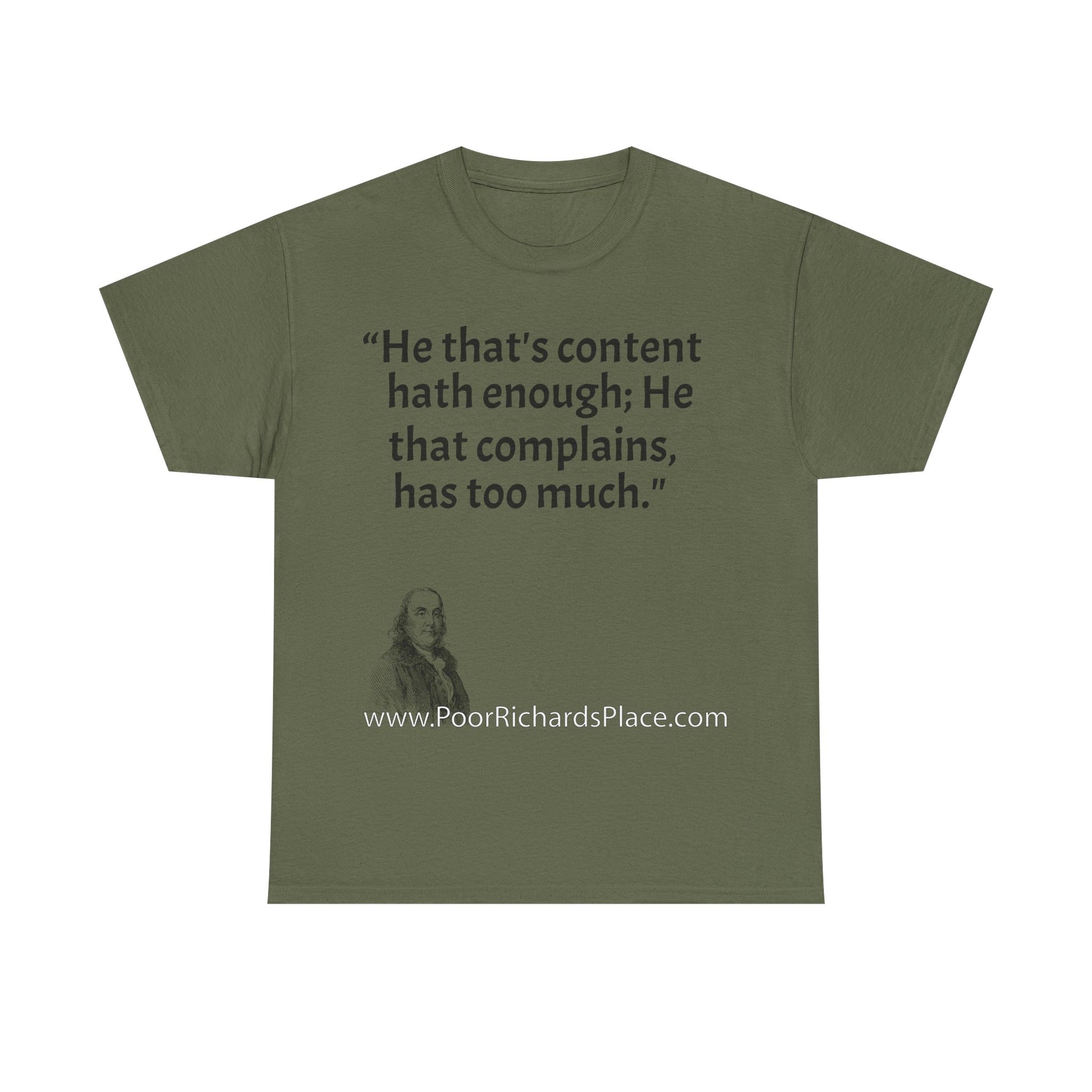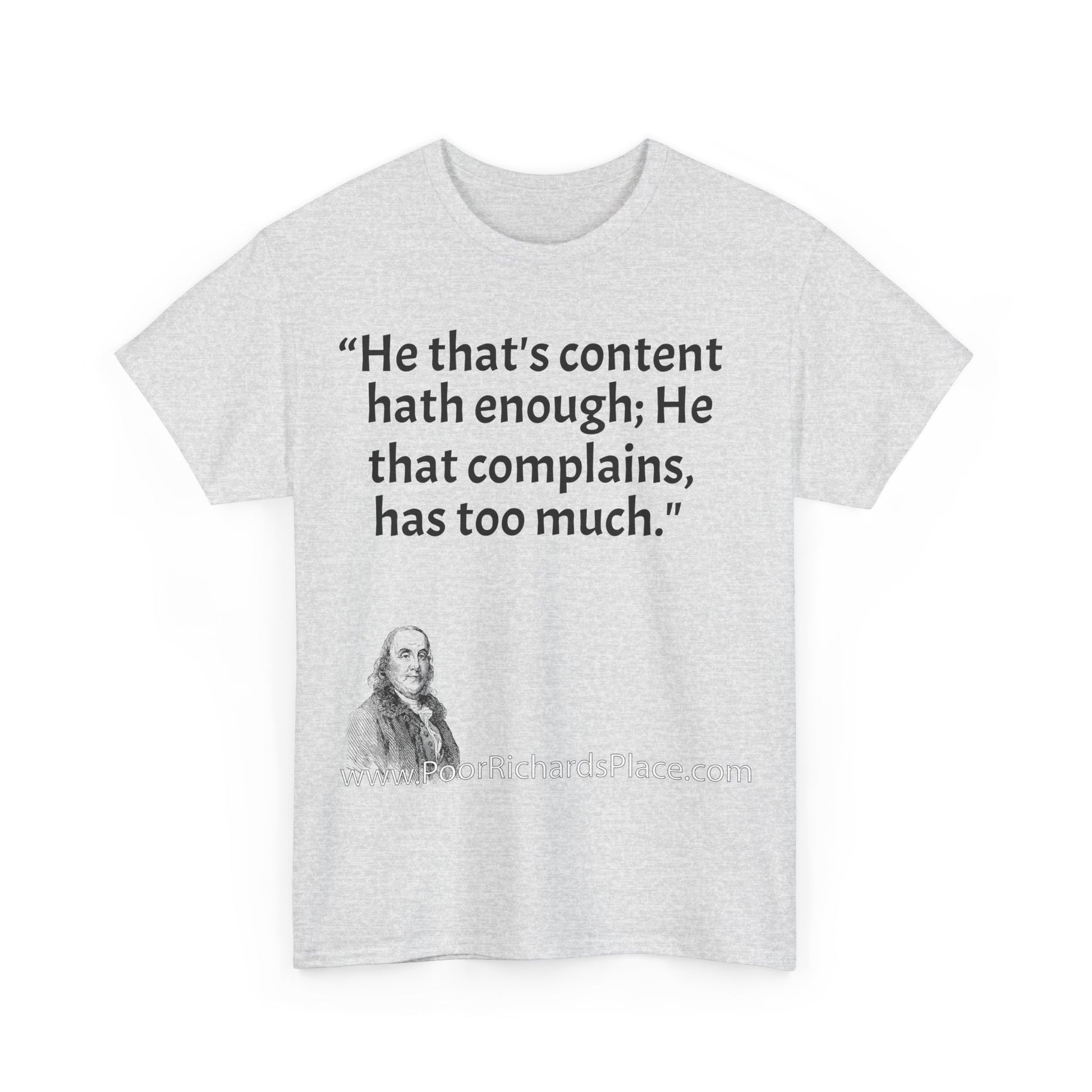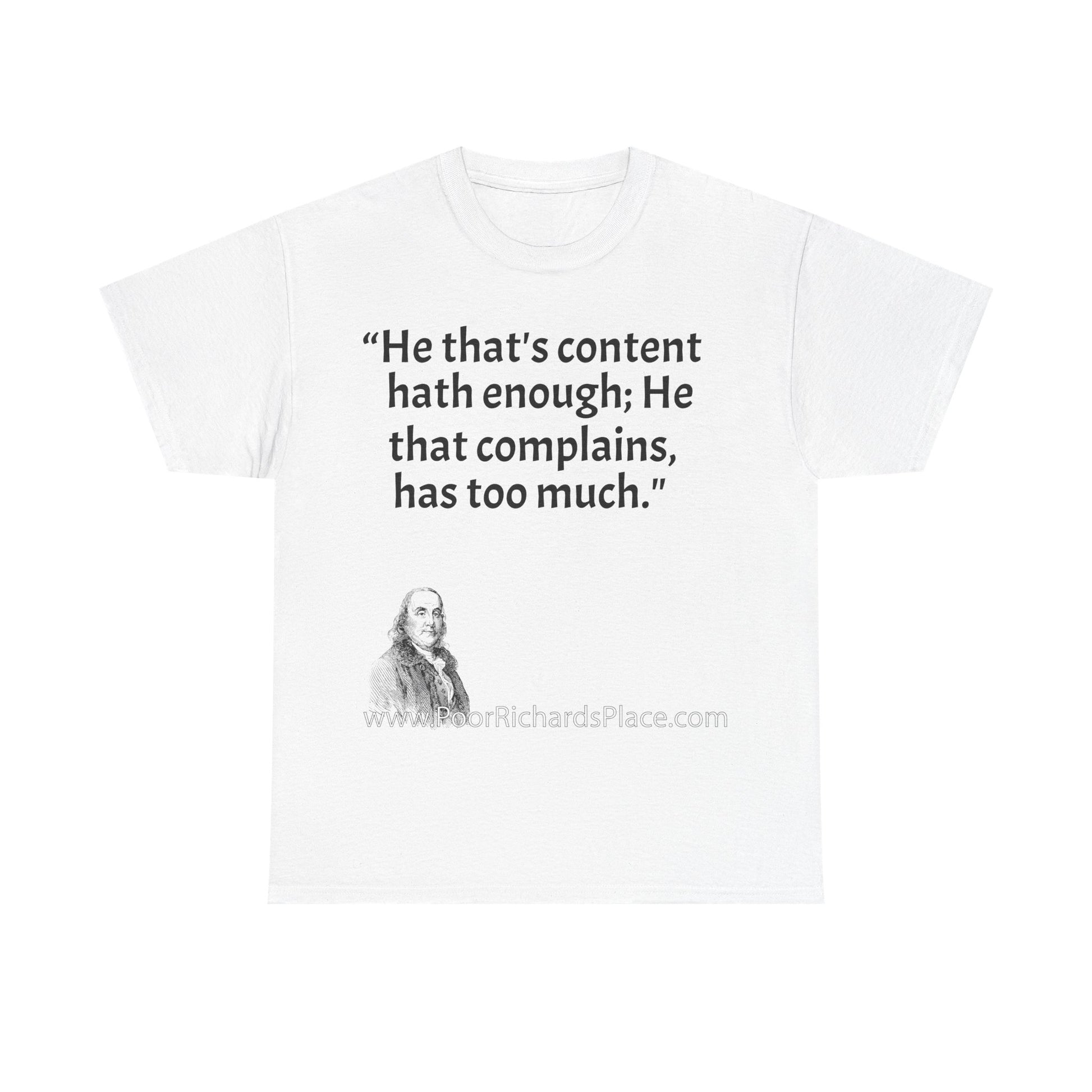 Unisex T-Shirt - Poor Richard Says He that's content, hath enough; He that complains, has too much