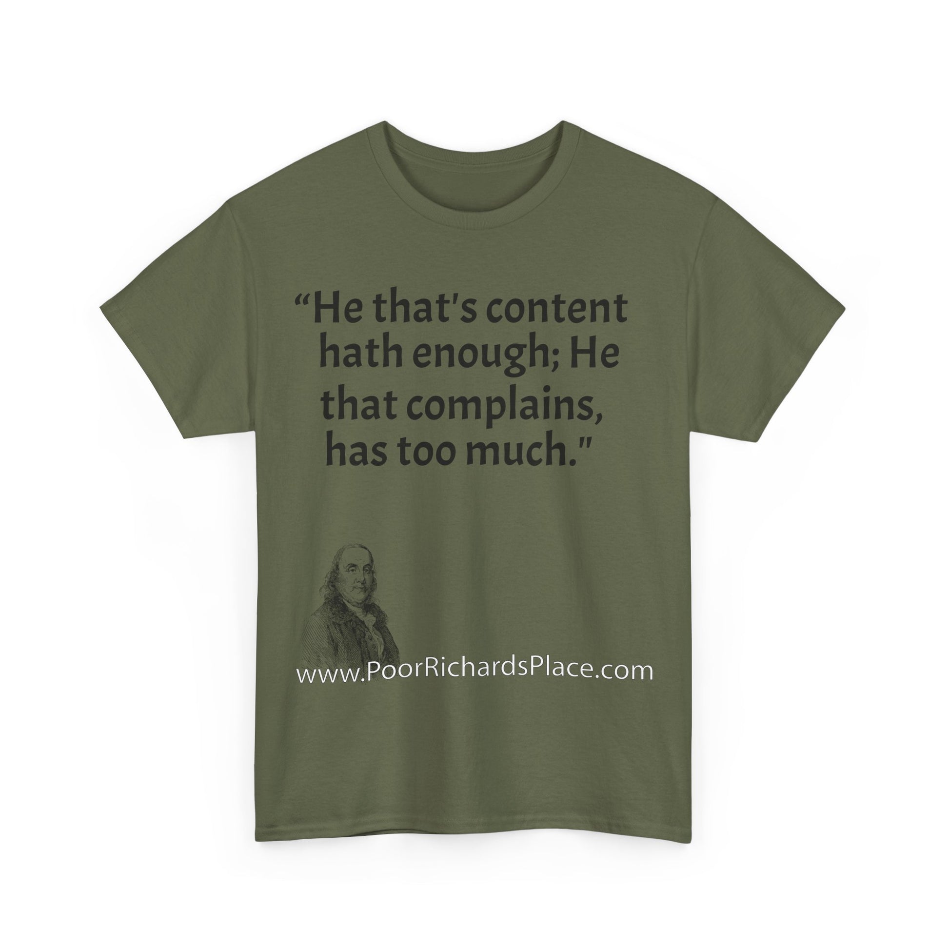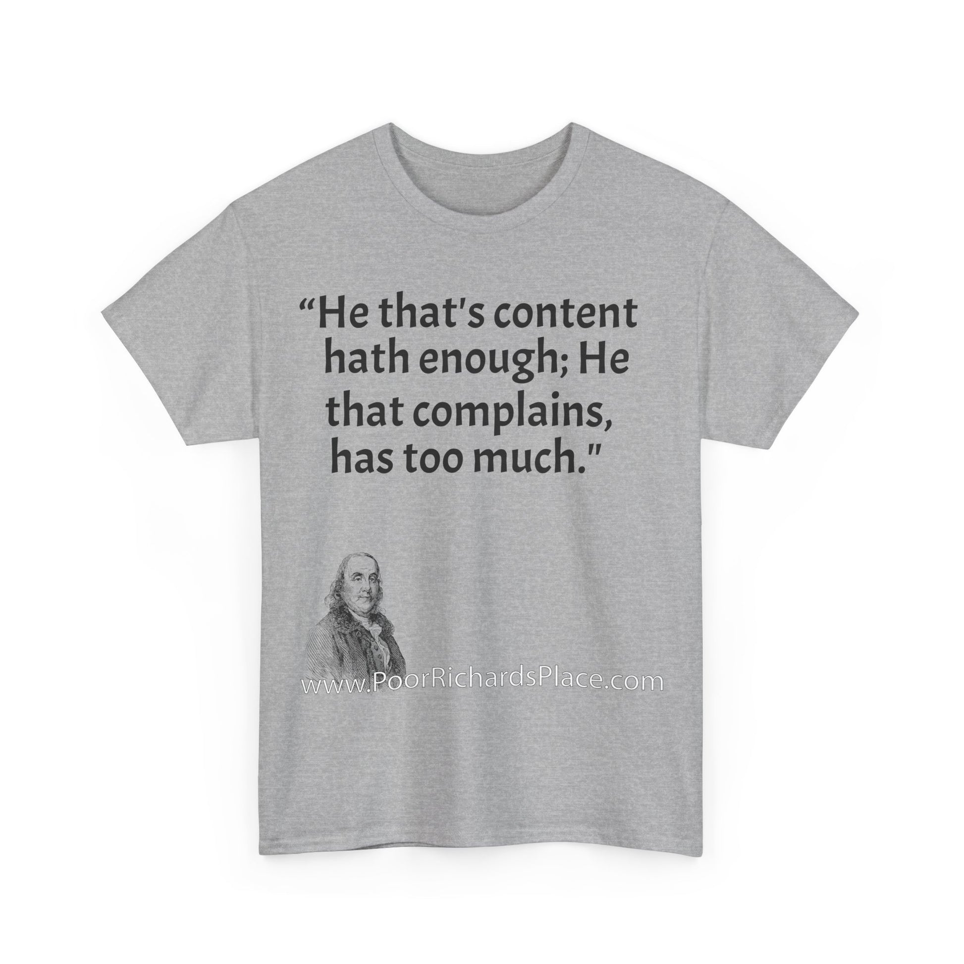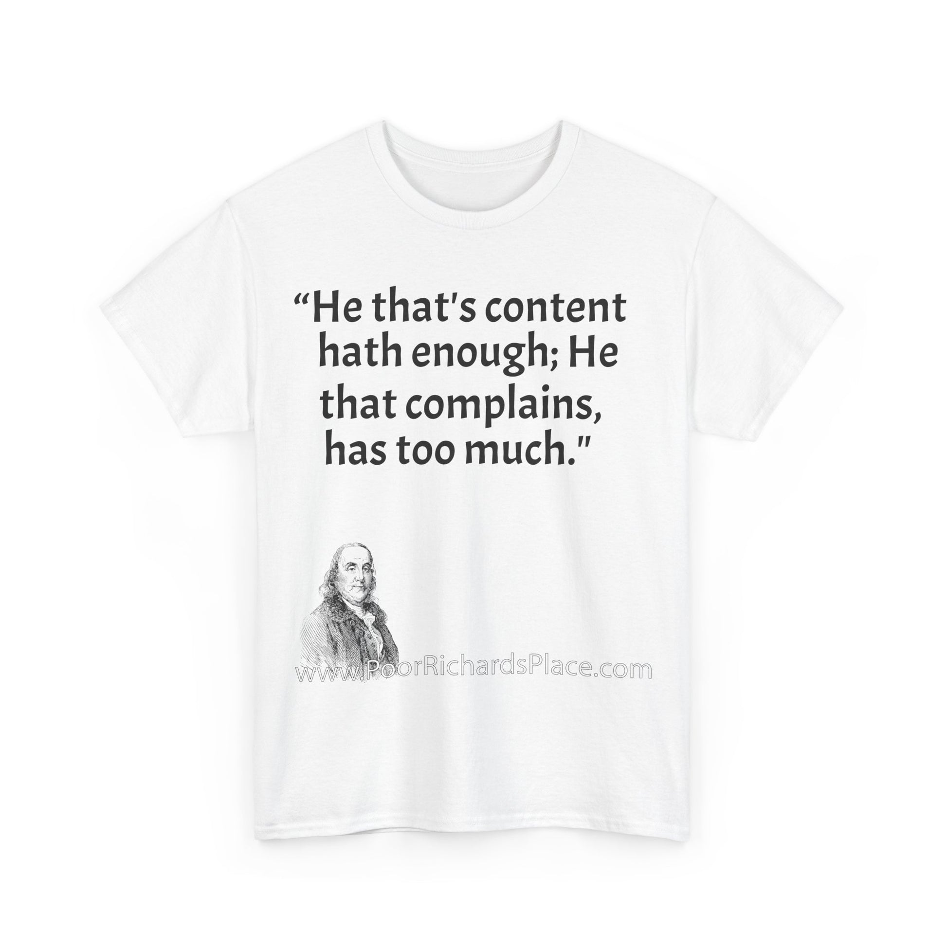 Unisex T-Shirt - Poor Richard Says He that's content, hath enough; He that complains, has too much
