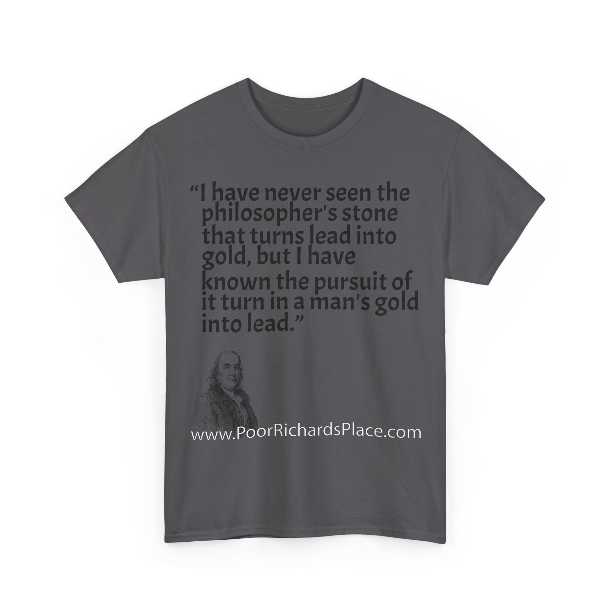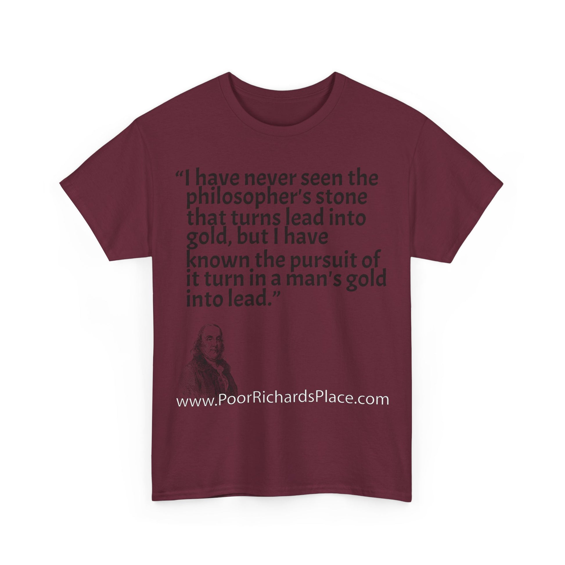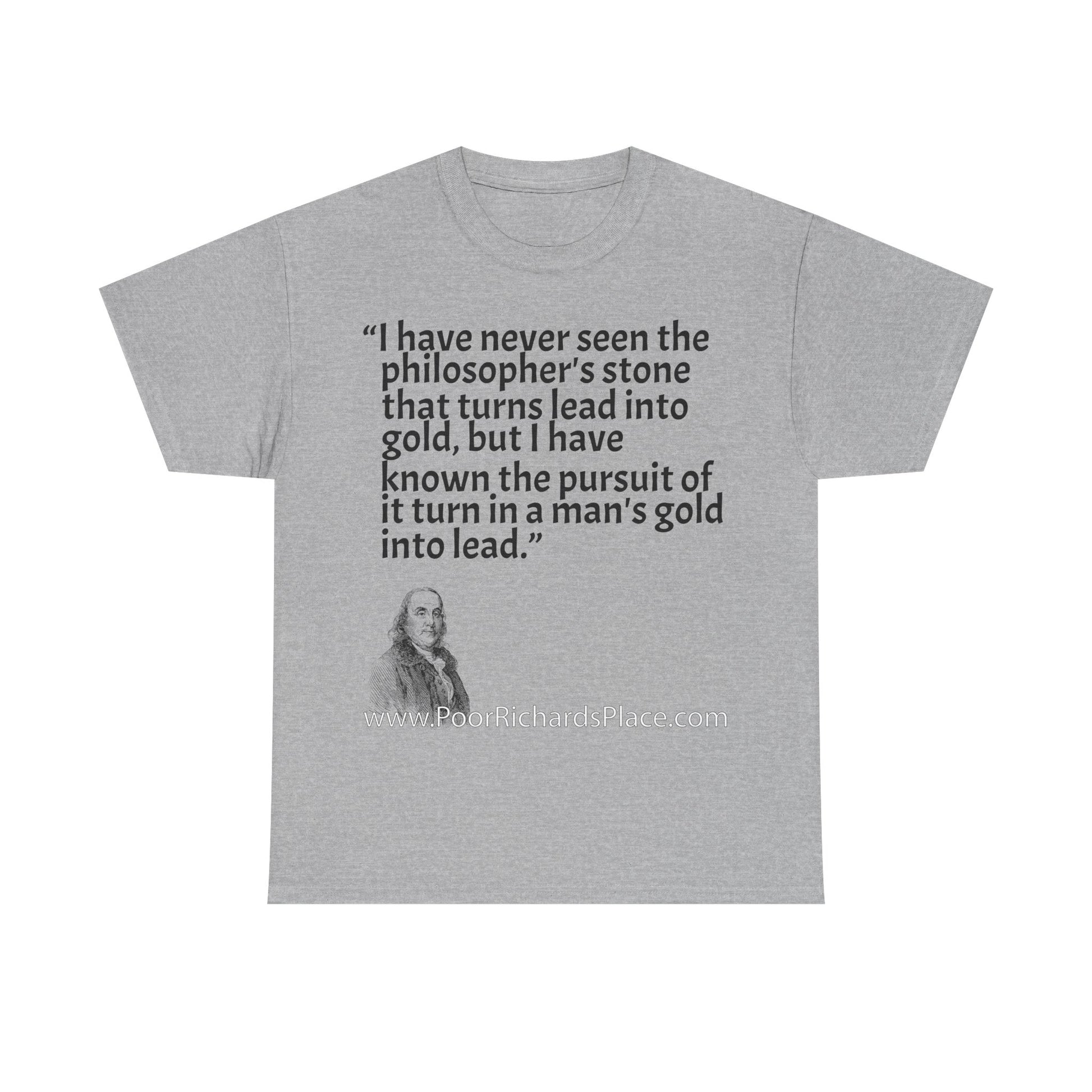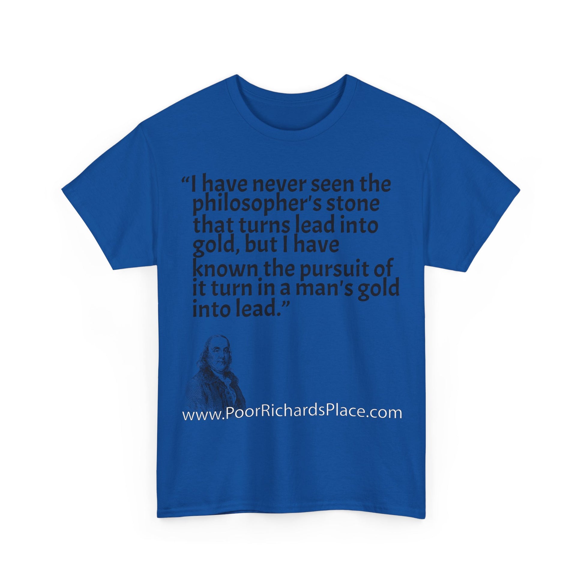 Unisex T-Shirt - Poor Richard Says I have never seen the philosopher's stone that turns lead into gold, but I have known the pursuit of it turn a man's gold into lead