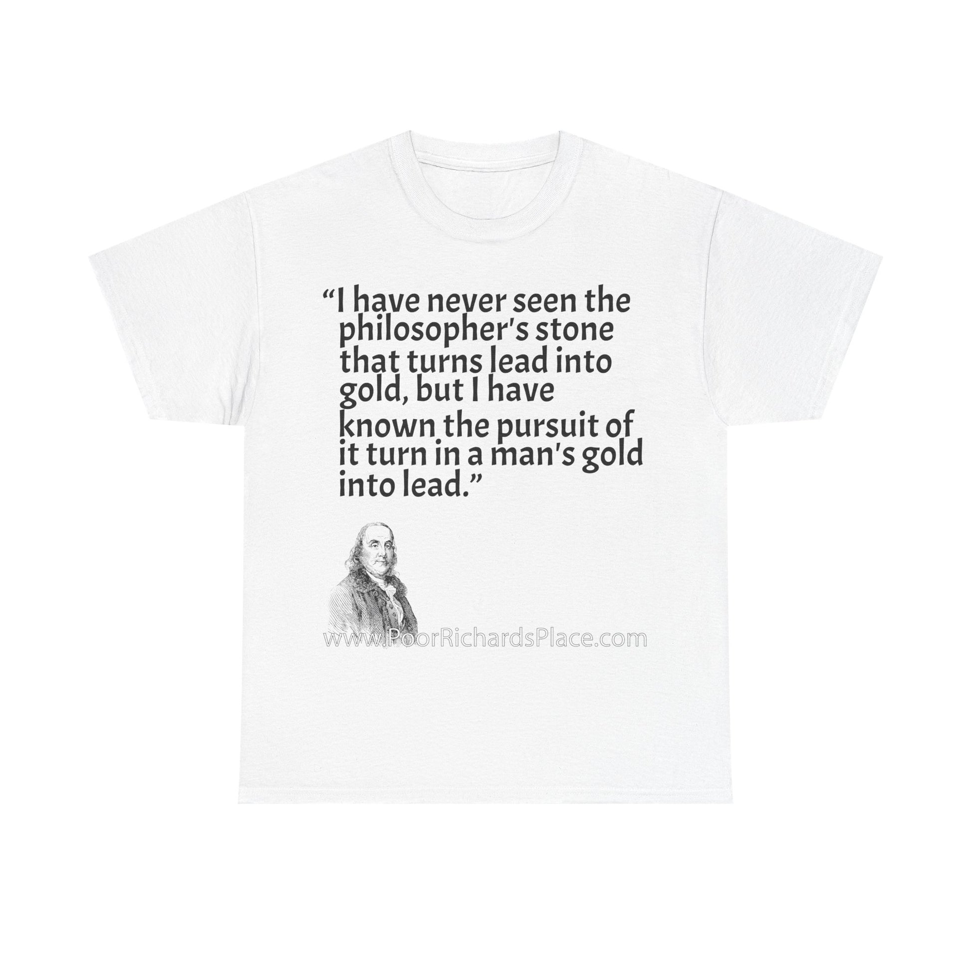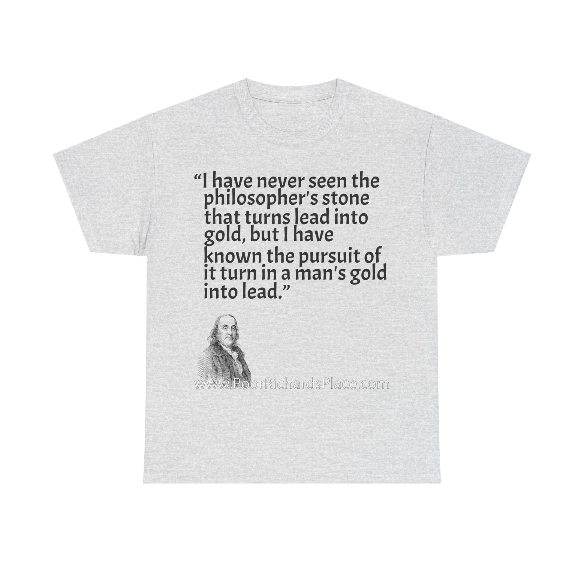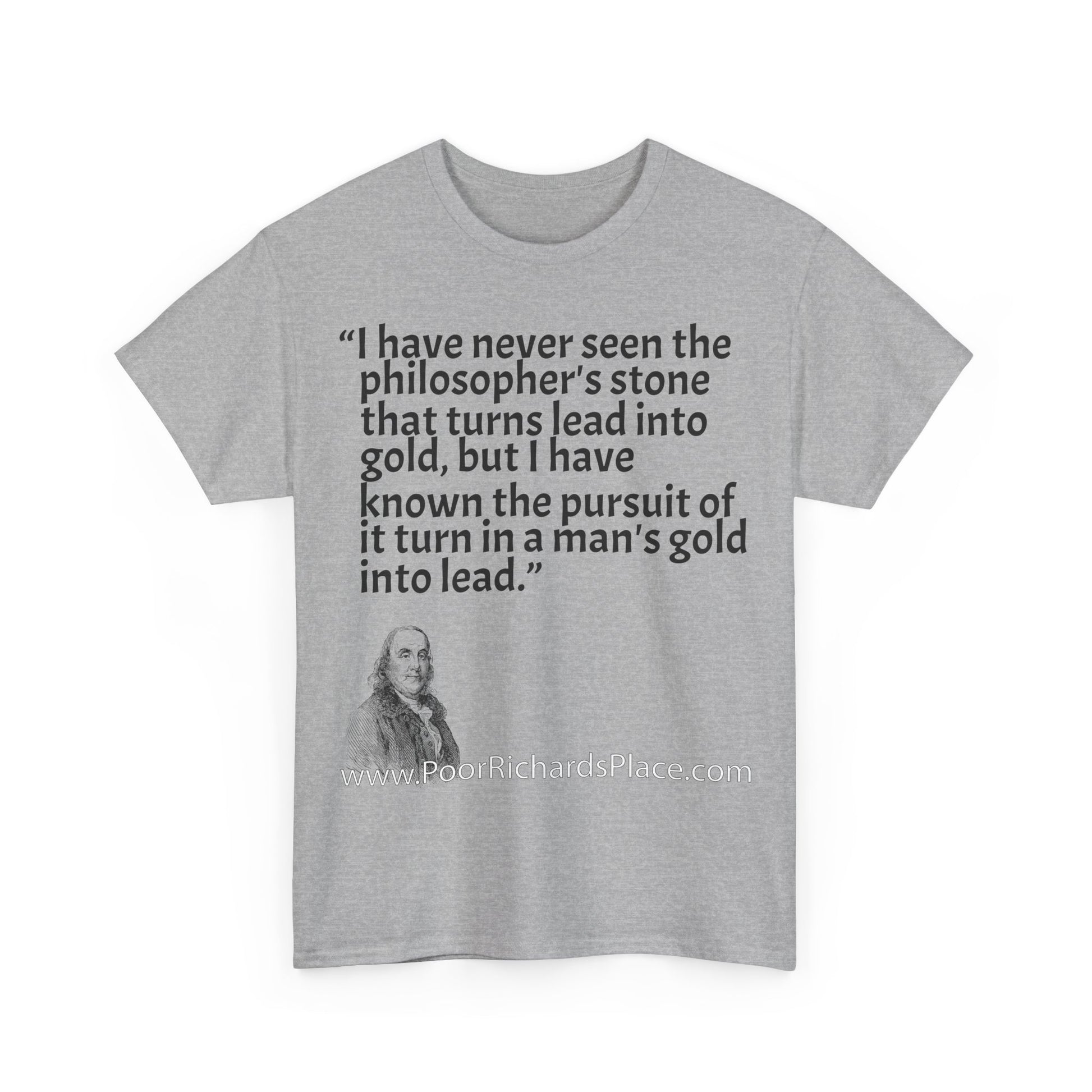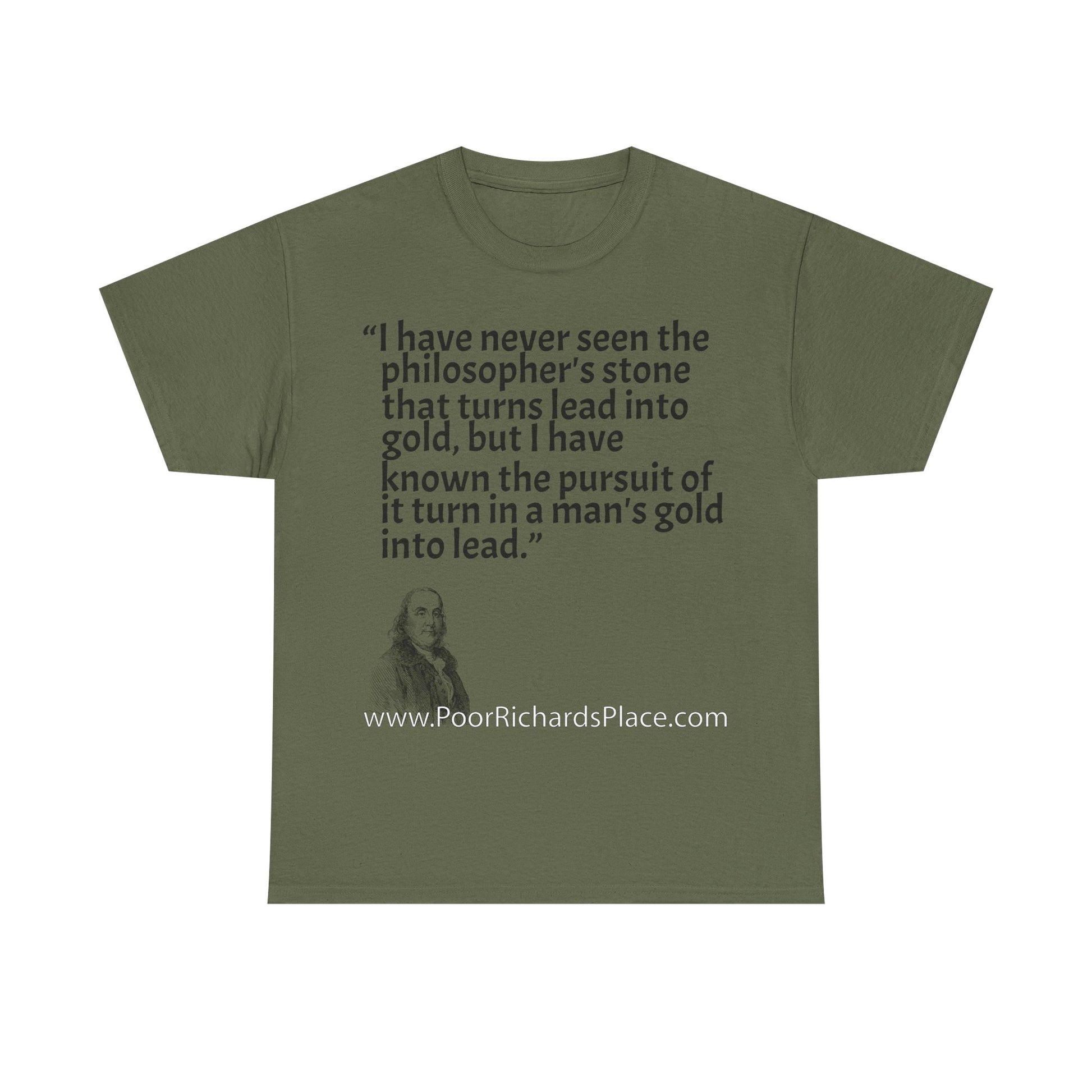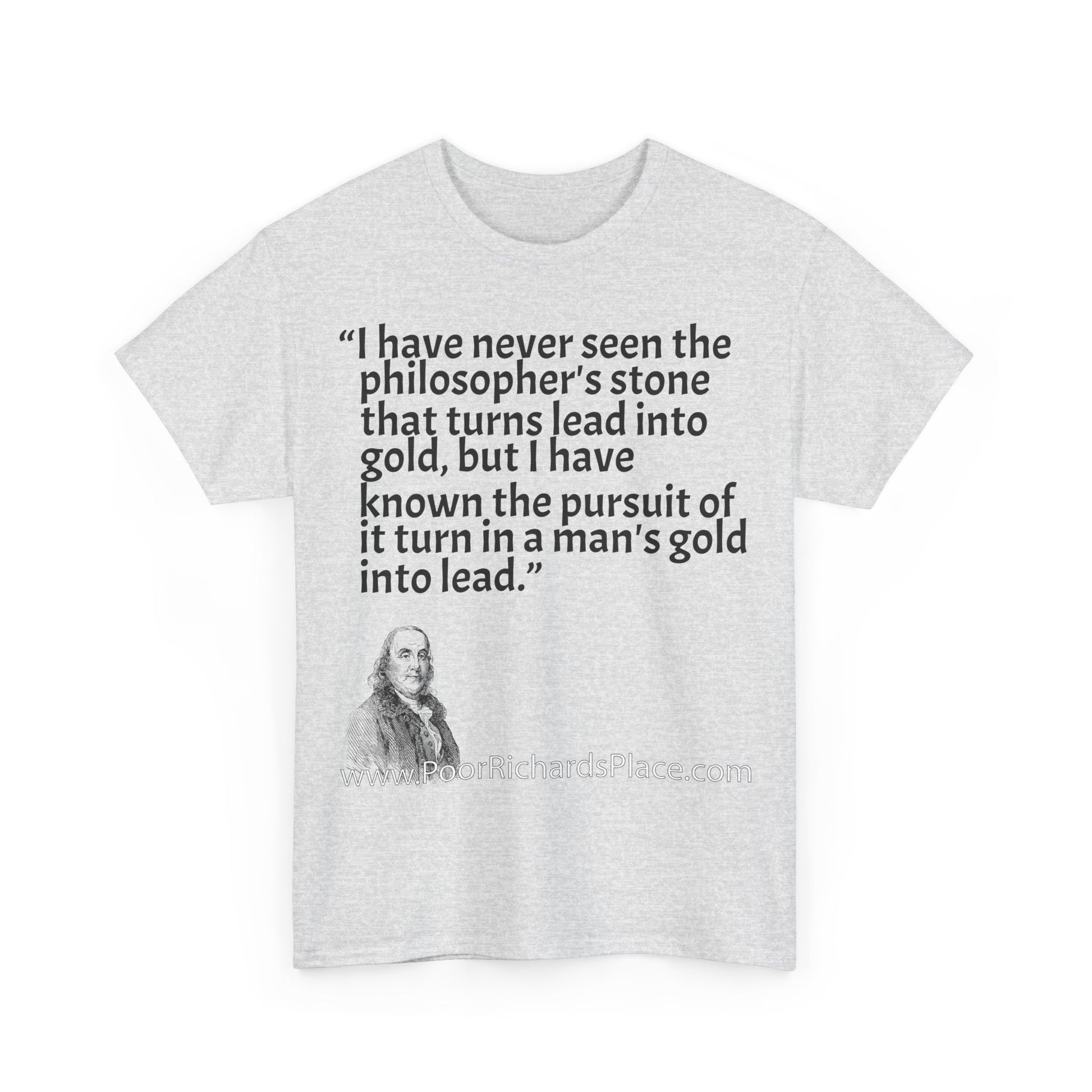 Unisex T-Shirt - Poor Richard Says I have never seen the philosopher's stone that turns lead into gold, but I have known the pursuit of it turn a man's gold into lead