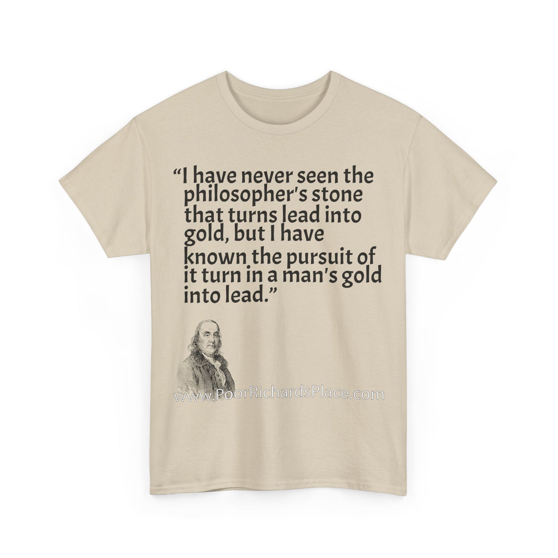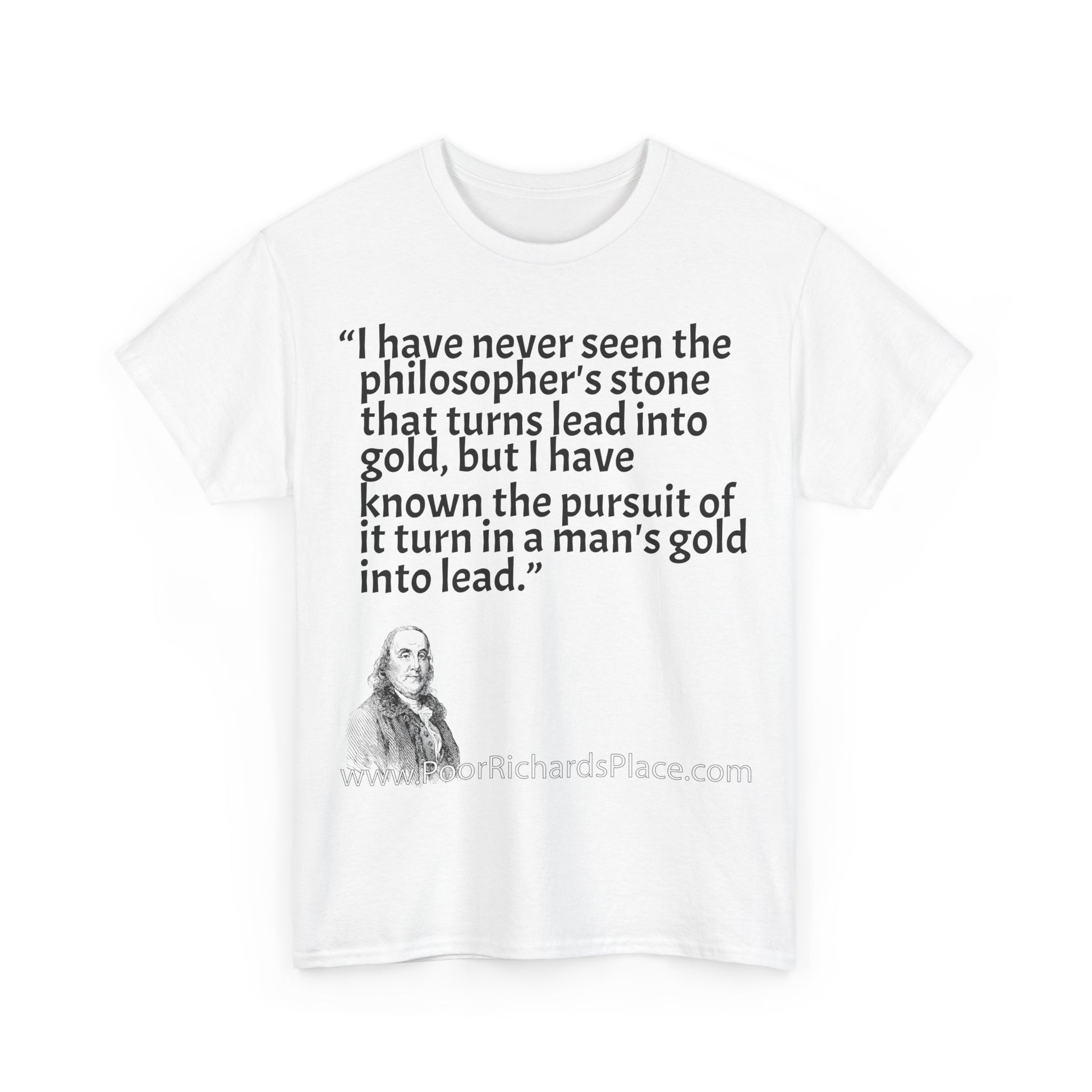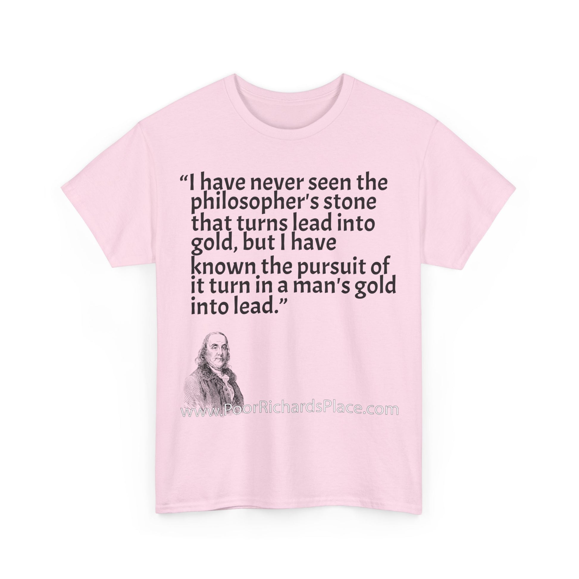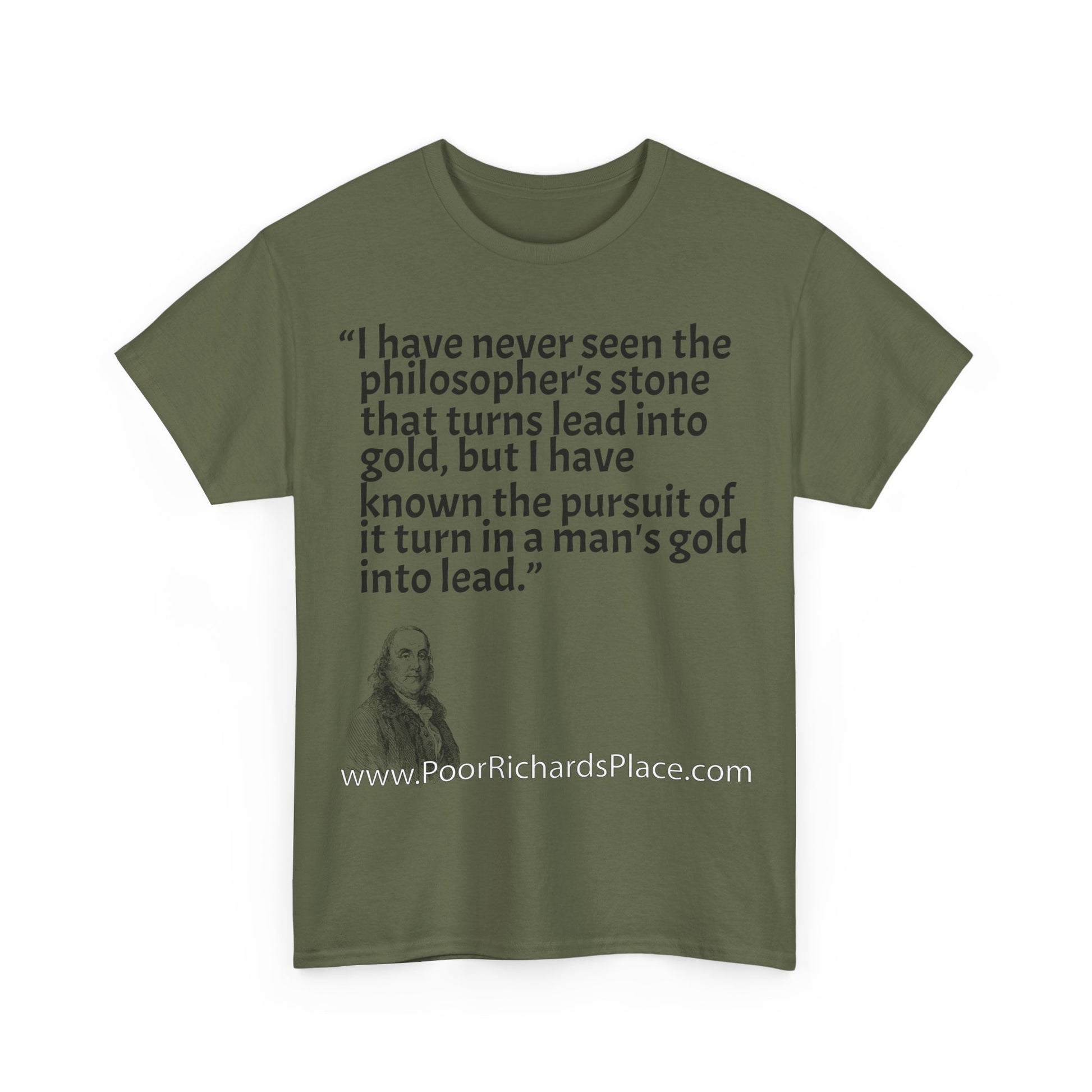 Unisex T-Shirt - Poor Richard Says I have never seen the philosopher's stone that turns lead into gold, but I have known the pursuit of it turn a man's gold into lead