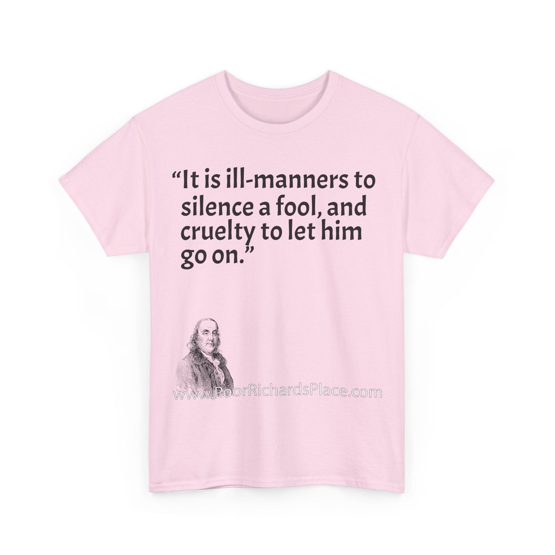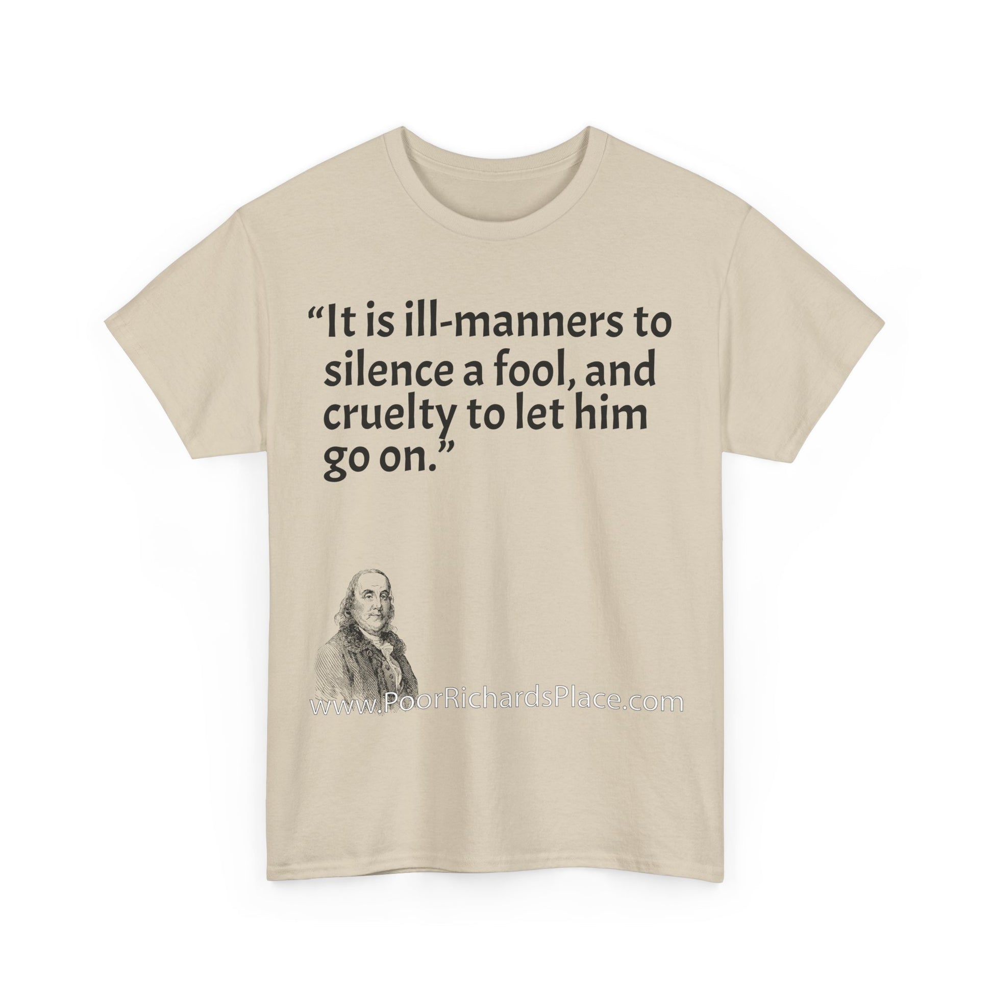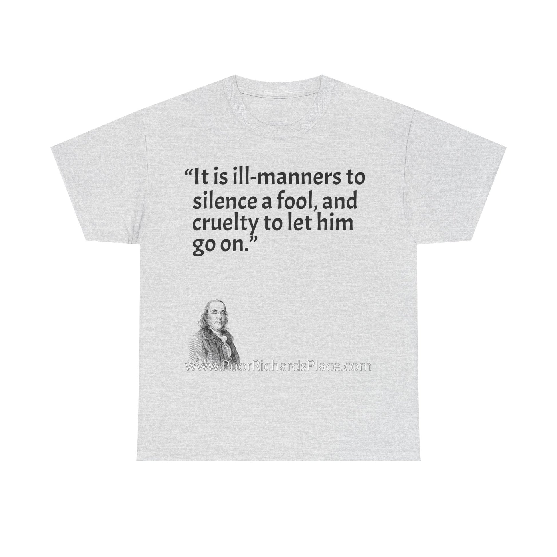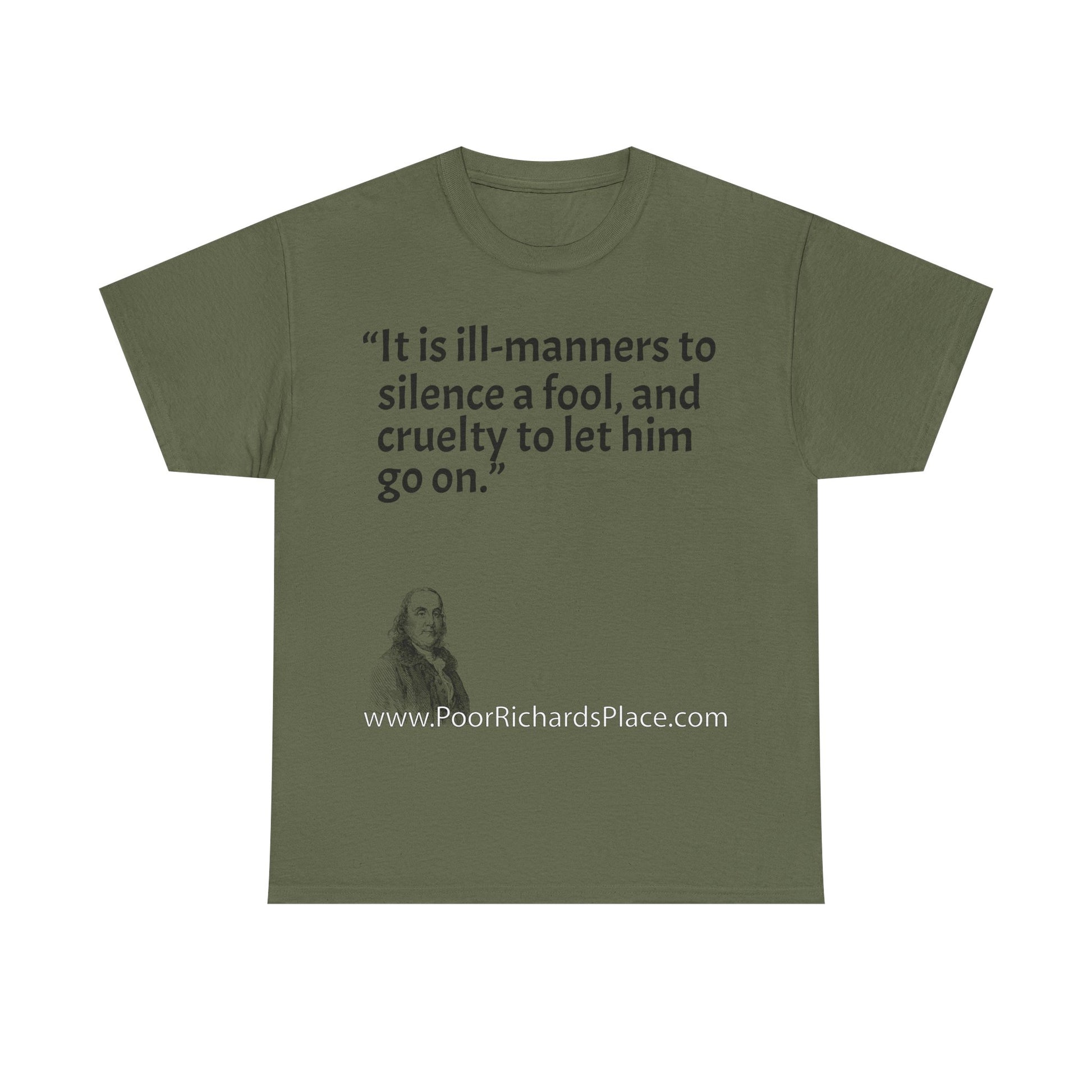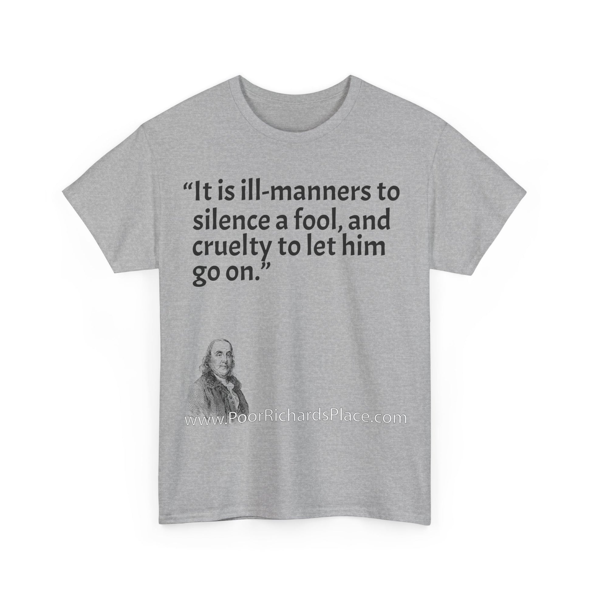 Unisex T-Shirt - Poor Richard Says It is ill-manners to silence a fool, and cruelty to let him go on
