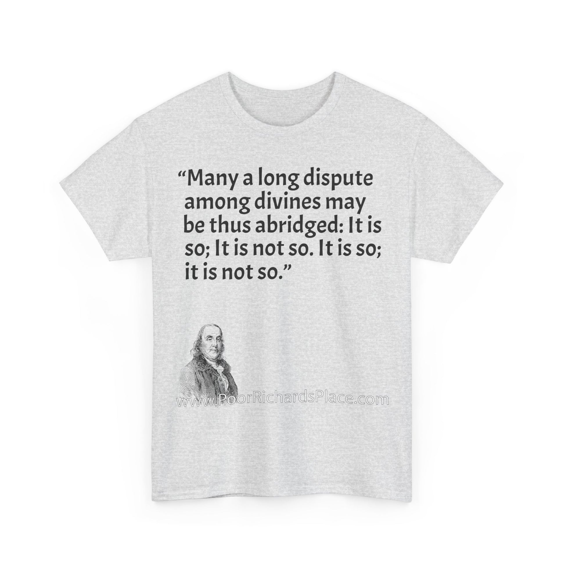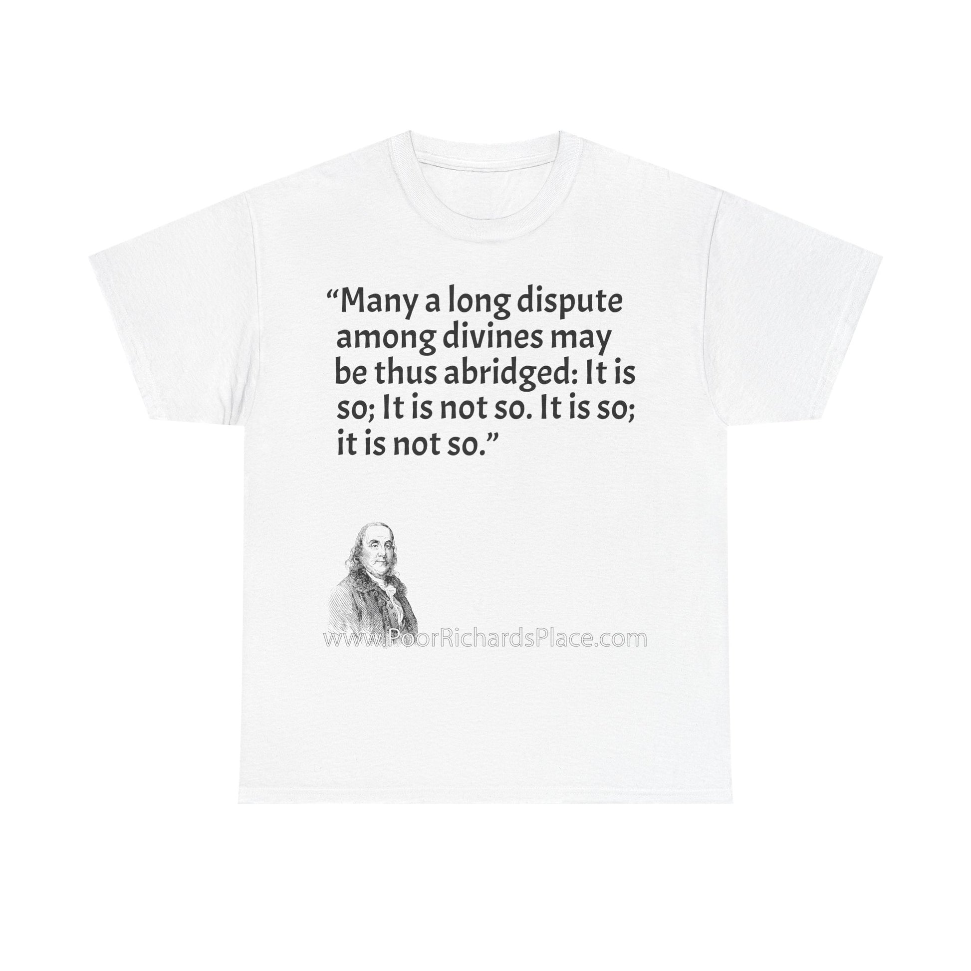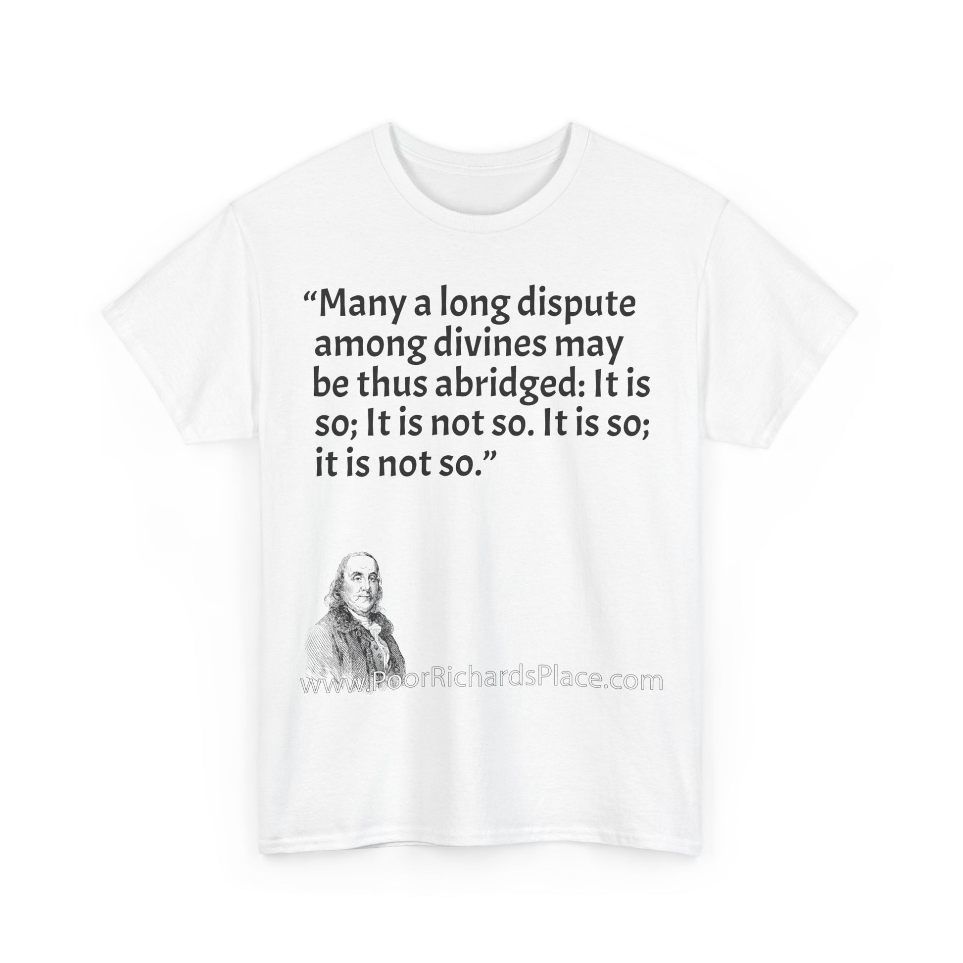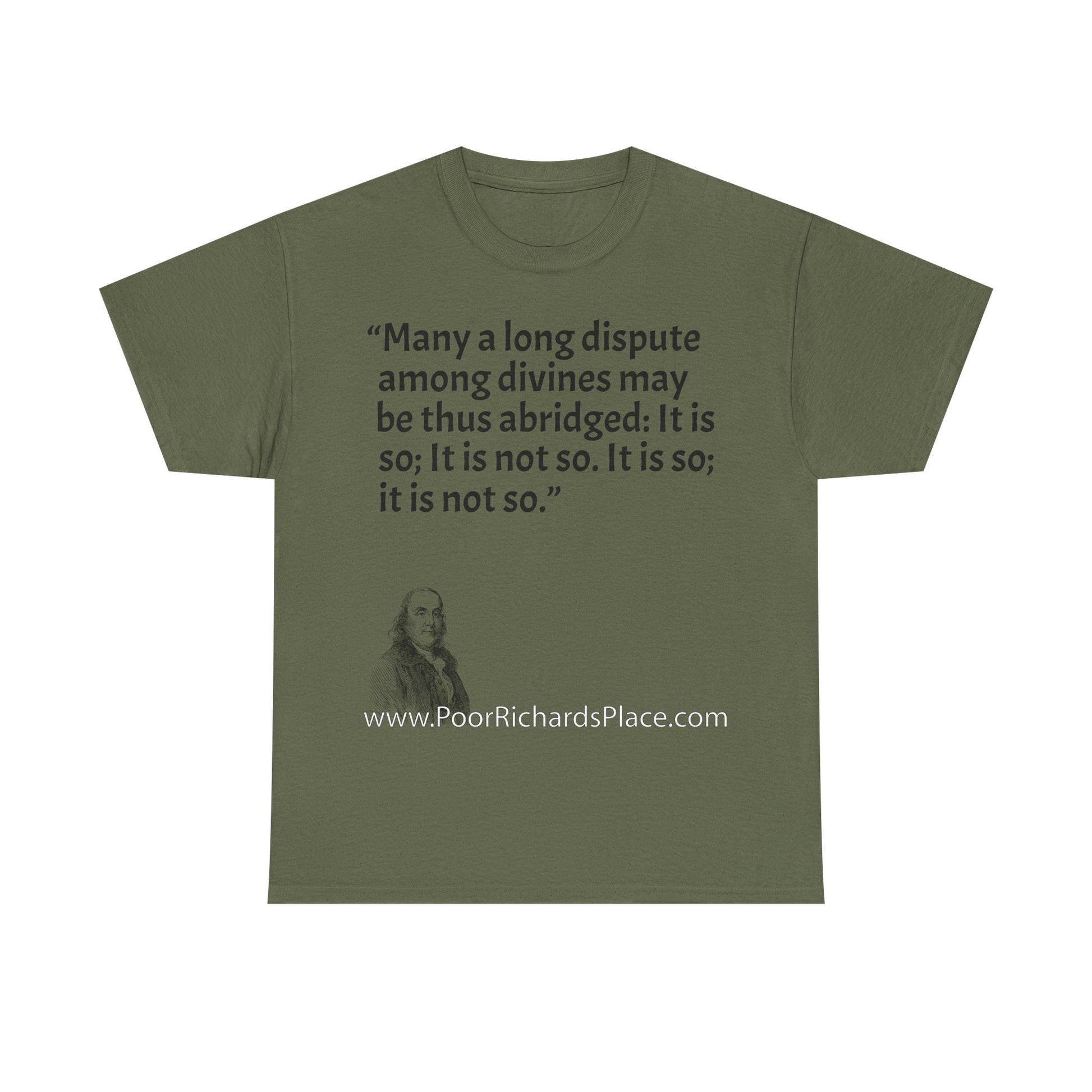 Unisex T-Shirt - Poor Richard Says Many a long dispute among divines may be thus abridged: It is so; It is not so. It is so; it is not so