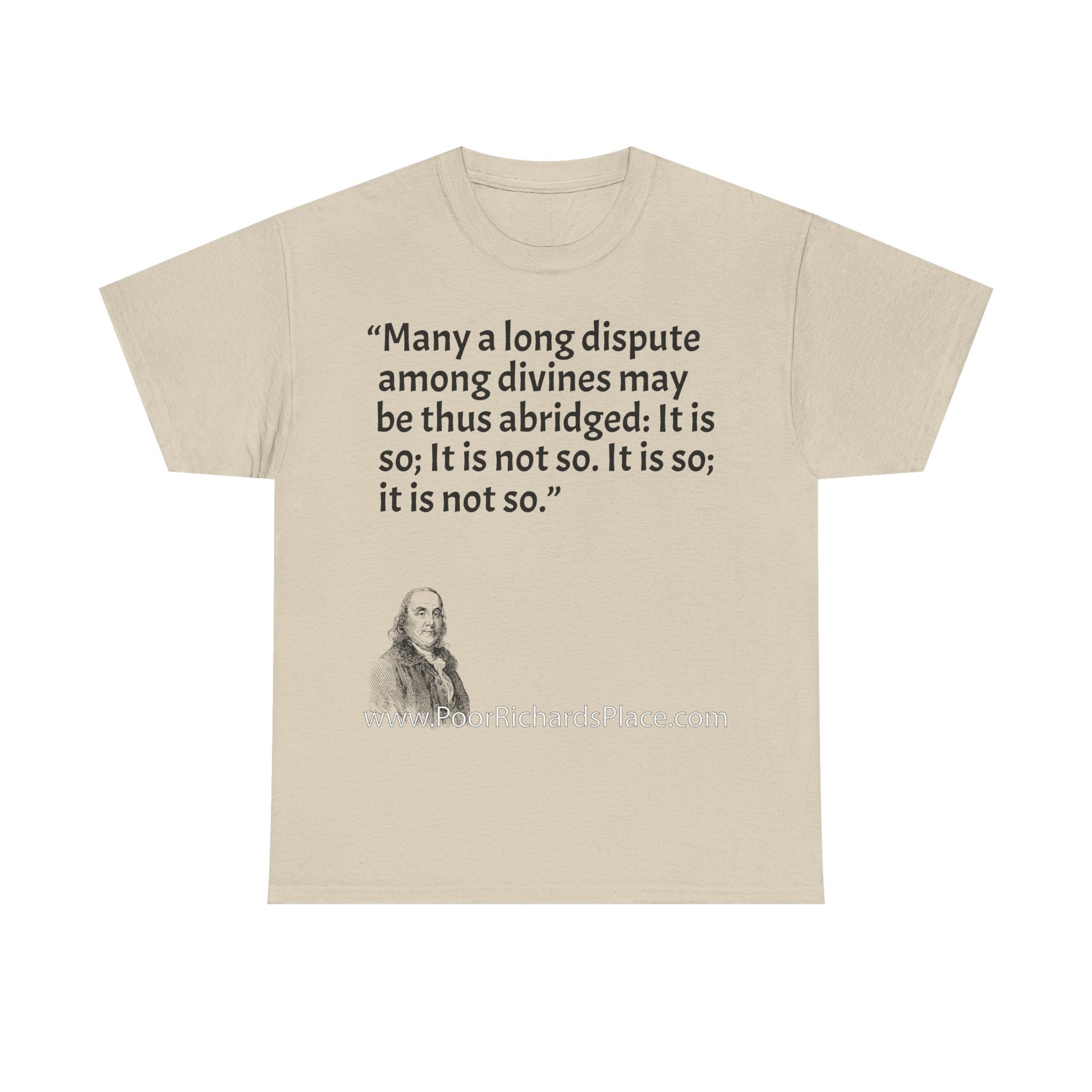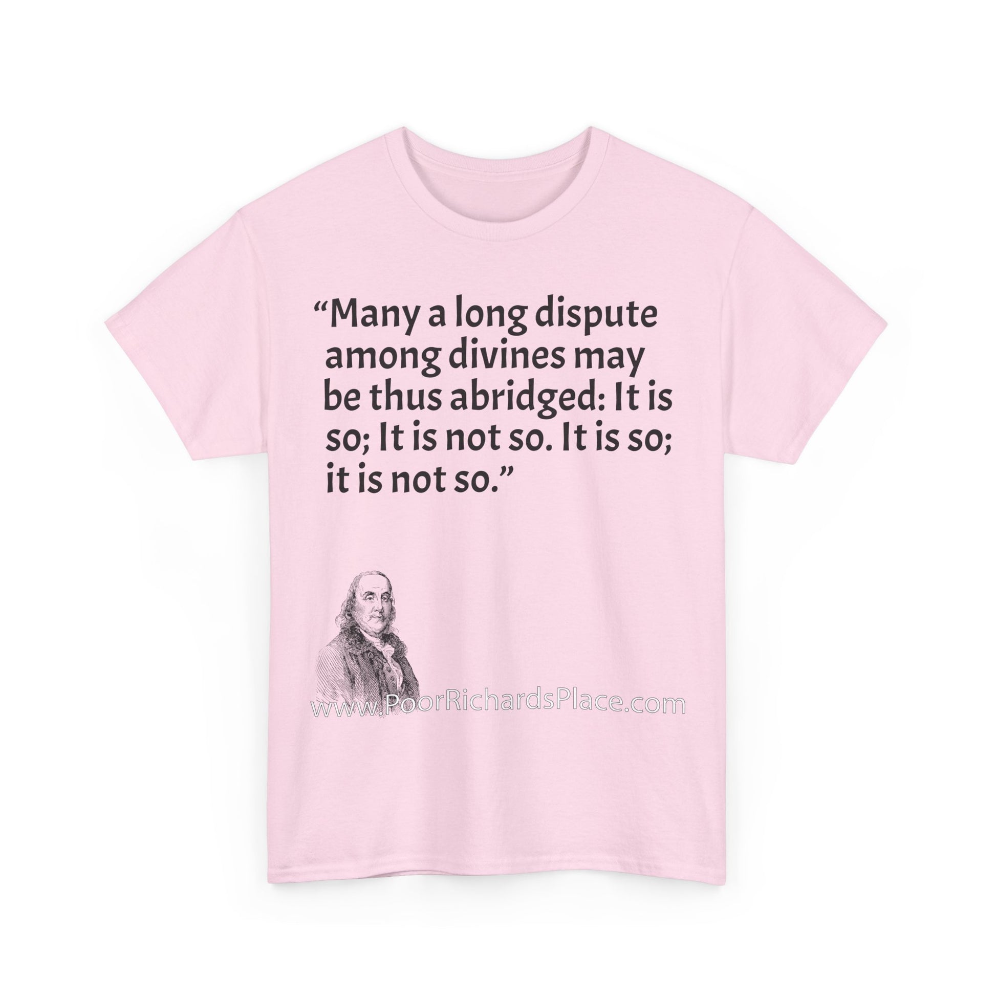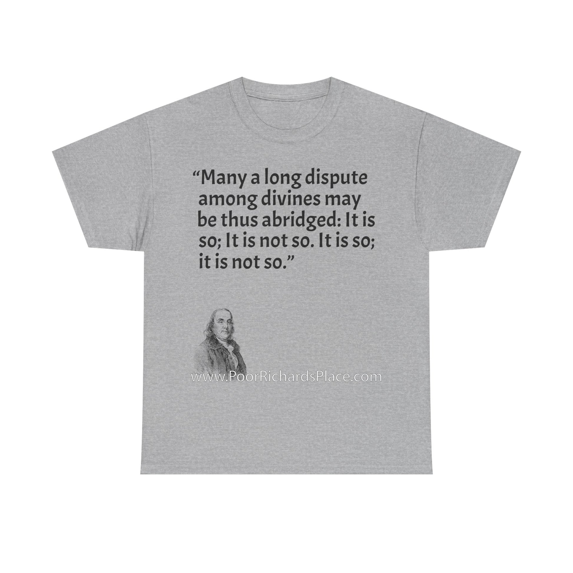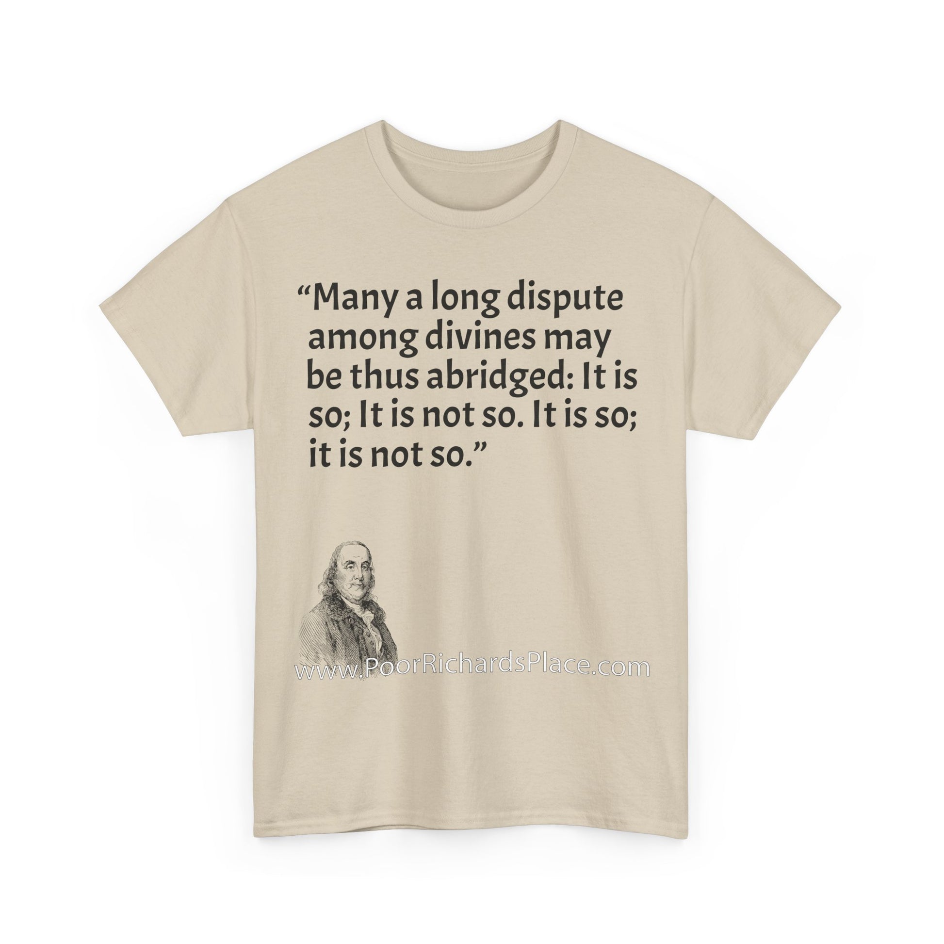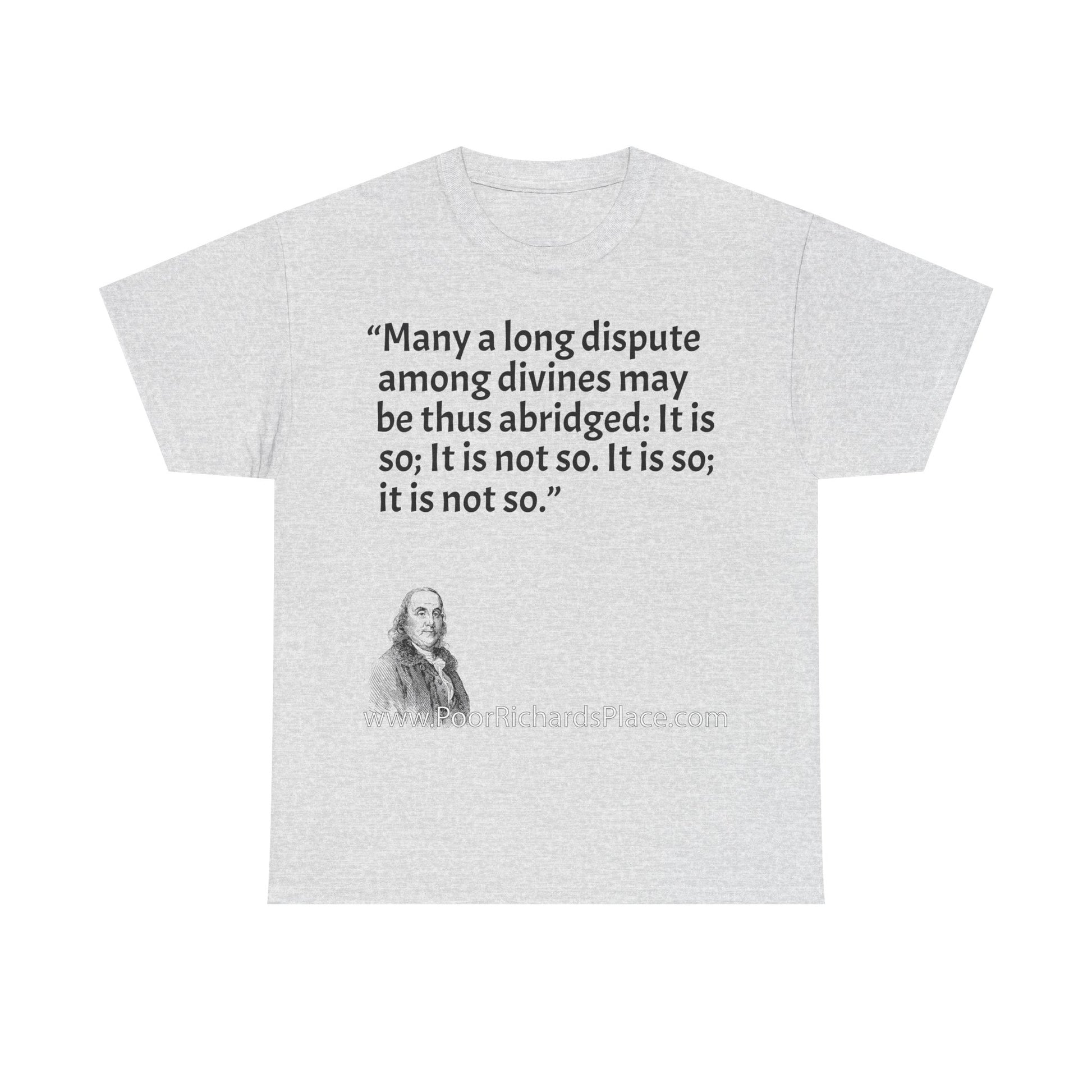 Unisex T-Shirt - Poor Richard Says Many a long dispute among divines may be thus abridged: It is so; It is not so. It is so; it is not so