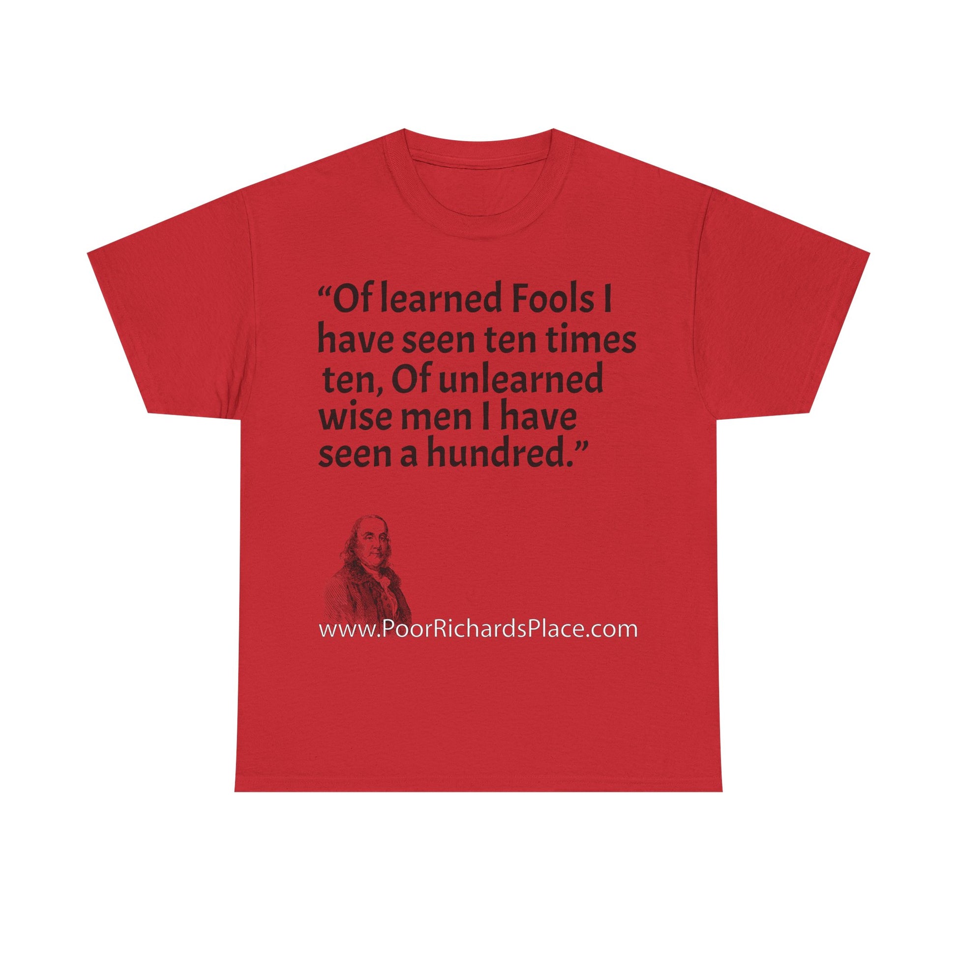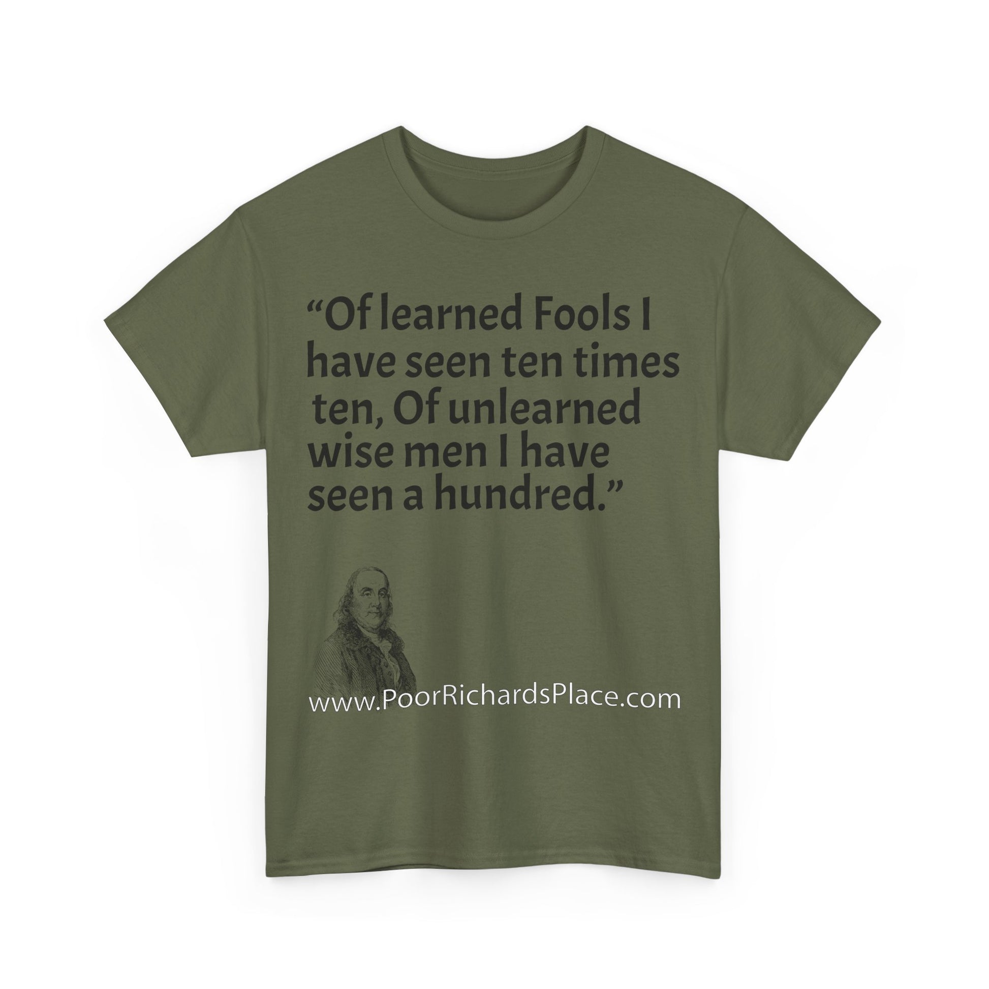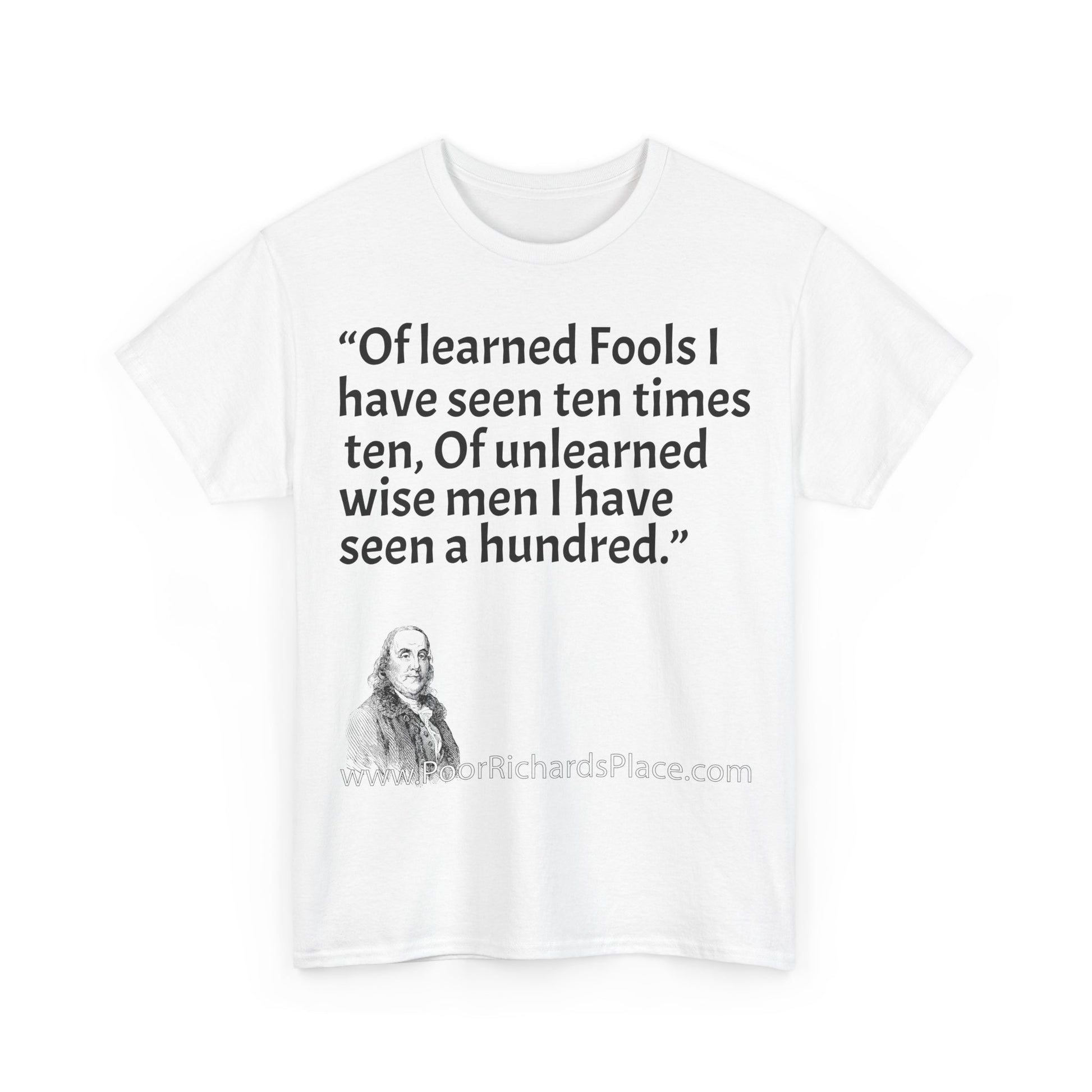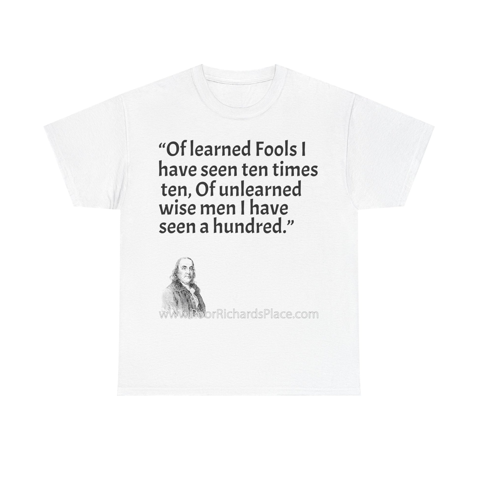 Unisex T-Shirt - Poor Richard Says Of learned Fools I have seen ten times ten, Of unlearned wise men I have seen a hundred