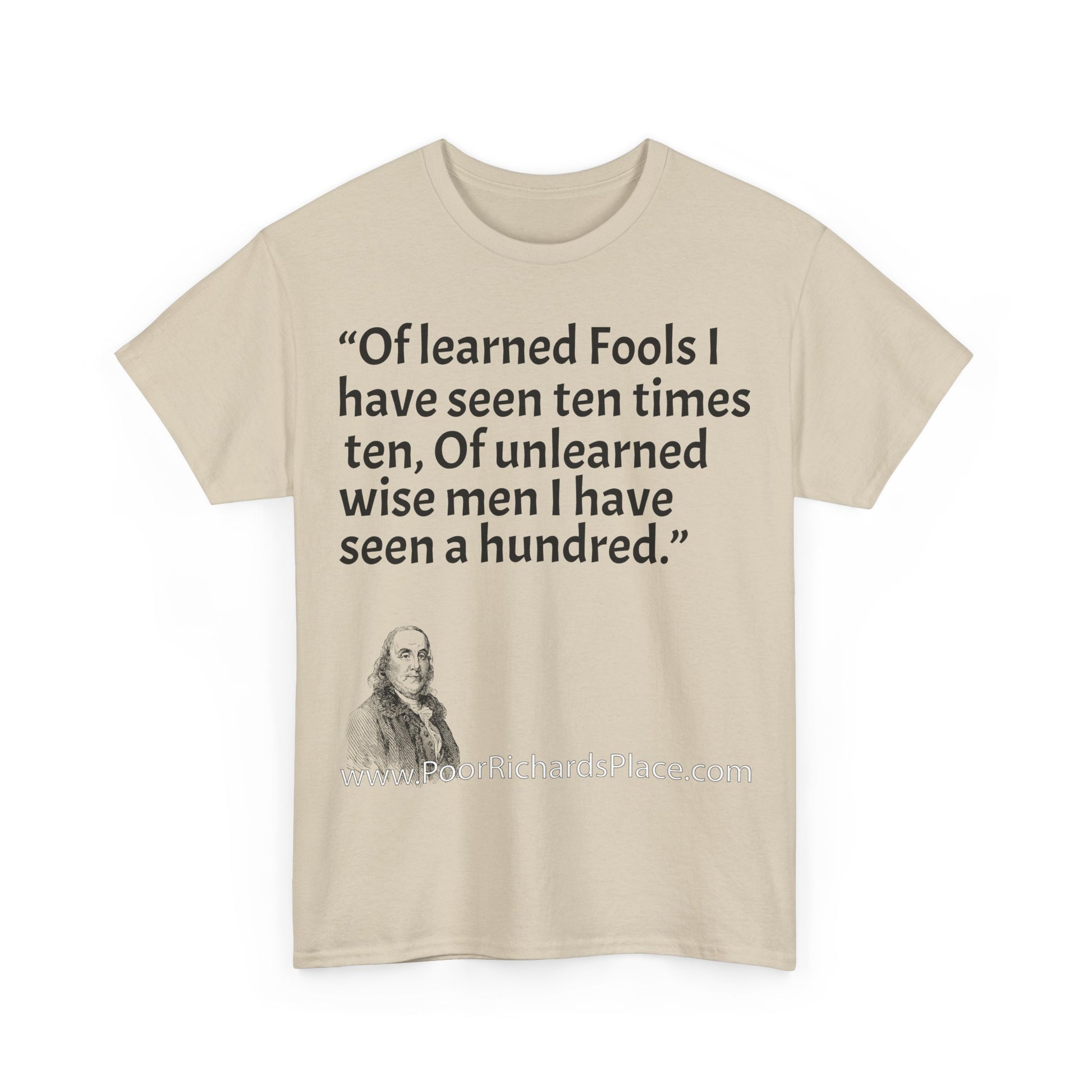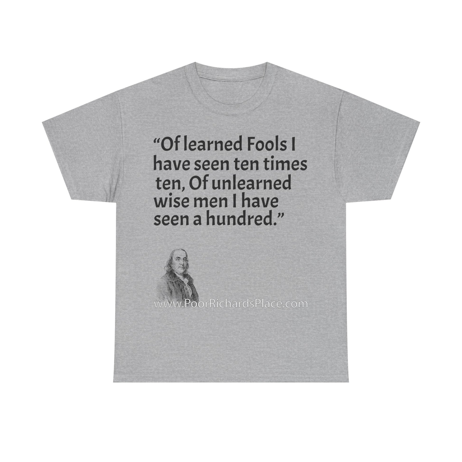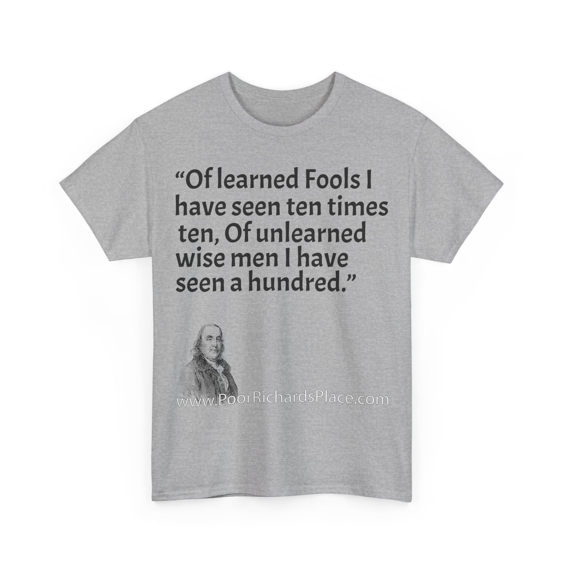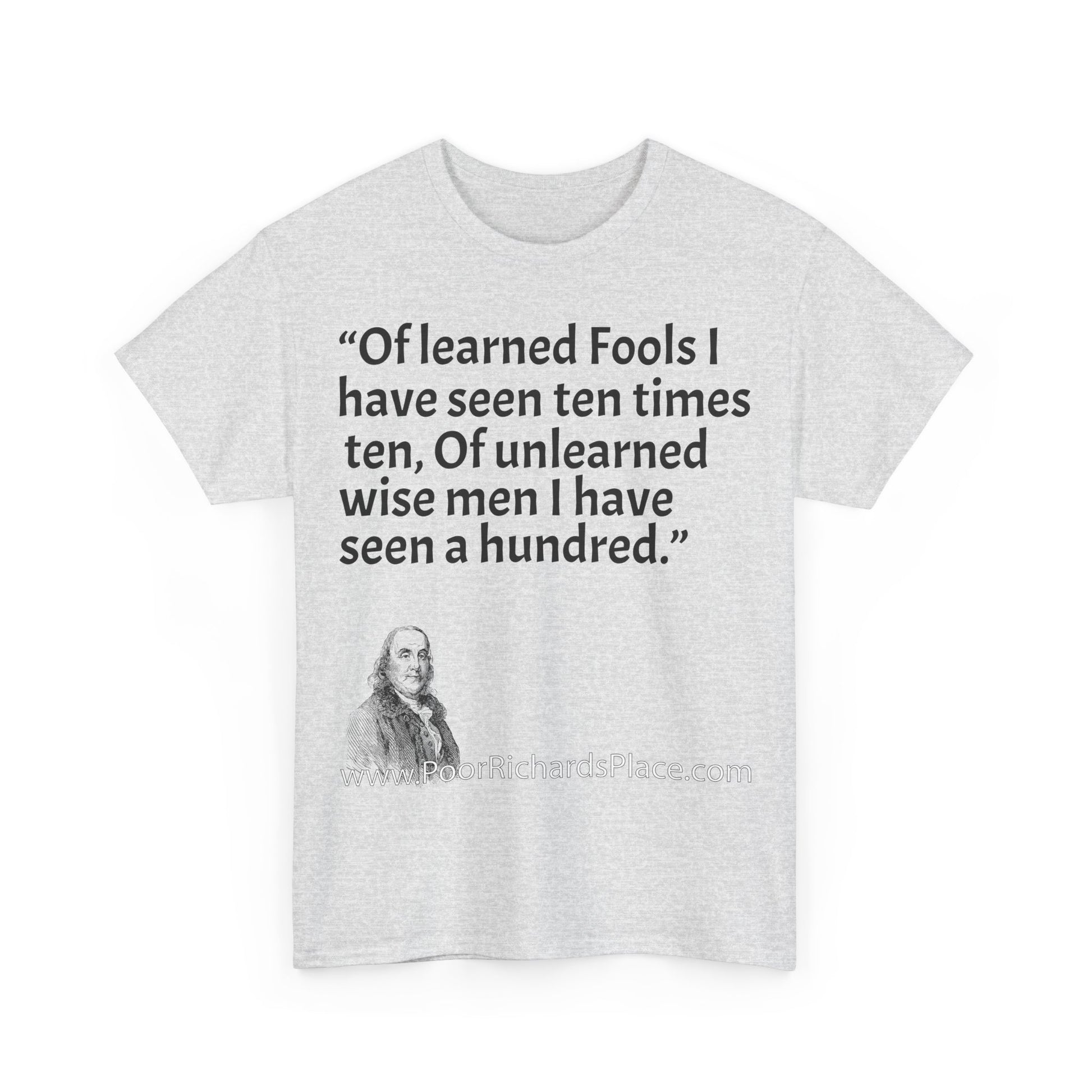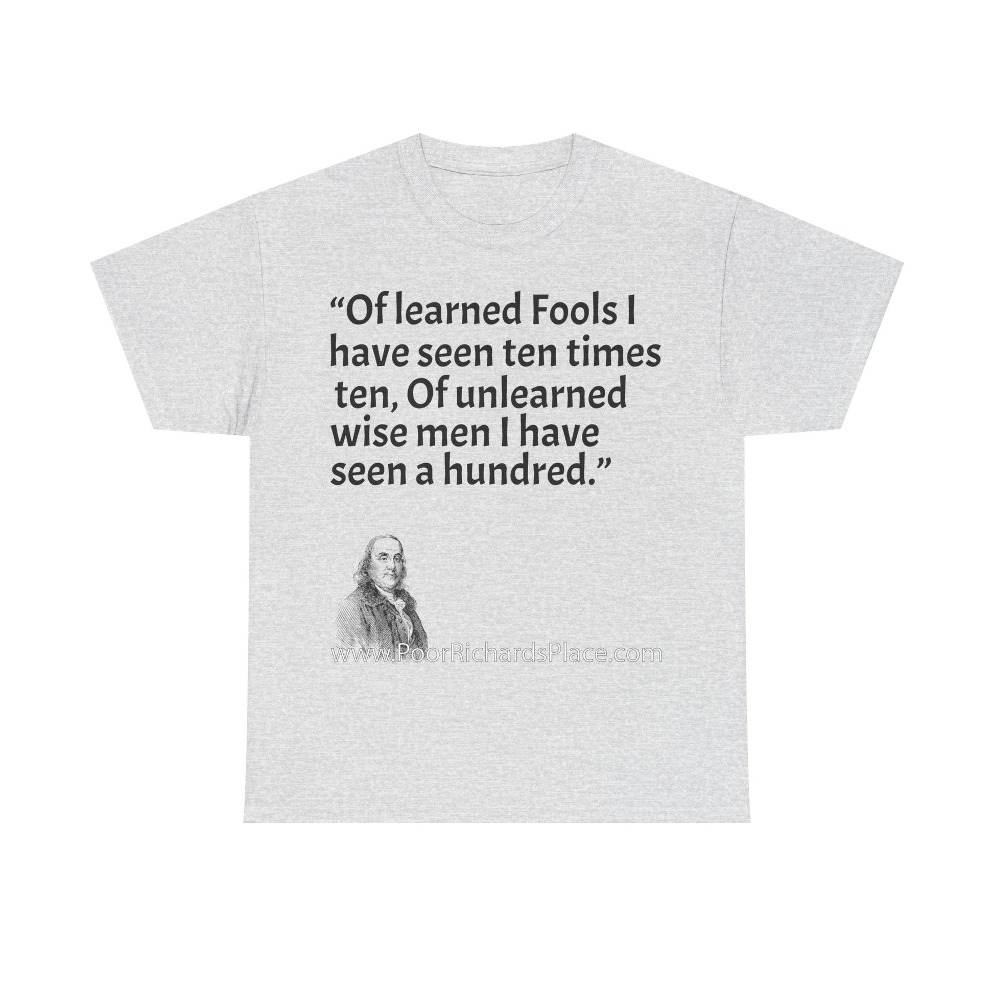 Unisex T-Shirt - Poor Richard Says Of learned Fools I have seen ten times ten, Of unlearned wise men I have seen a hundred
