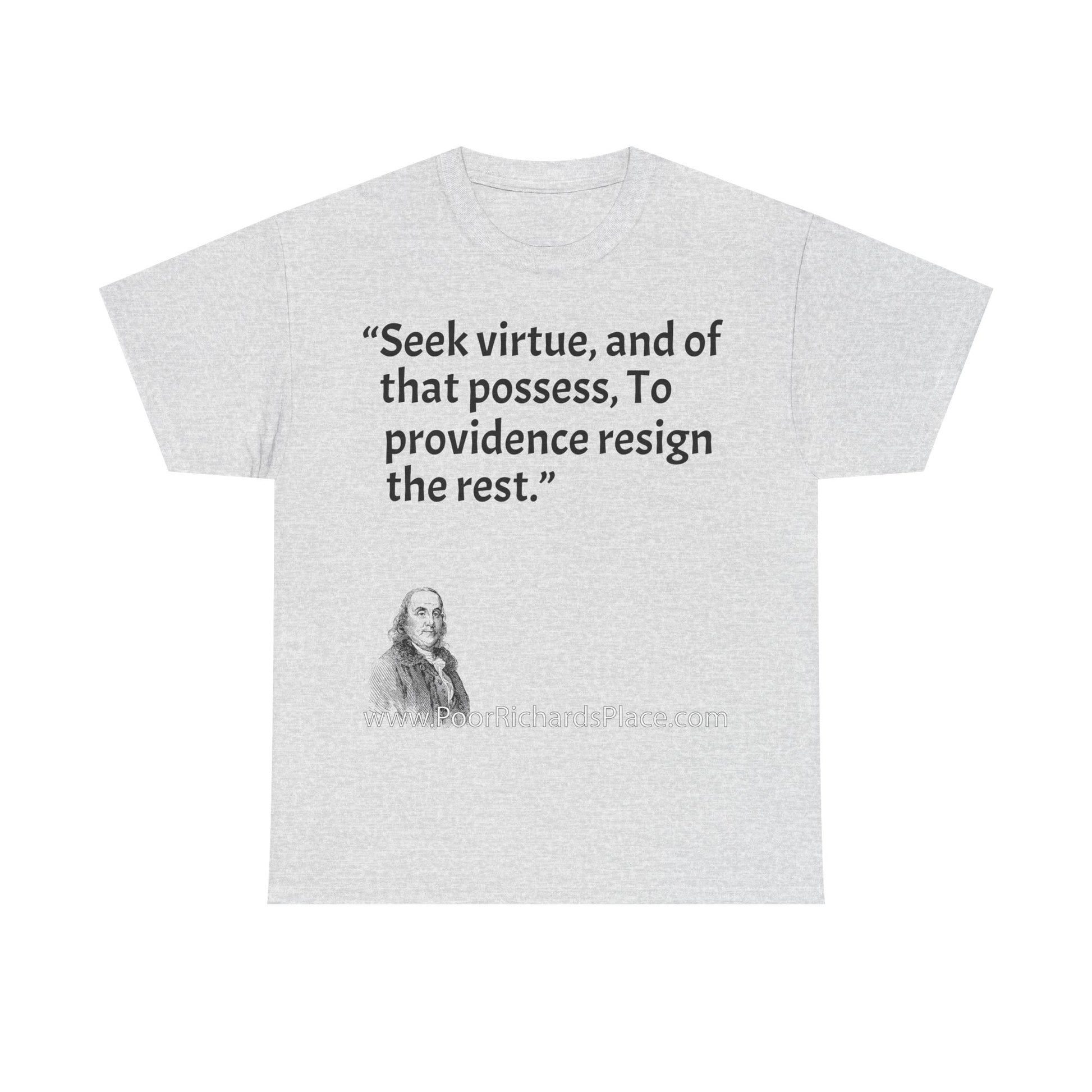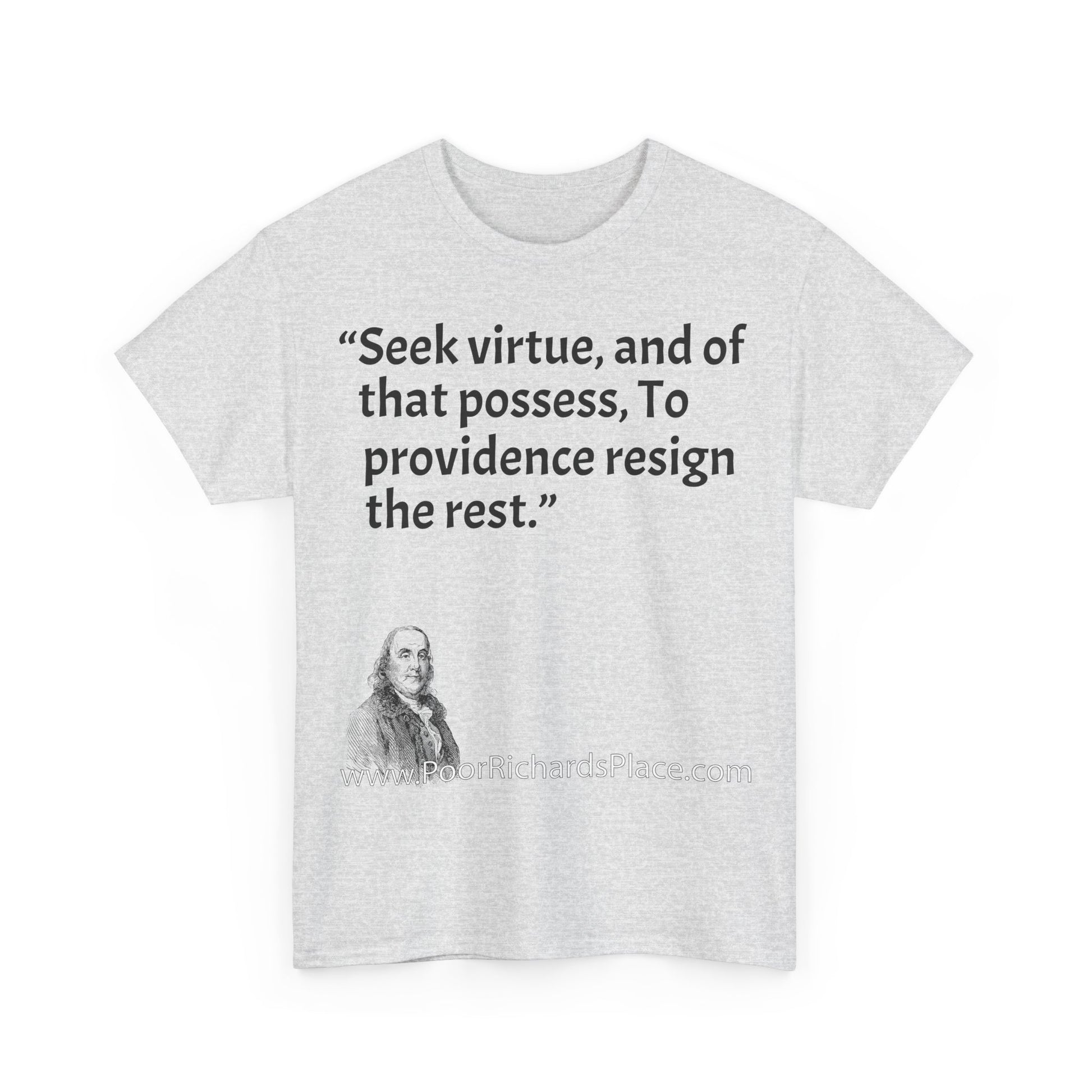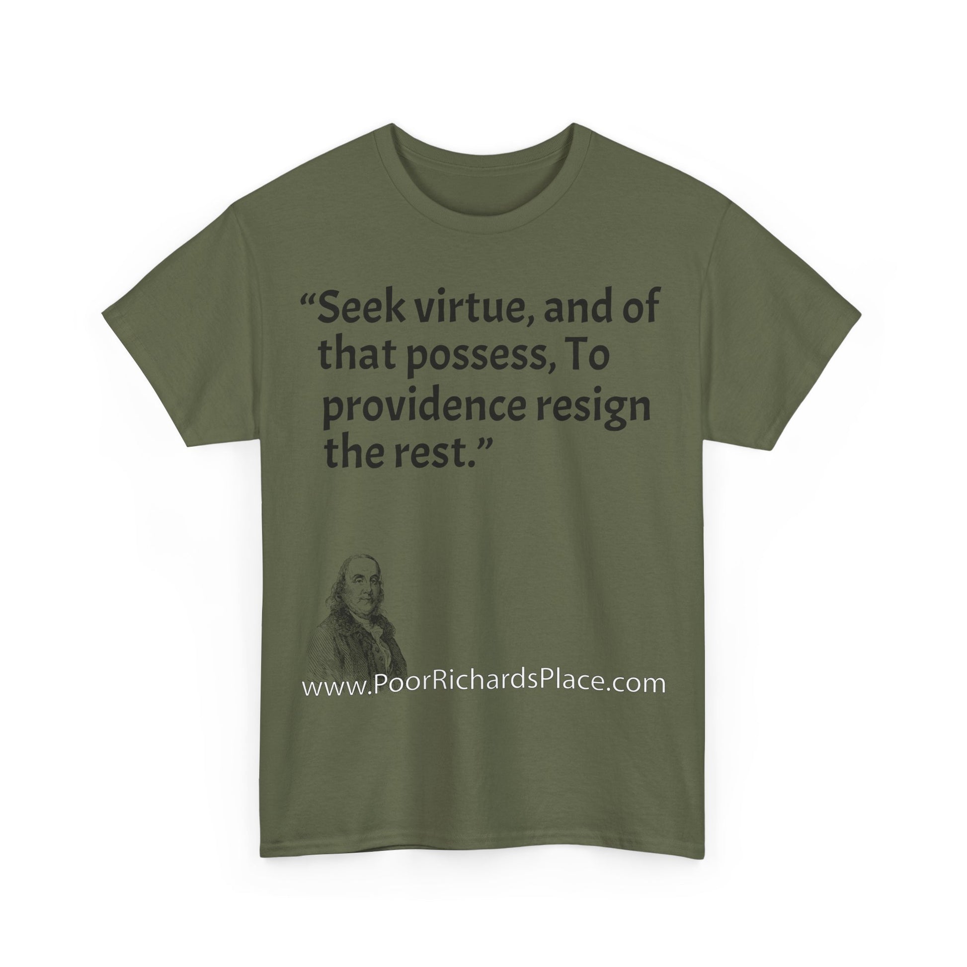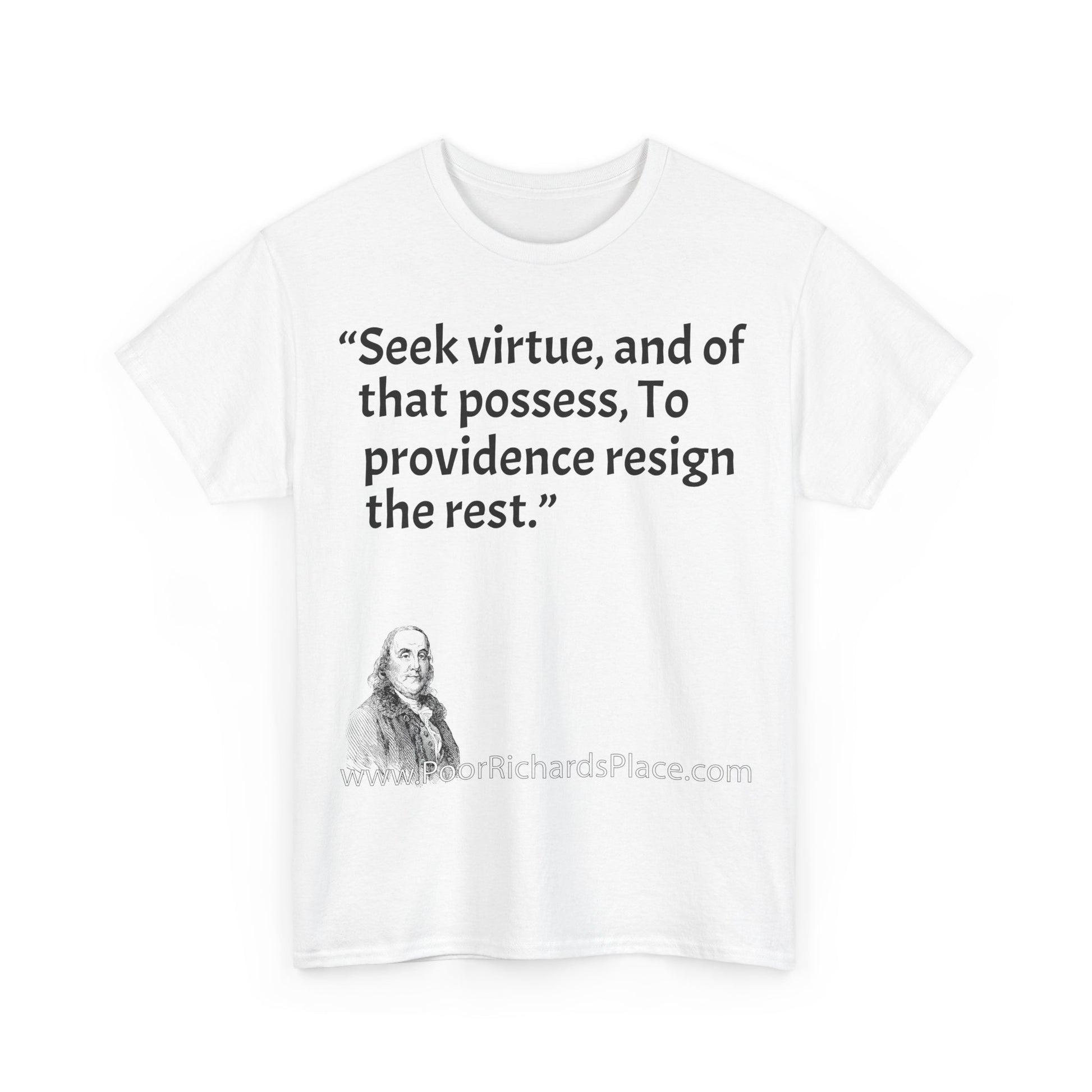 Unisex T-Shirt - Poor Richard Says Seek virtue, and of that possess, To providence resign the rest