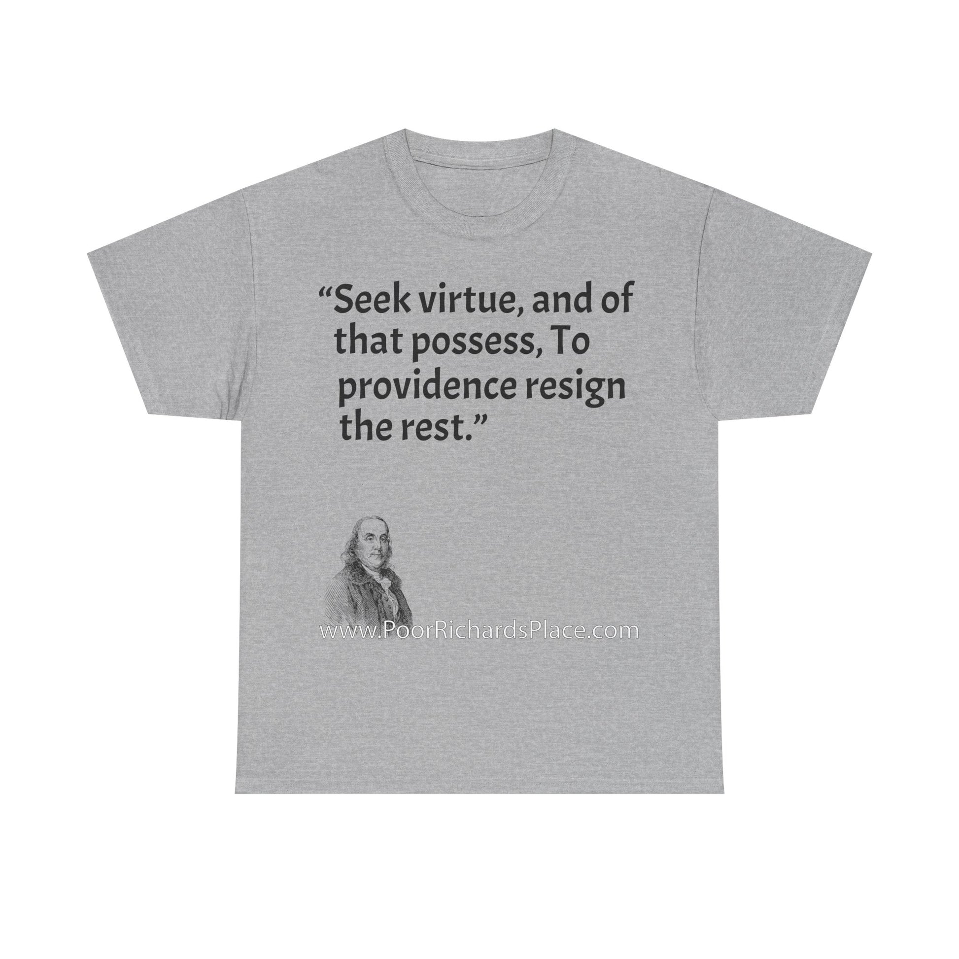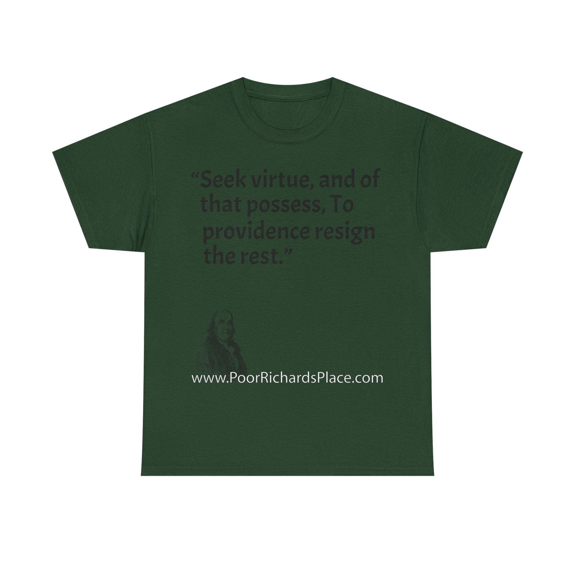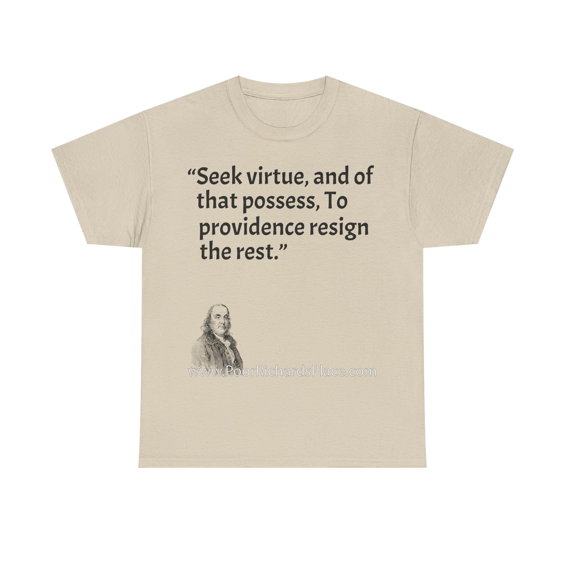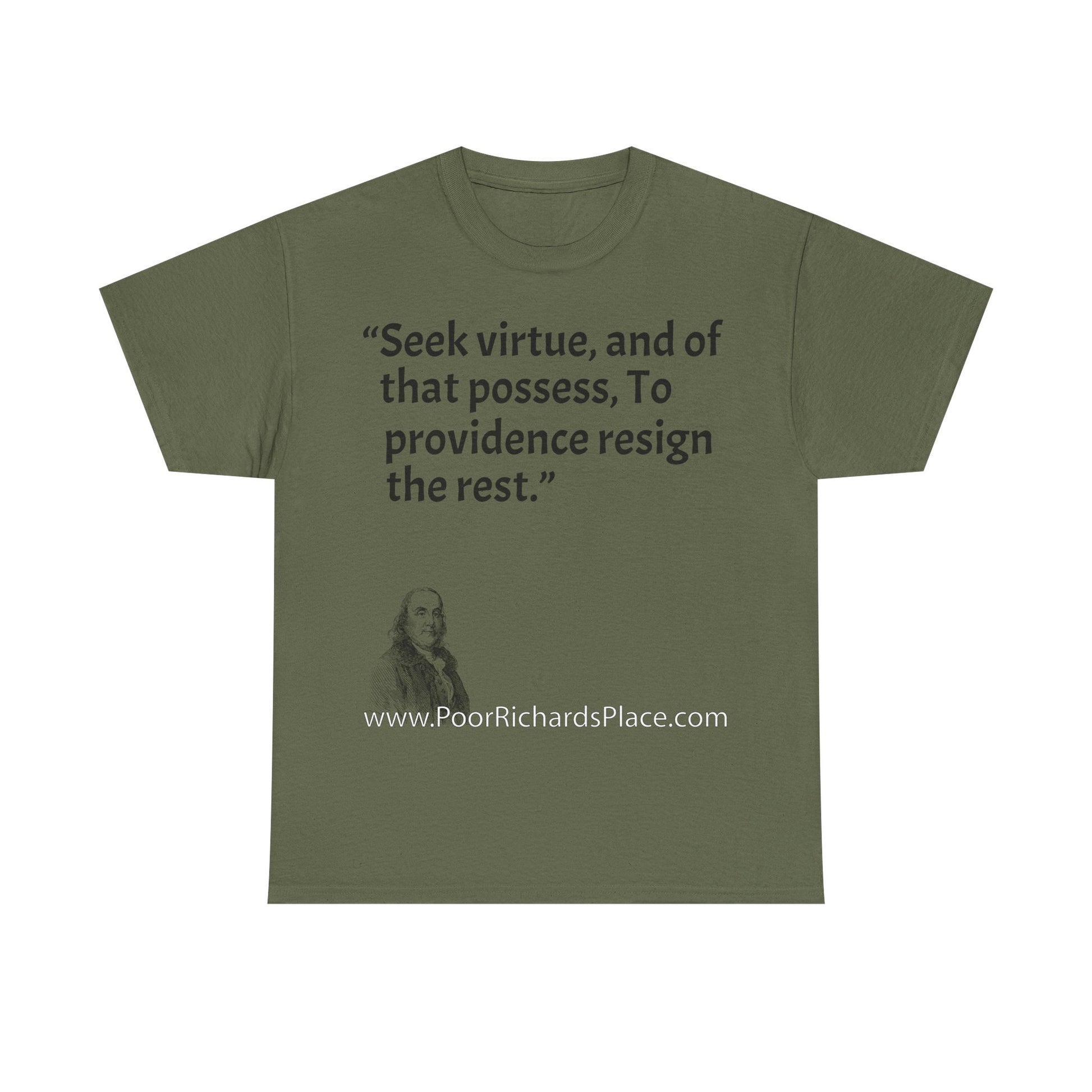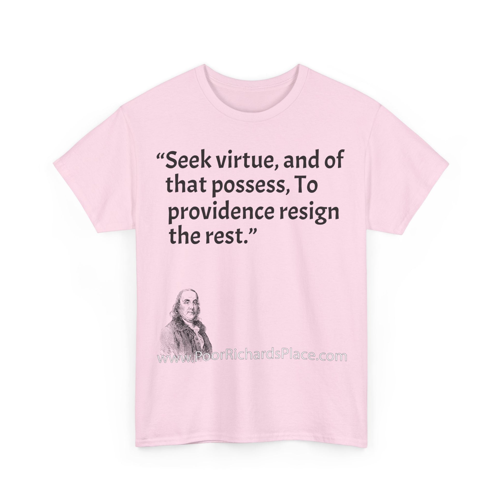 Unisex T-Shirt - Poor Richard Says Seek virtue, and of that possess, To providence resign the rest