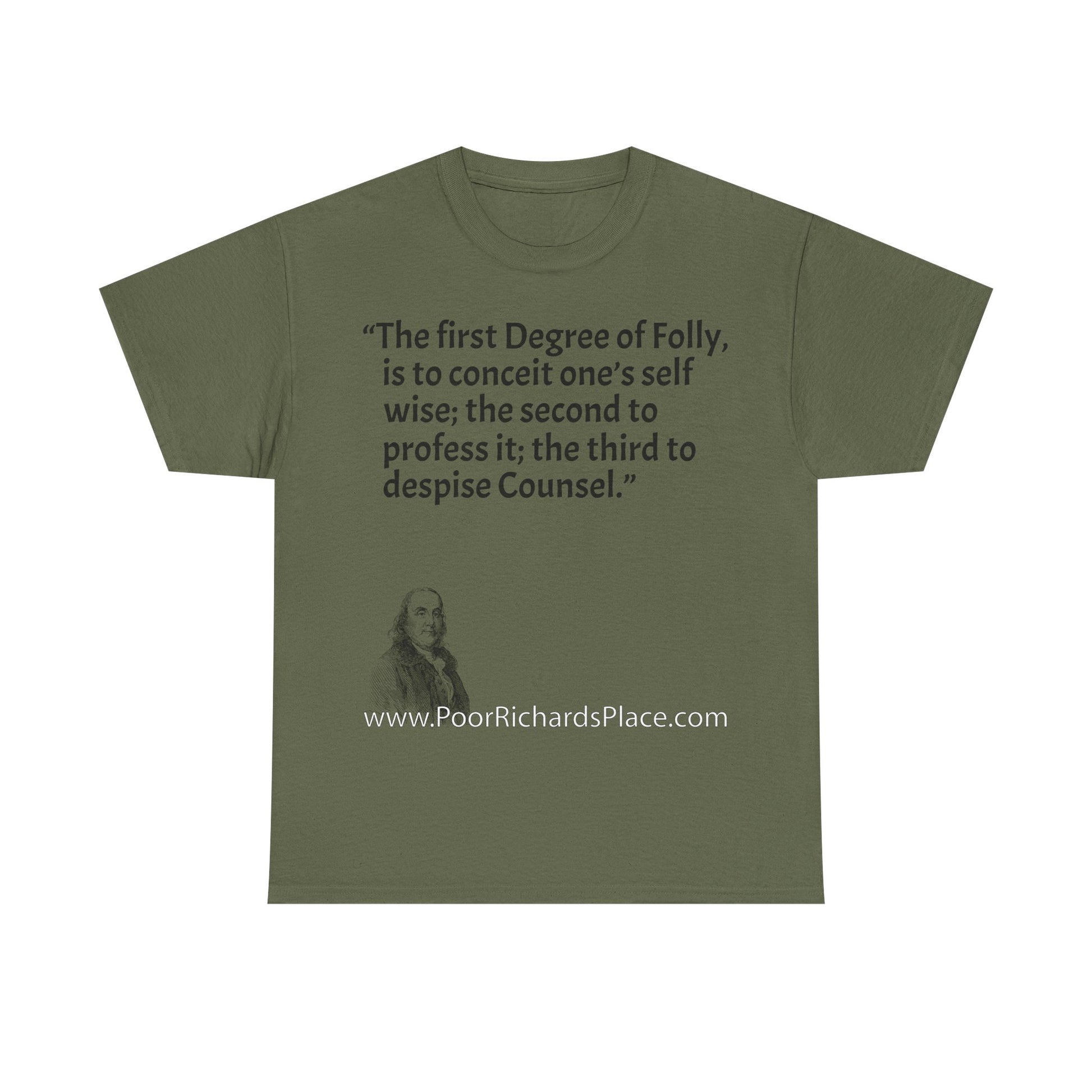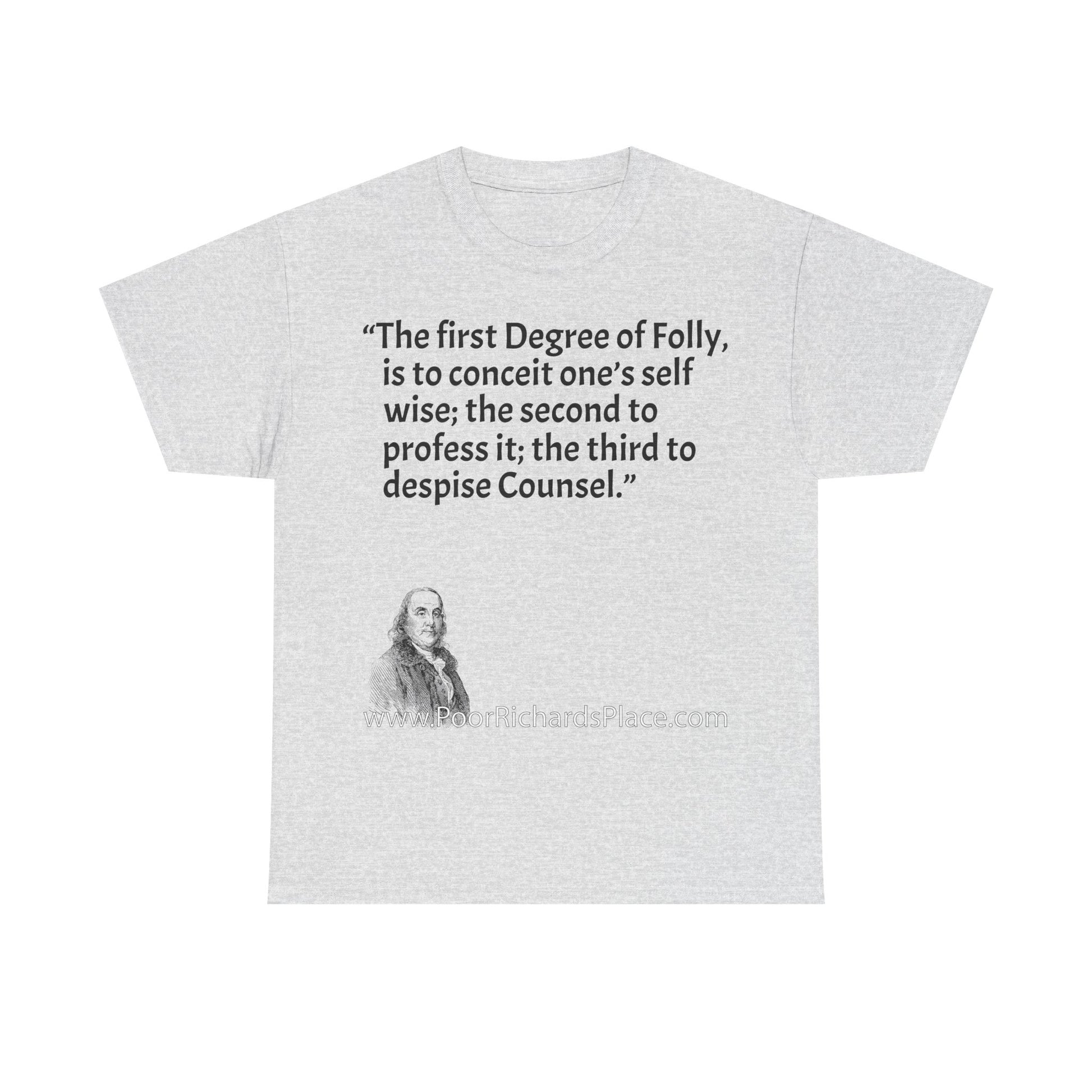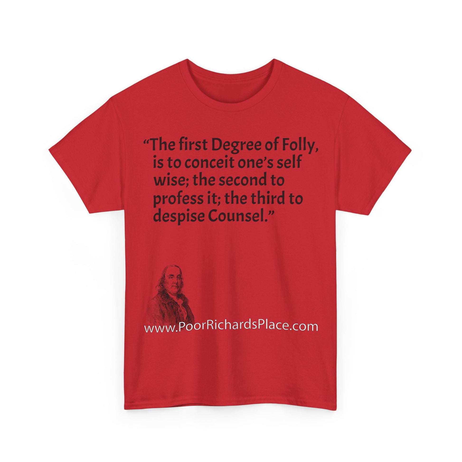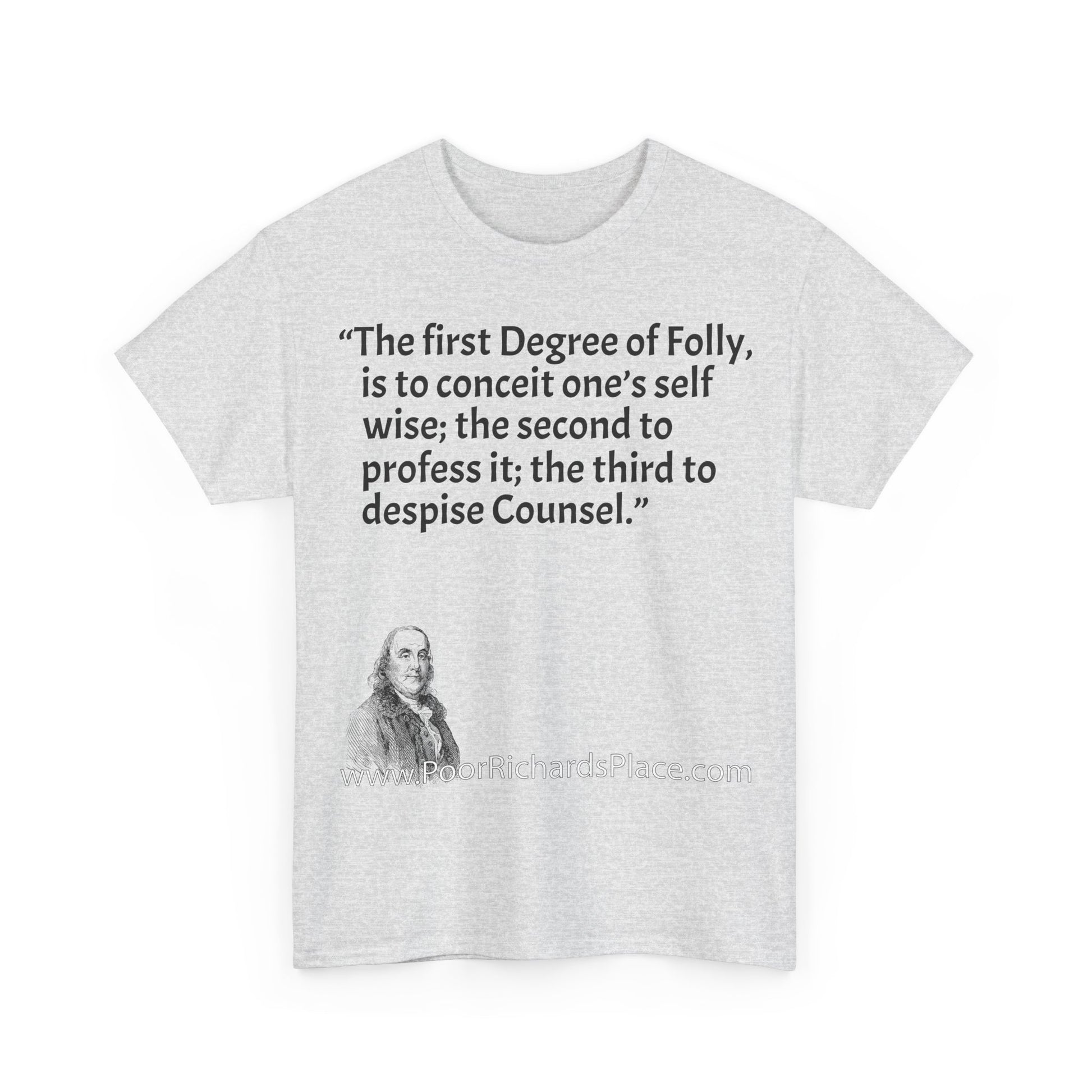 Unisex T-Shirt - Poor Richard Says The first Degree of Folly, is to conceit one’s self wise; the second to profess it; the third to despise Counsel
