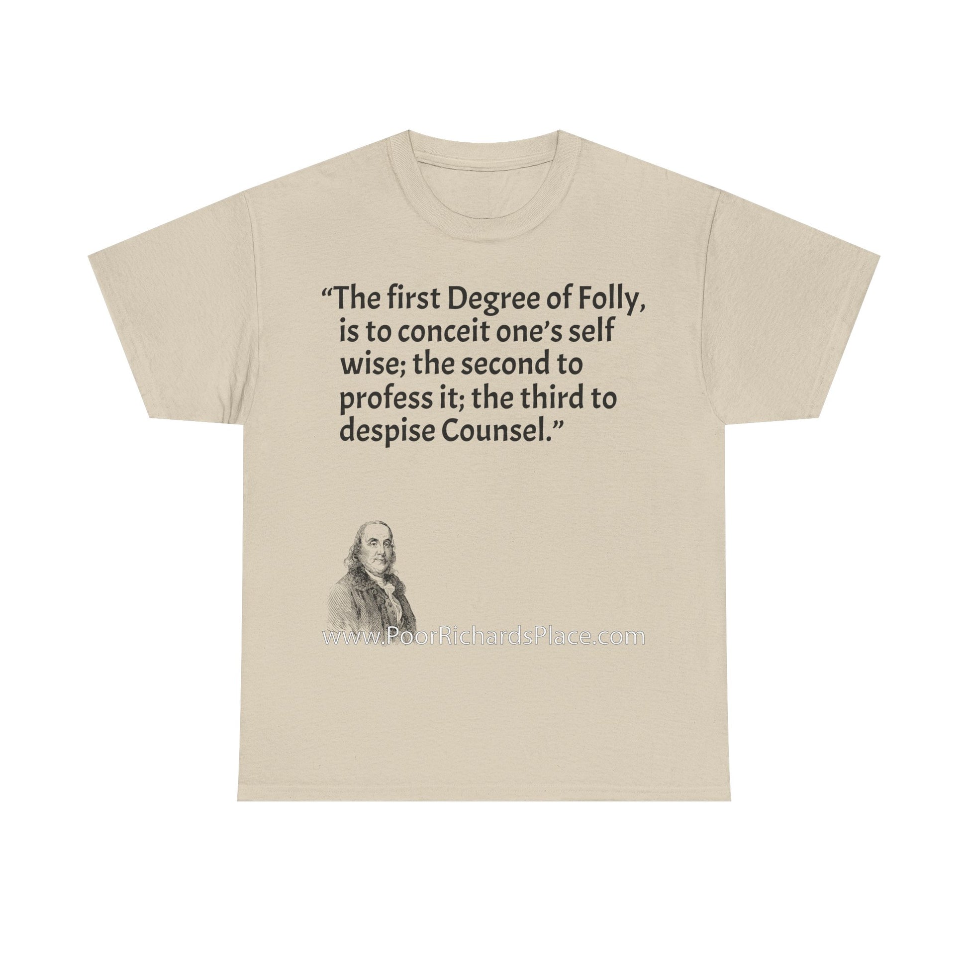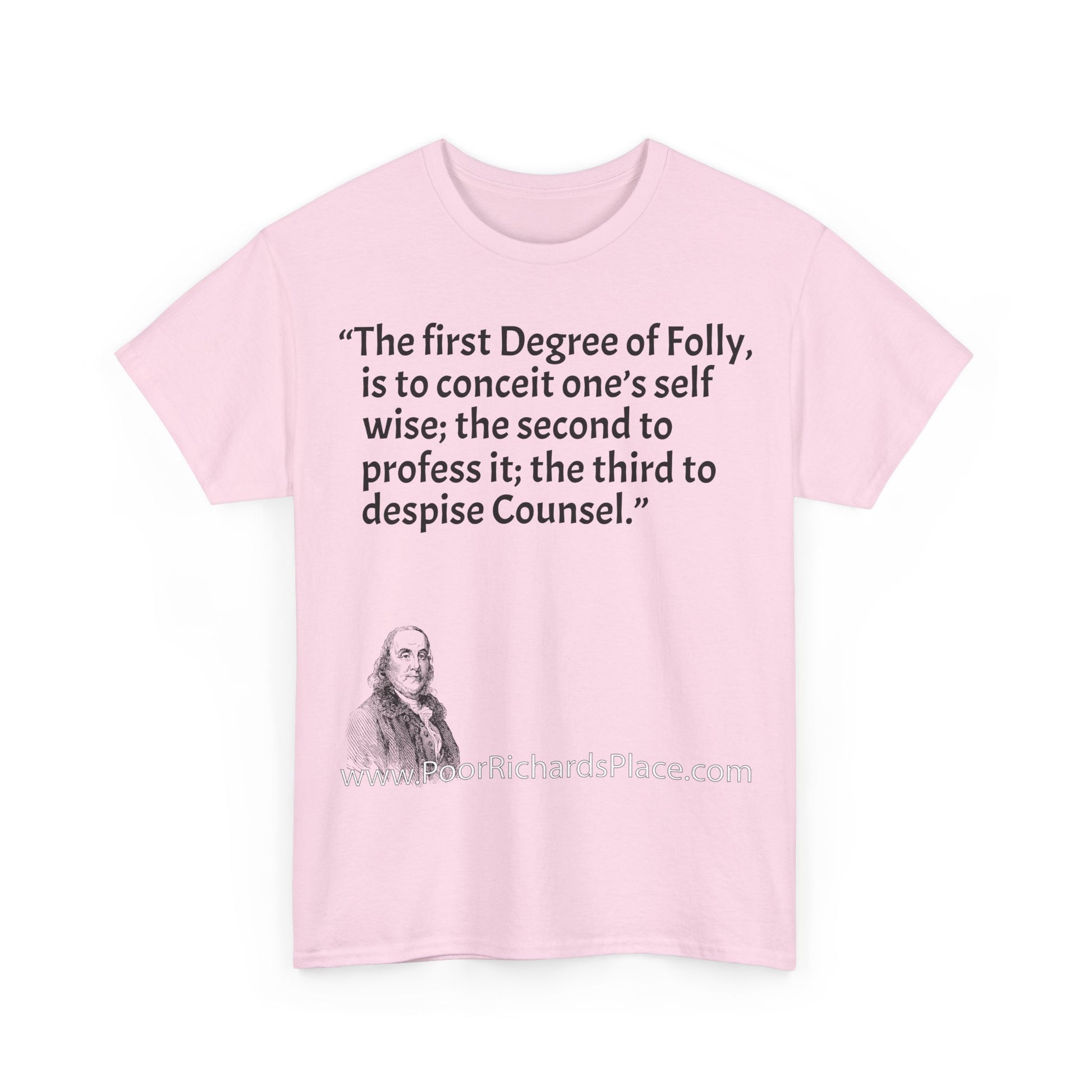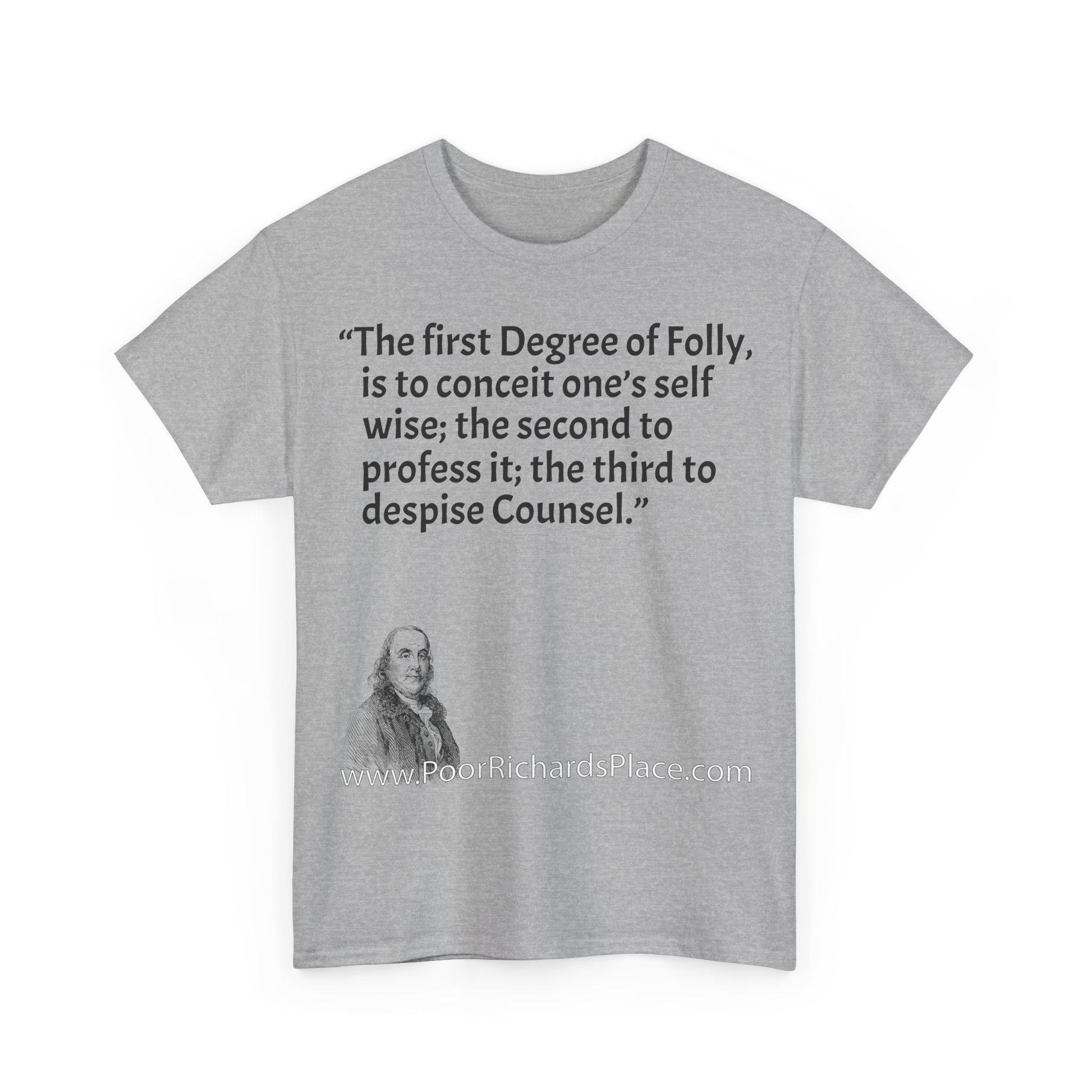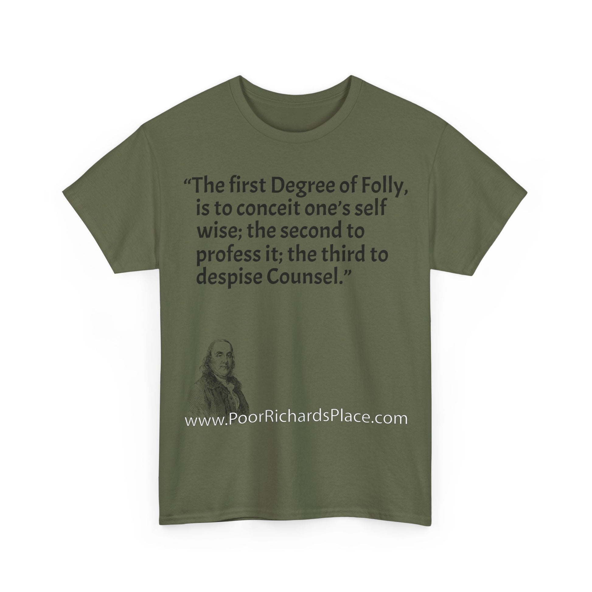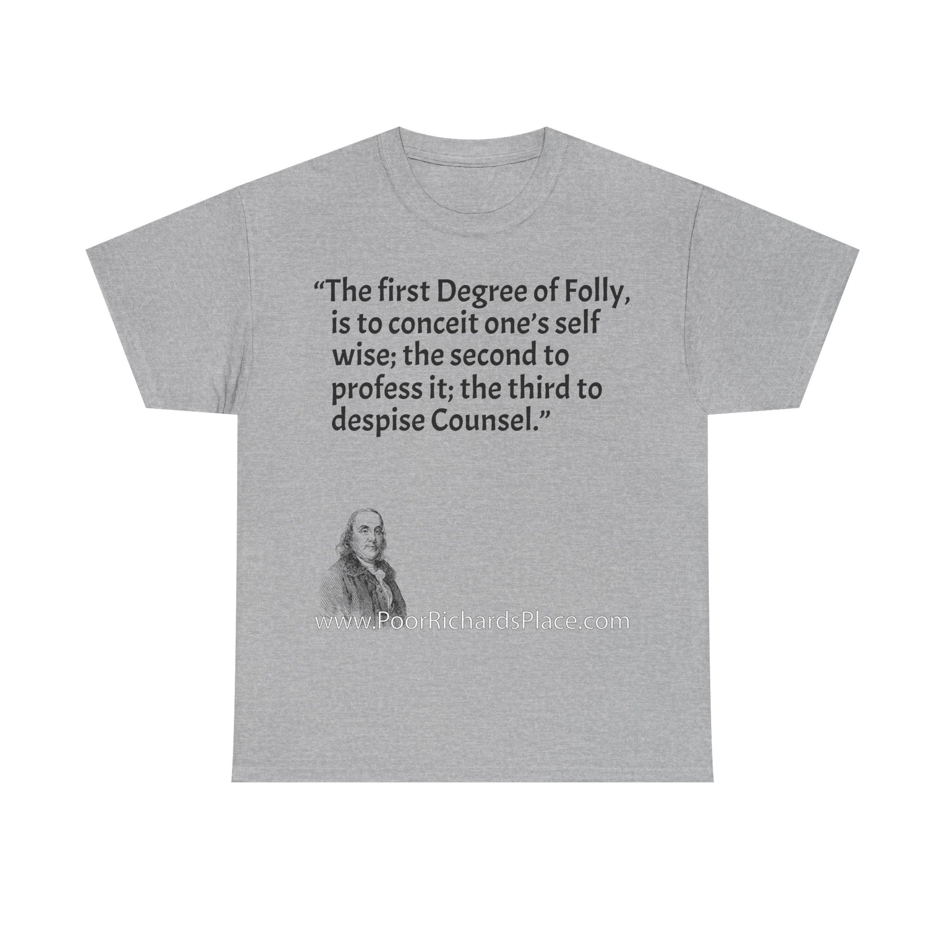 Unisex T-Shirt - Poor Richard Says The first Degree of Folly, is to conceit one’s self wise; the second to profess it; the third to despise Counsel