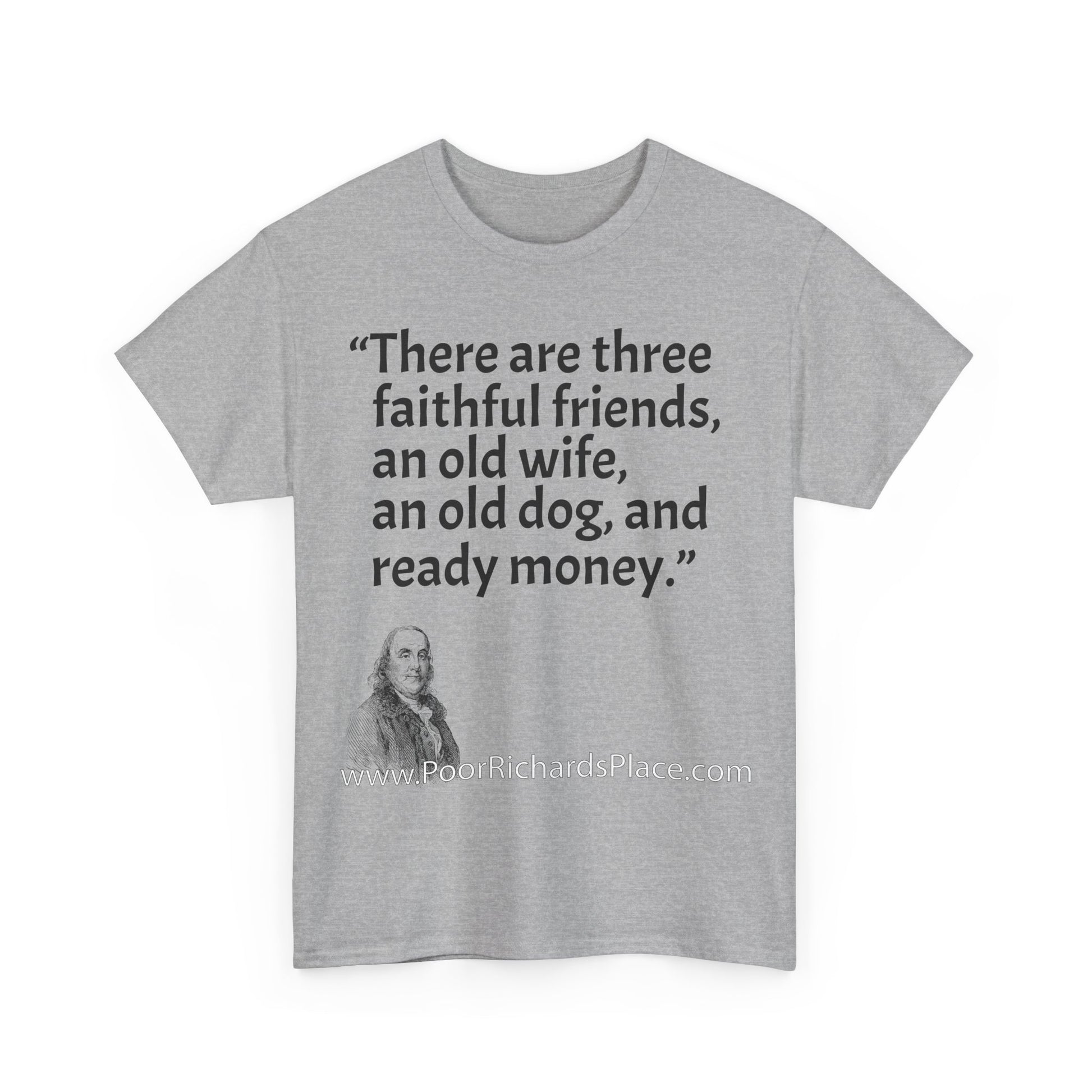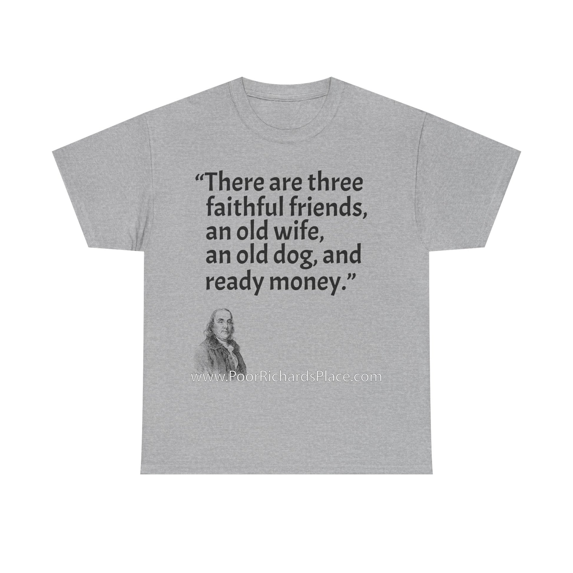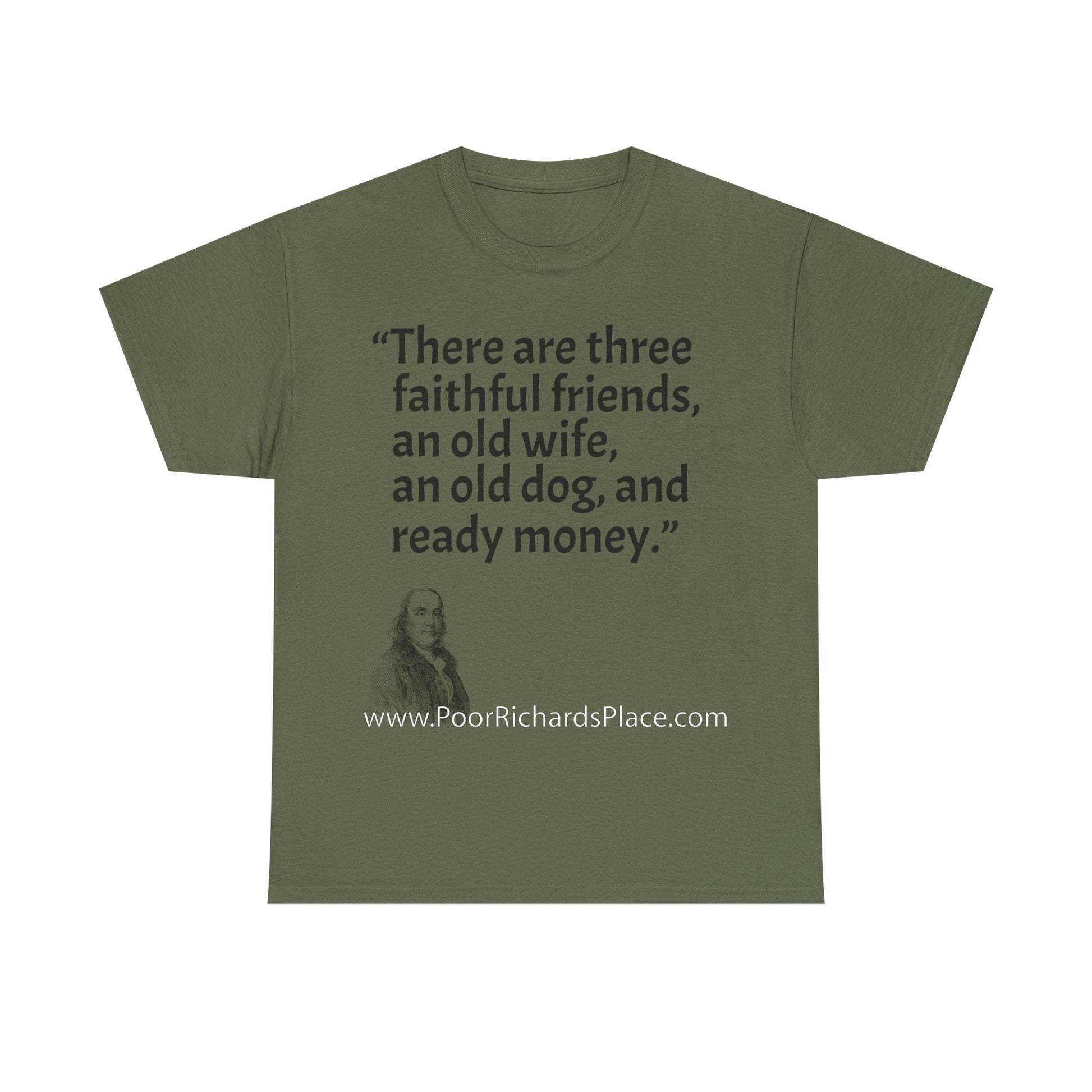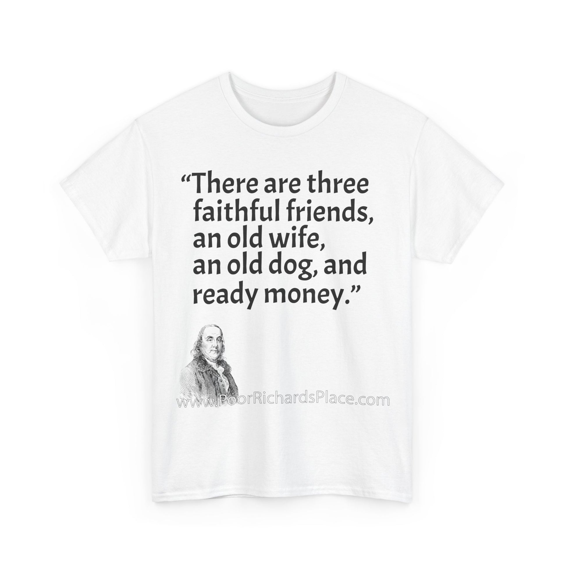 Unisex T-Shirt - Poor Richard Says There are three faithful friends, an old wife, an old dog, and ready money