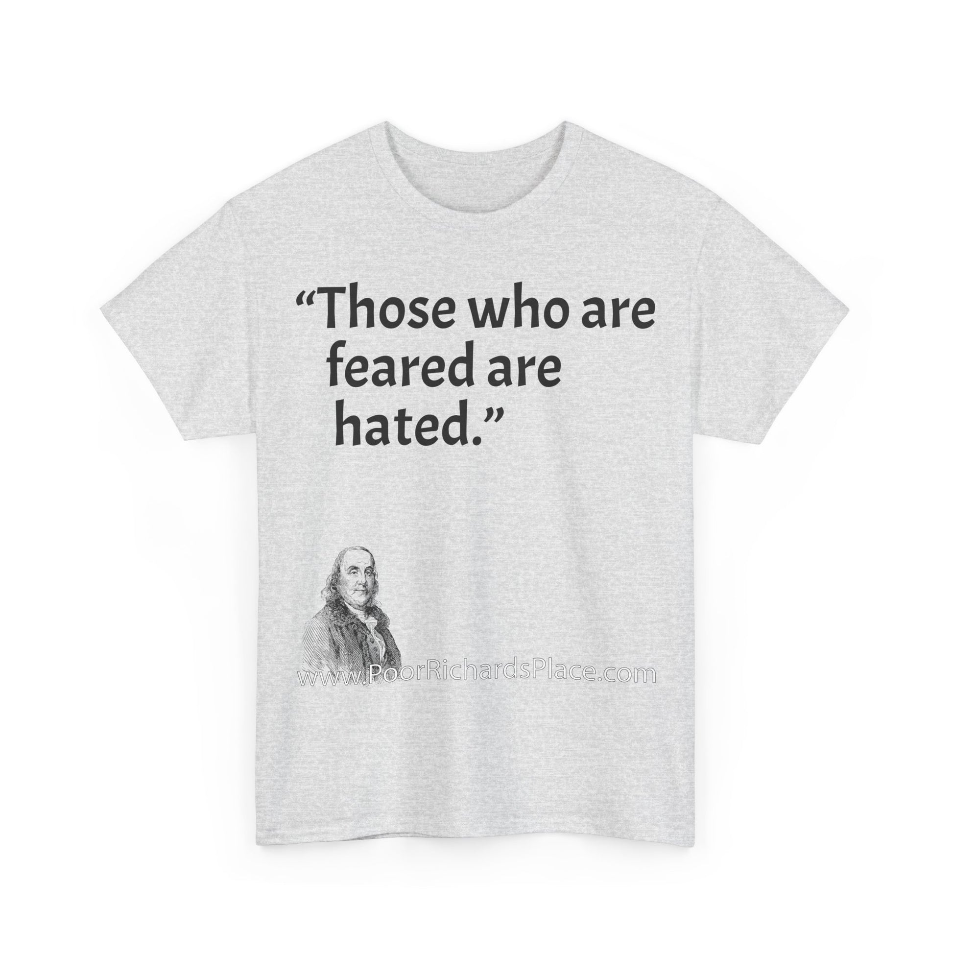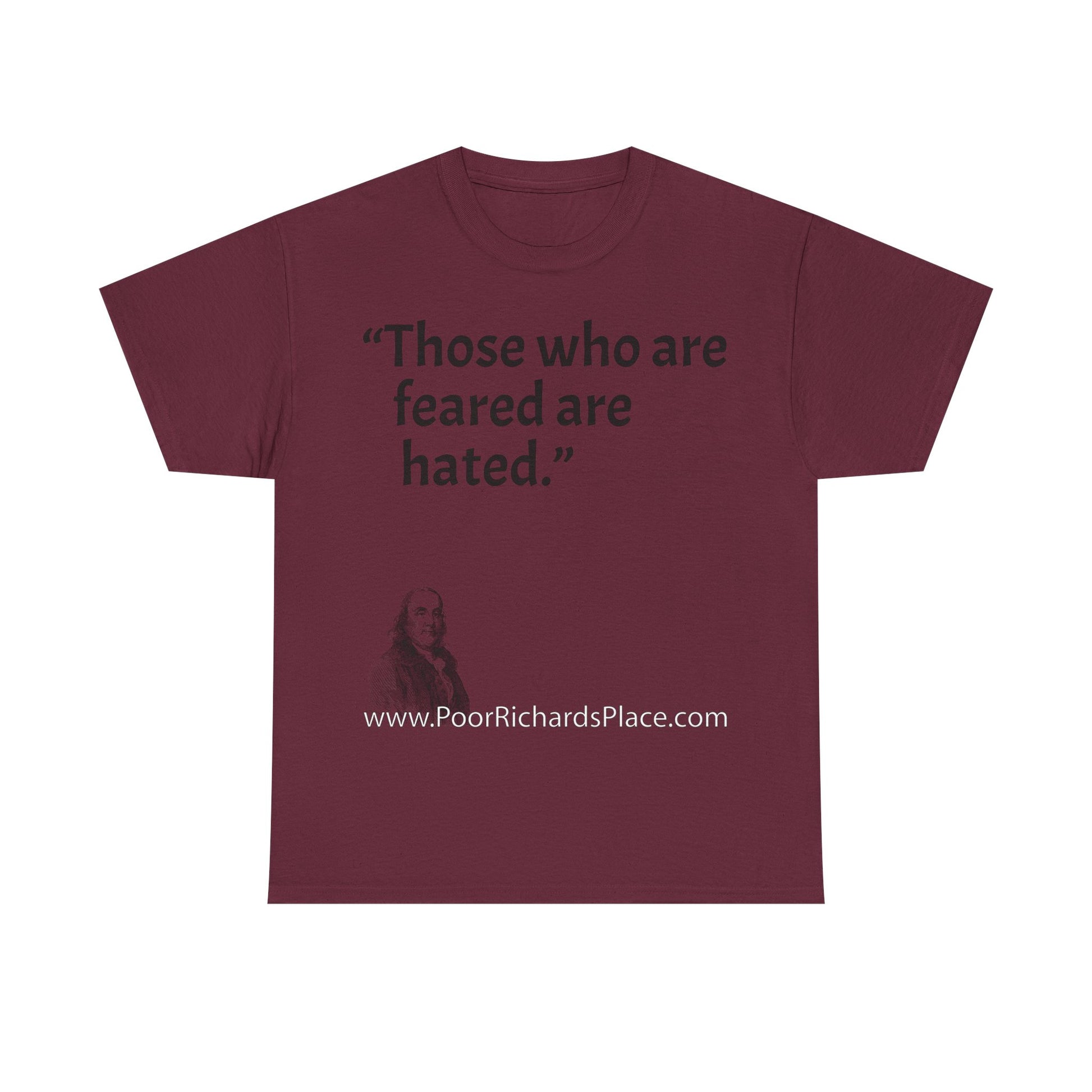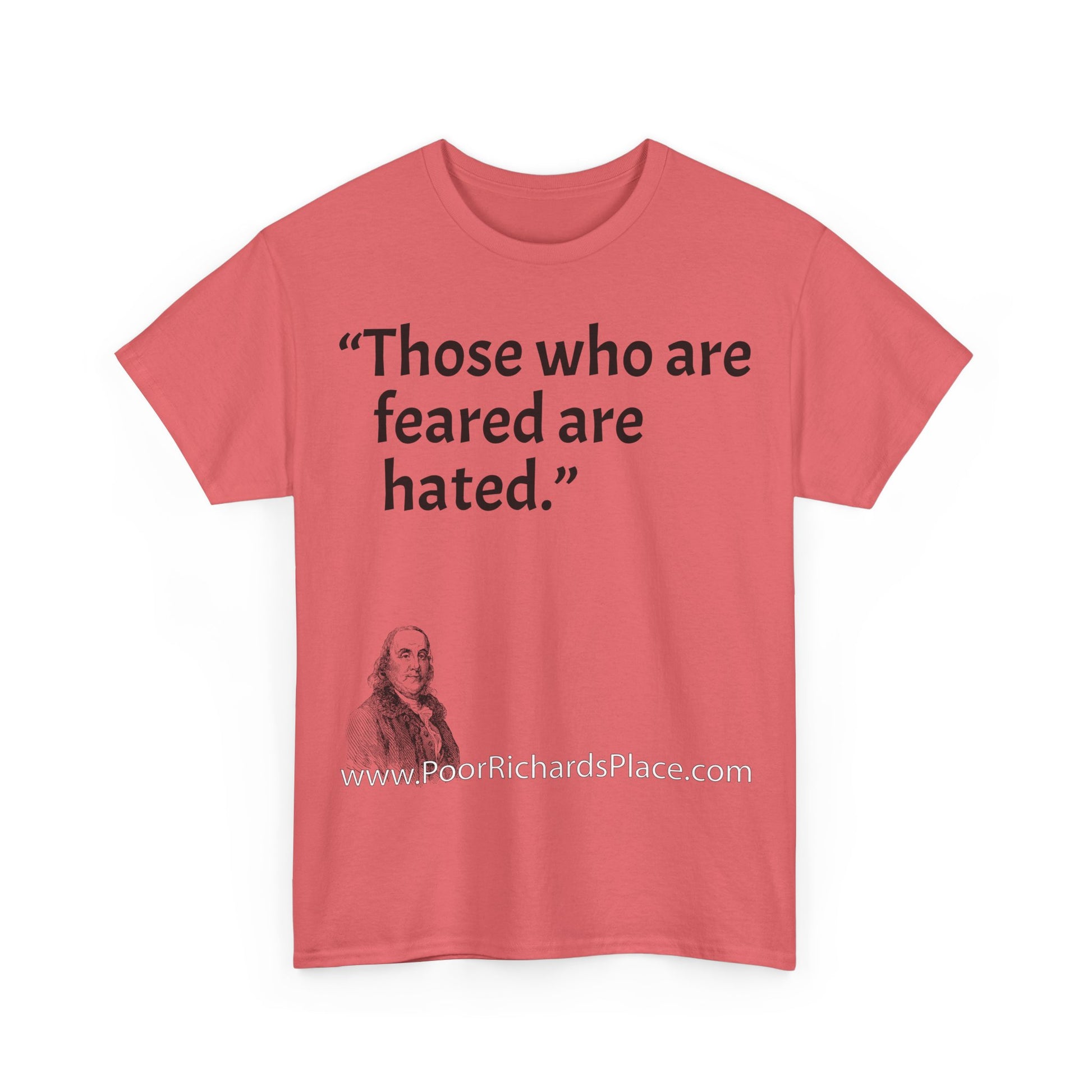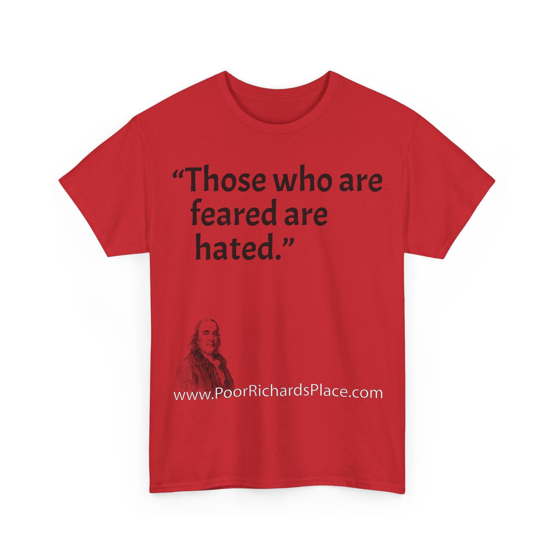 Unisex T-Shirt - Poor Richard Says Those who are feared are hated