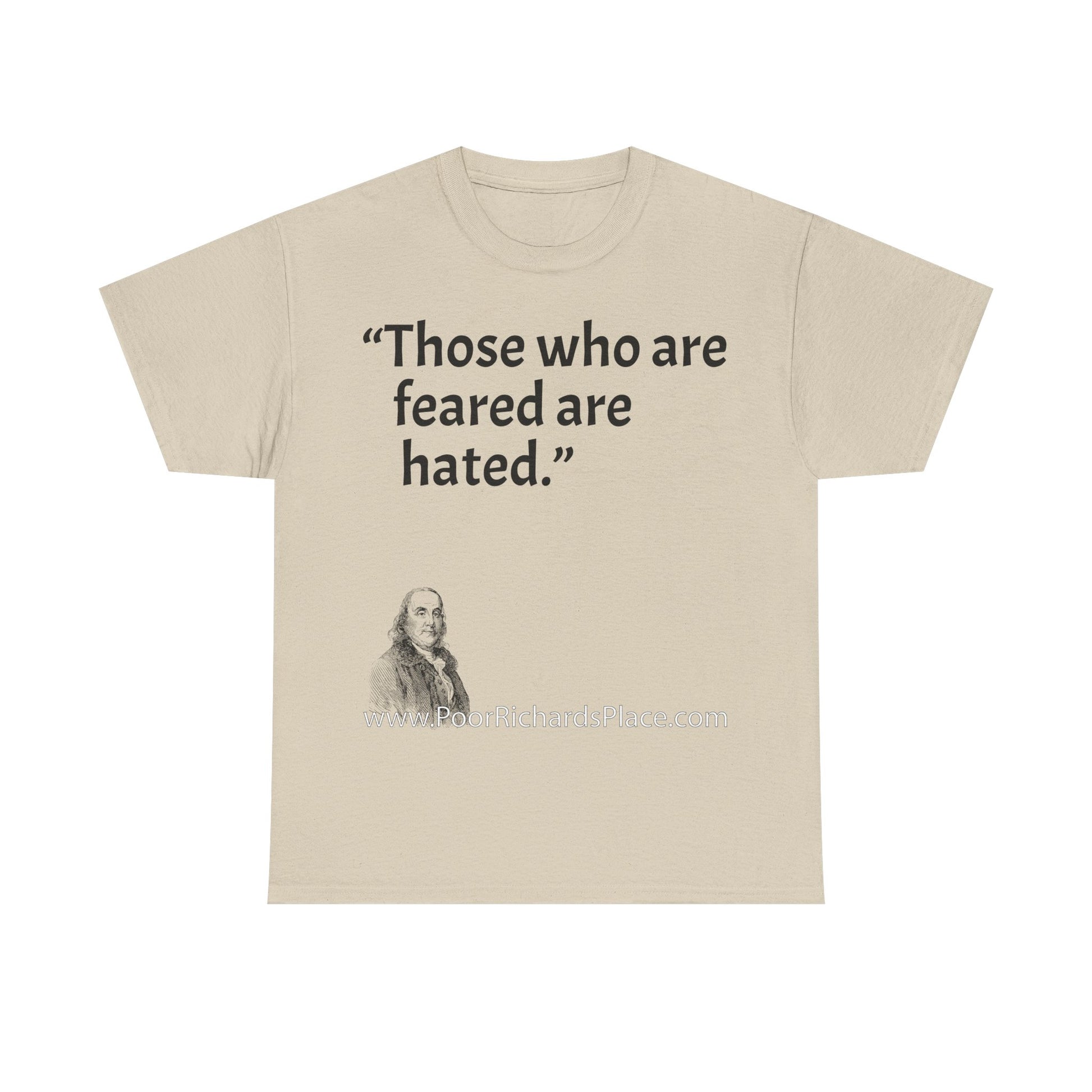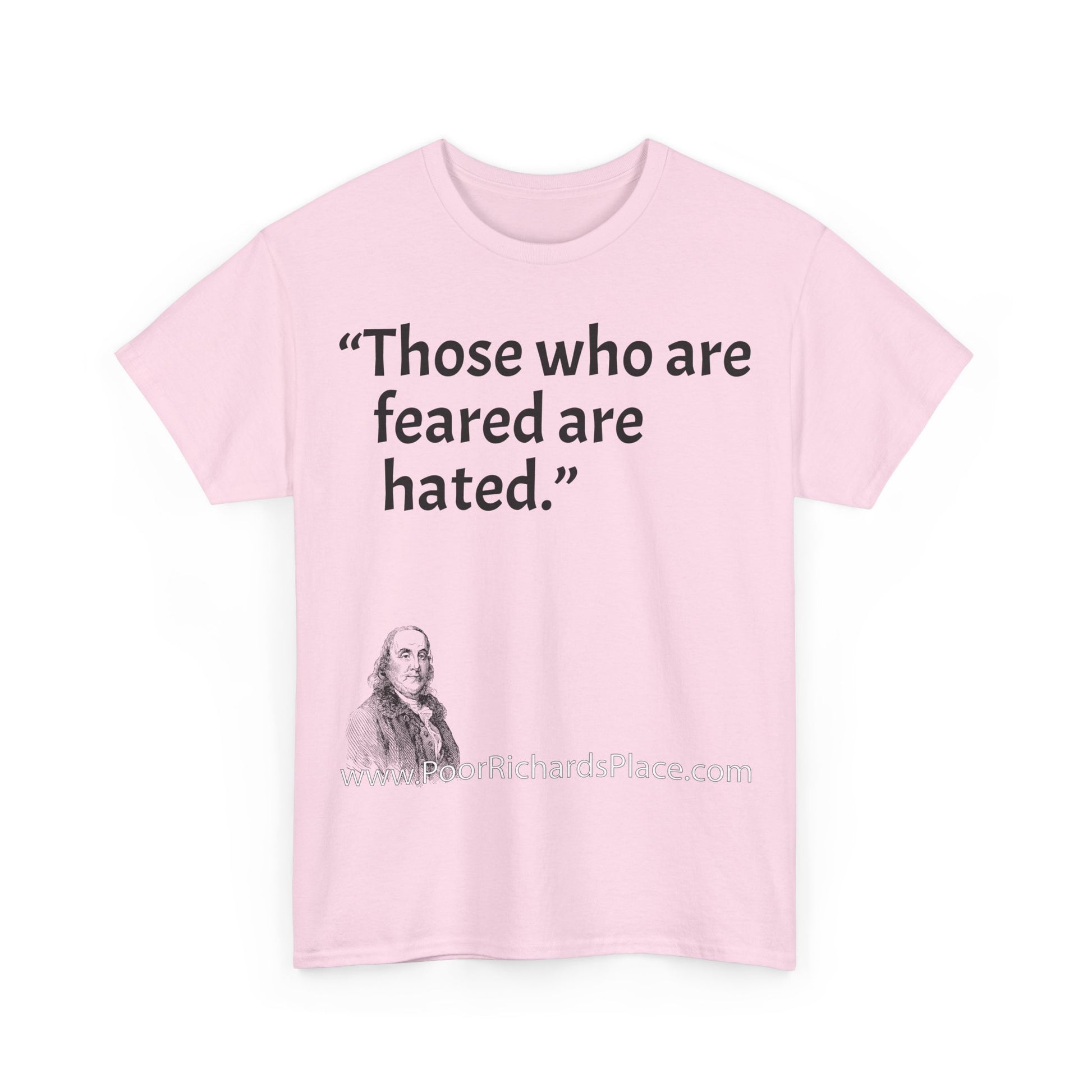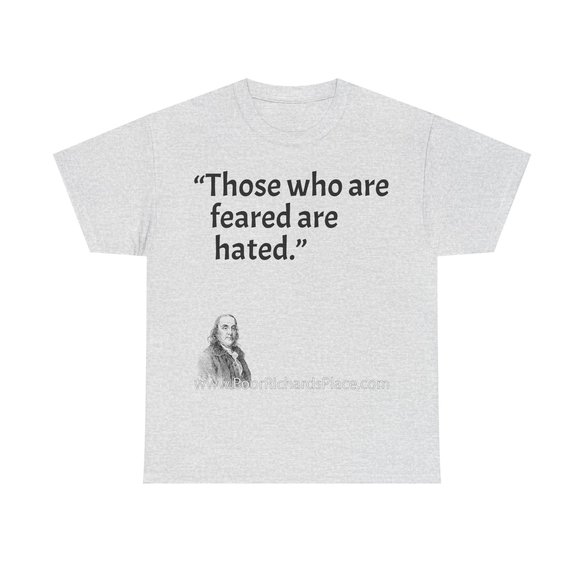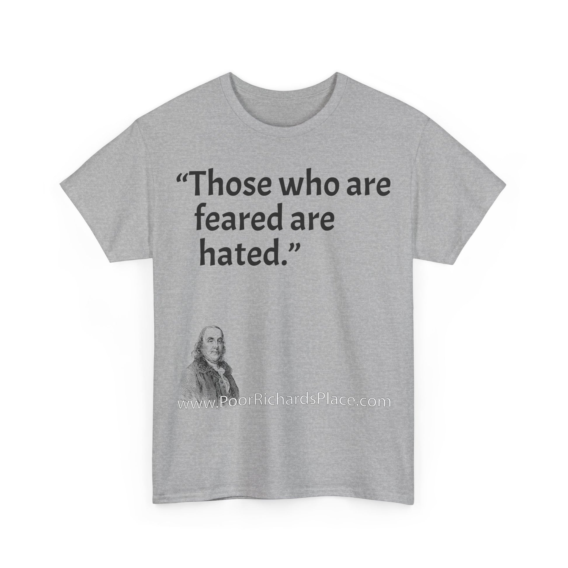 Unisex T-Shirt - Poor Richard Says Those who are feared are hated