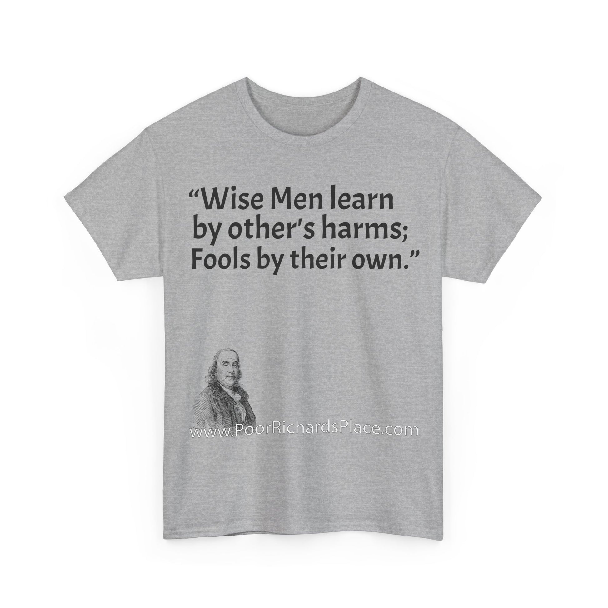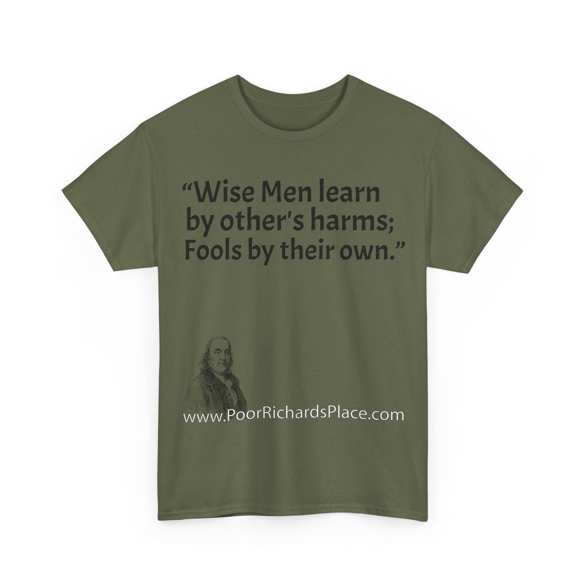 Unisex T-Shirt - Poor Richard Says Wise Men learn by other's harms; Fools by their own